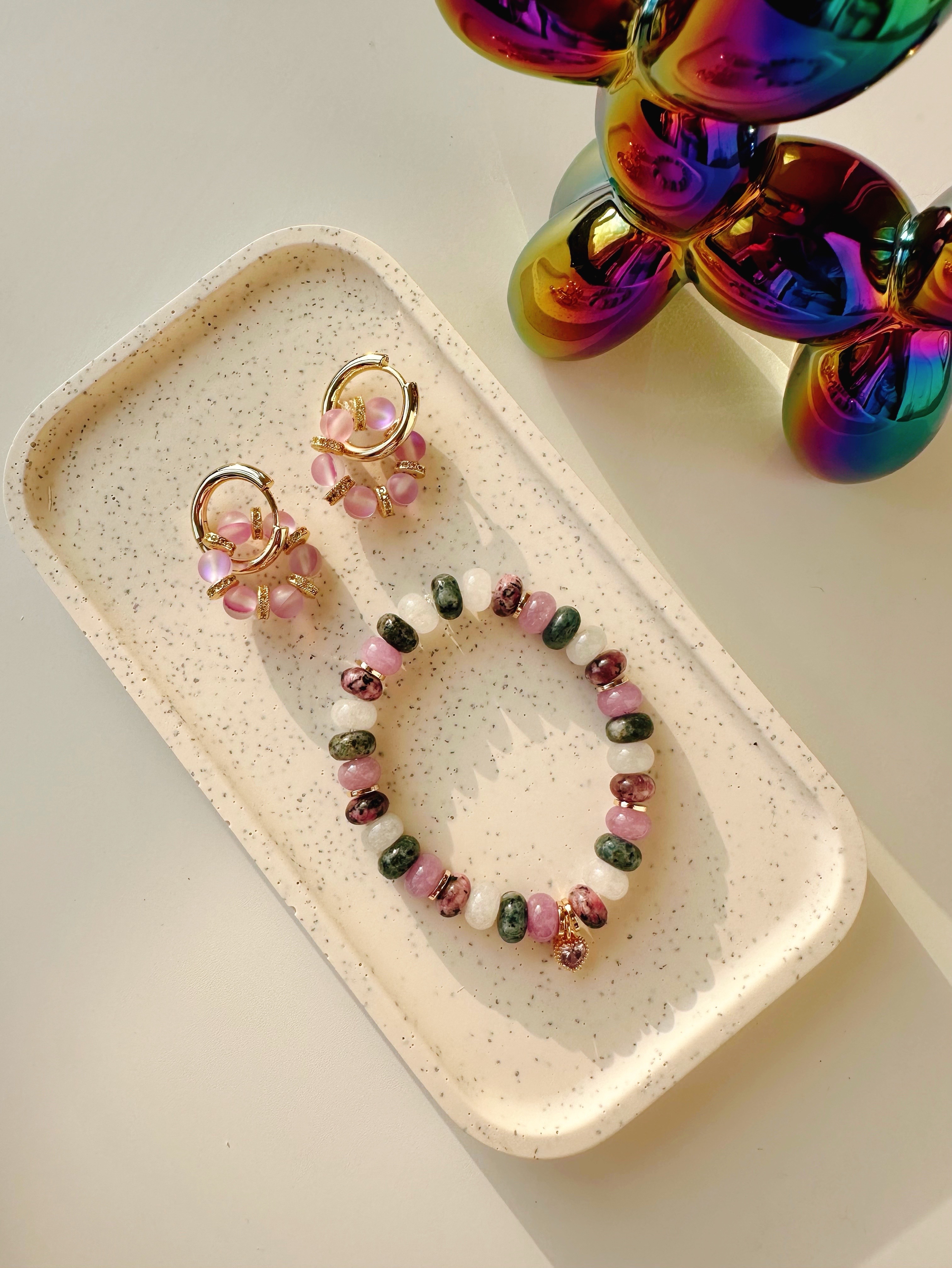 Браслет из натуральных камней и фианита сердца