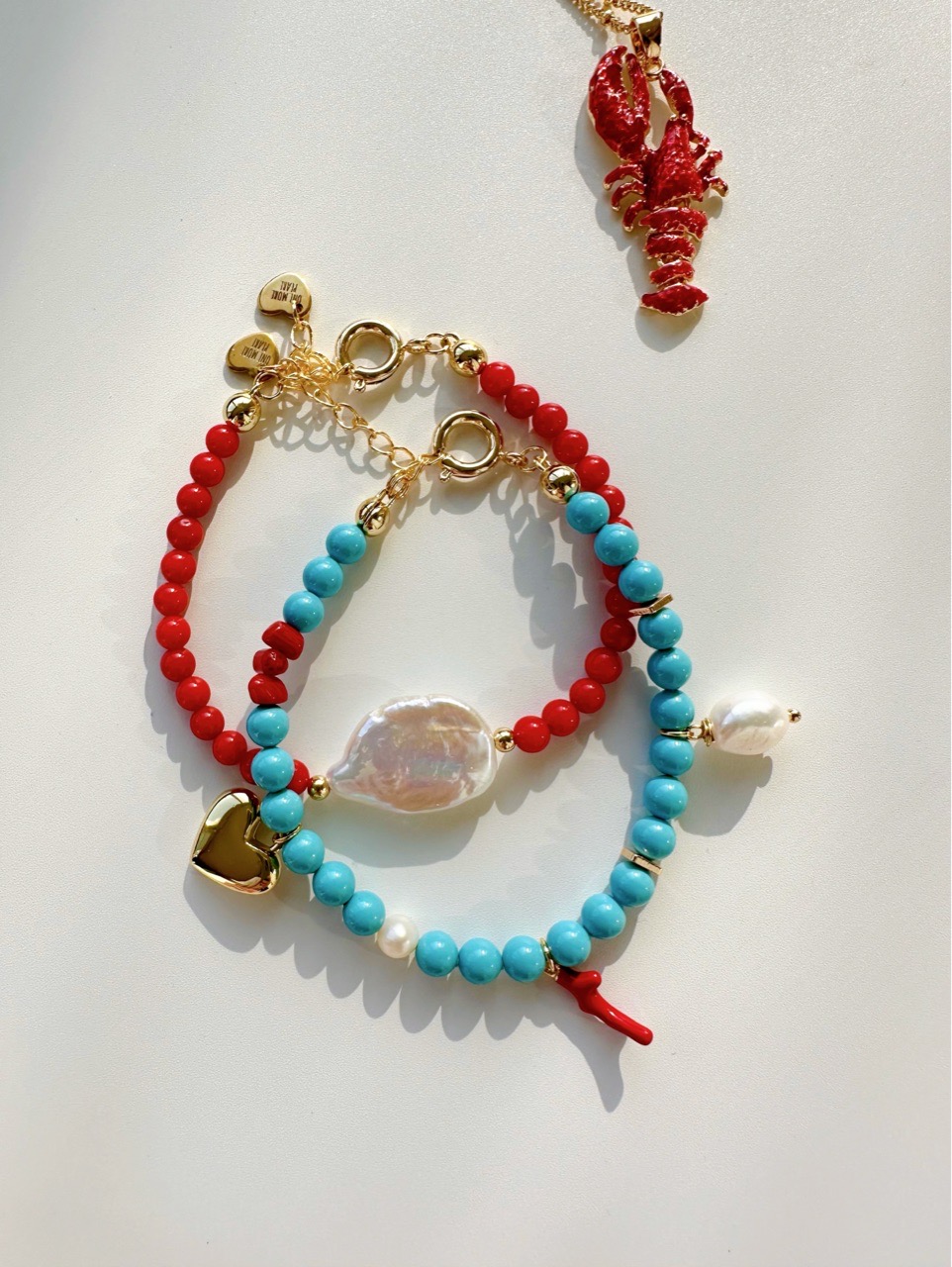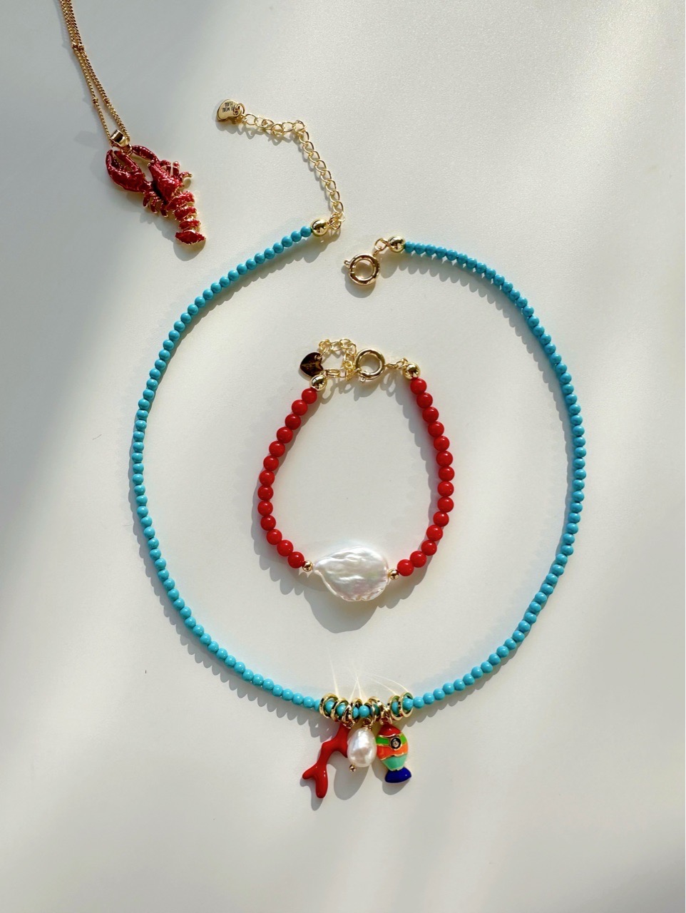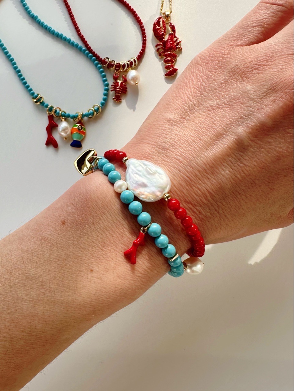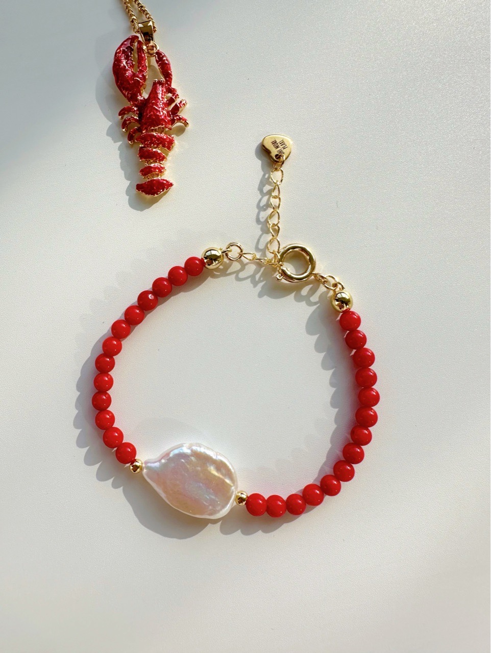 Браслет из Натурального пресноводного культивированного жемчуга форма барочная и натурального коралла