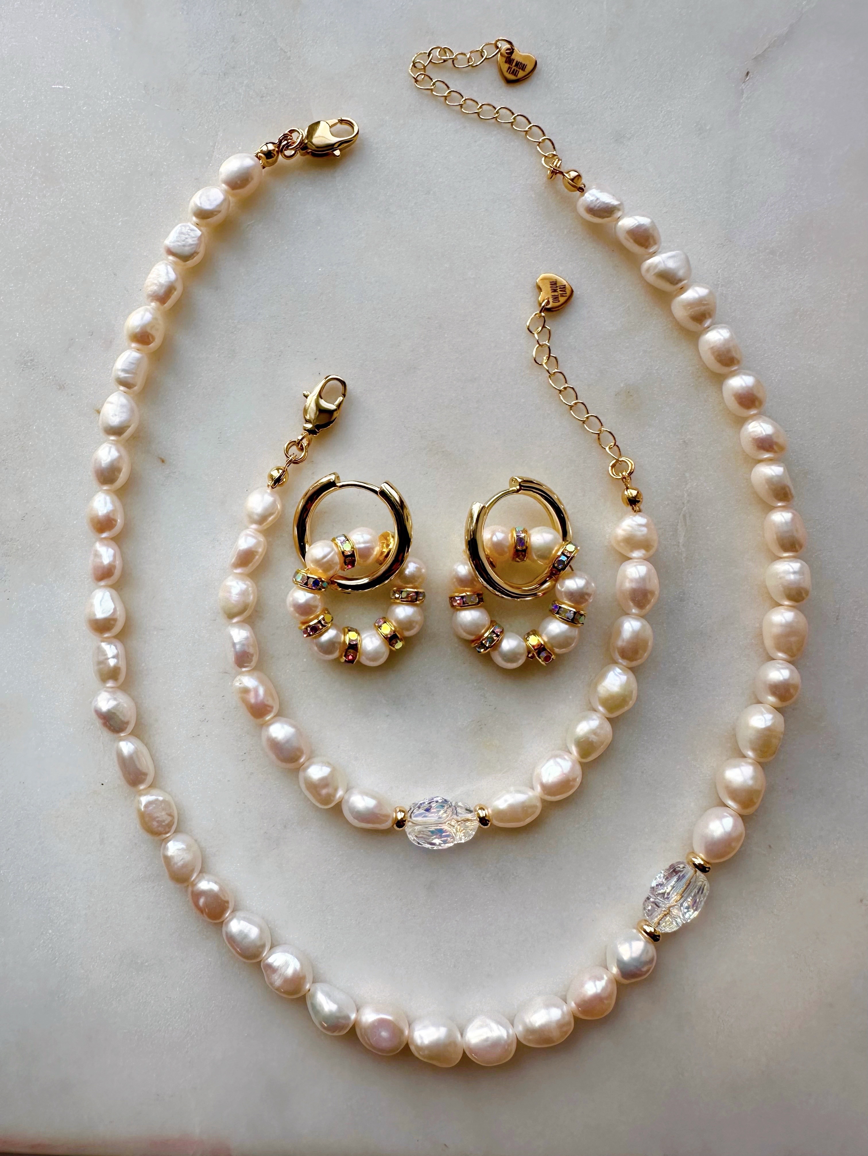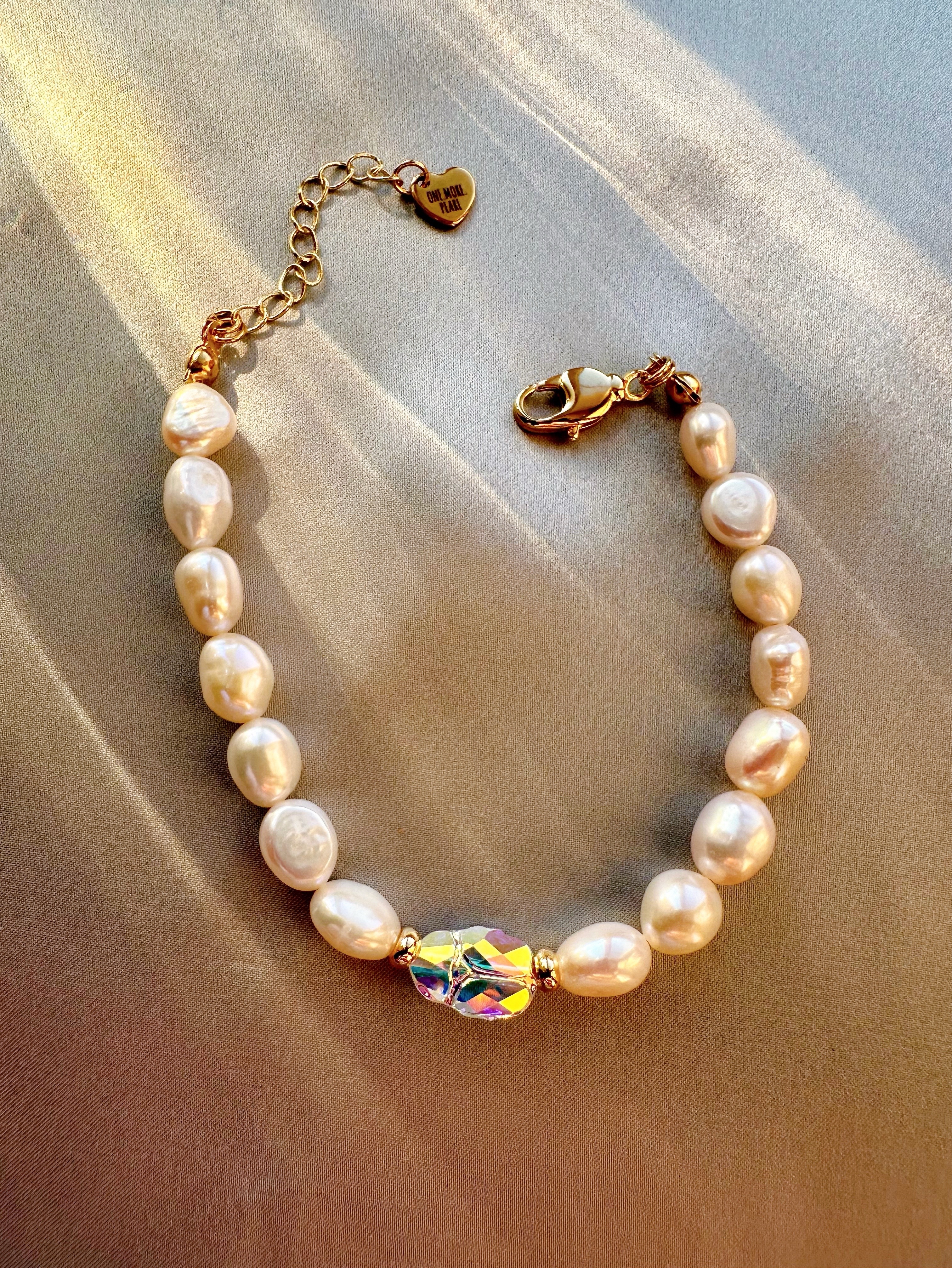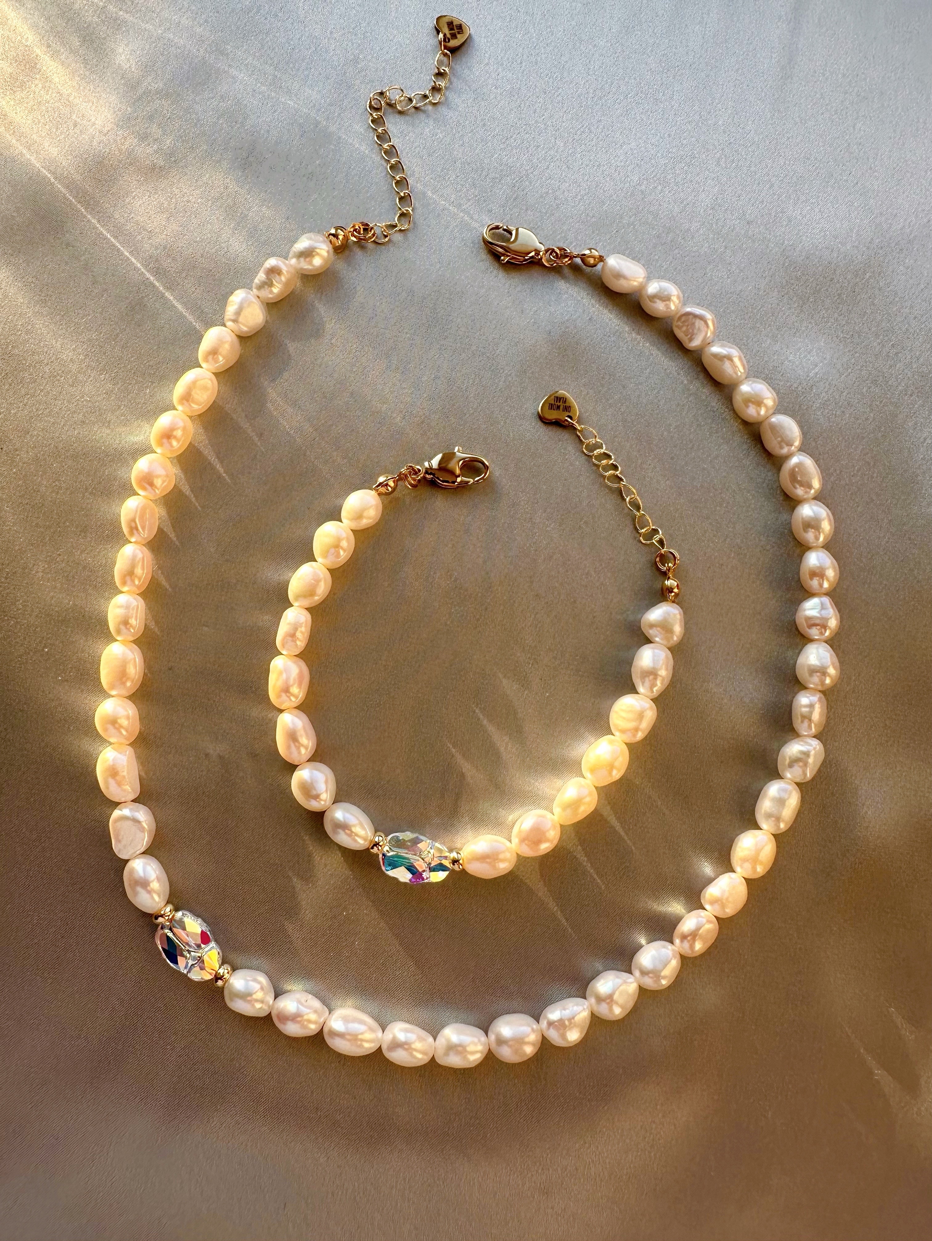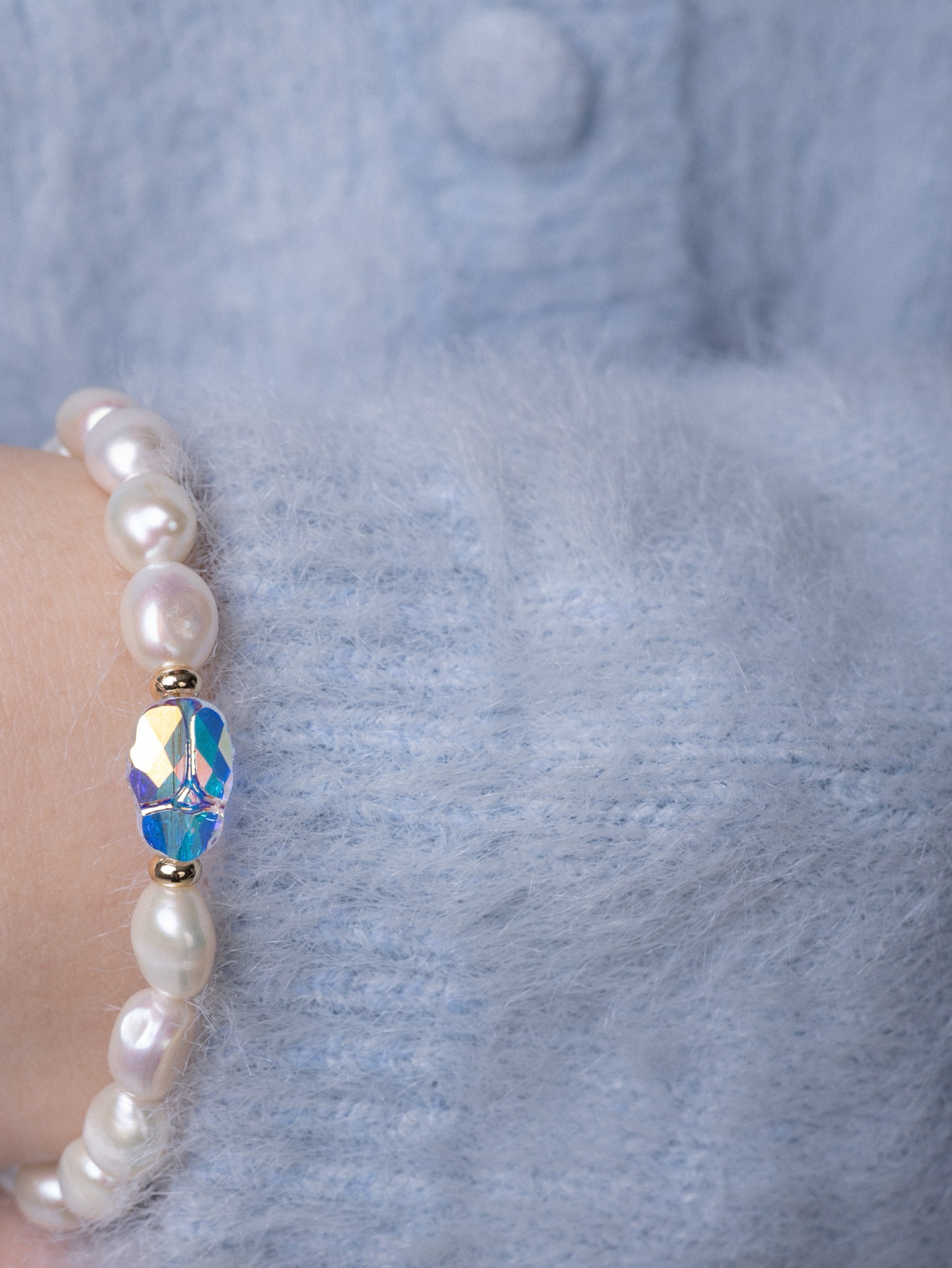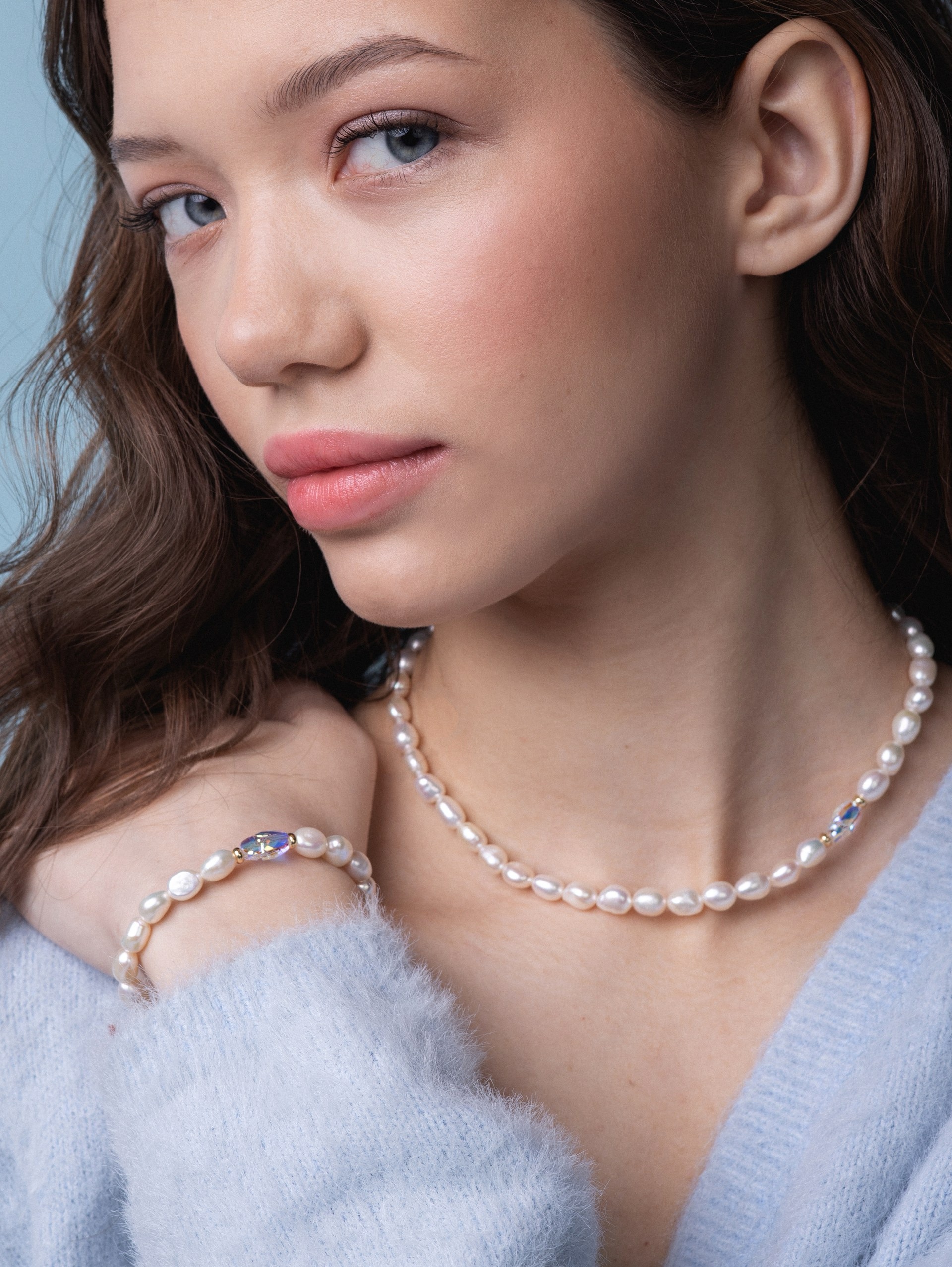 Браслет из Натурального пресноводного культивированного жемчуга, барочная форма рис 8 мм и кристалла Сваровски