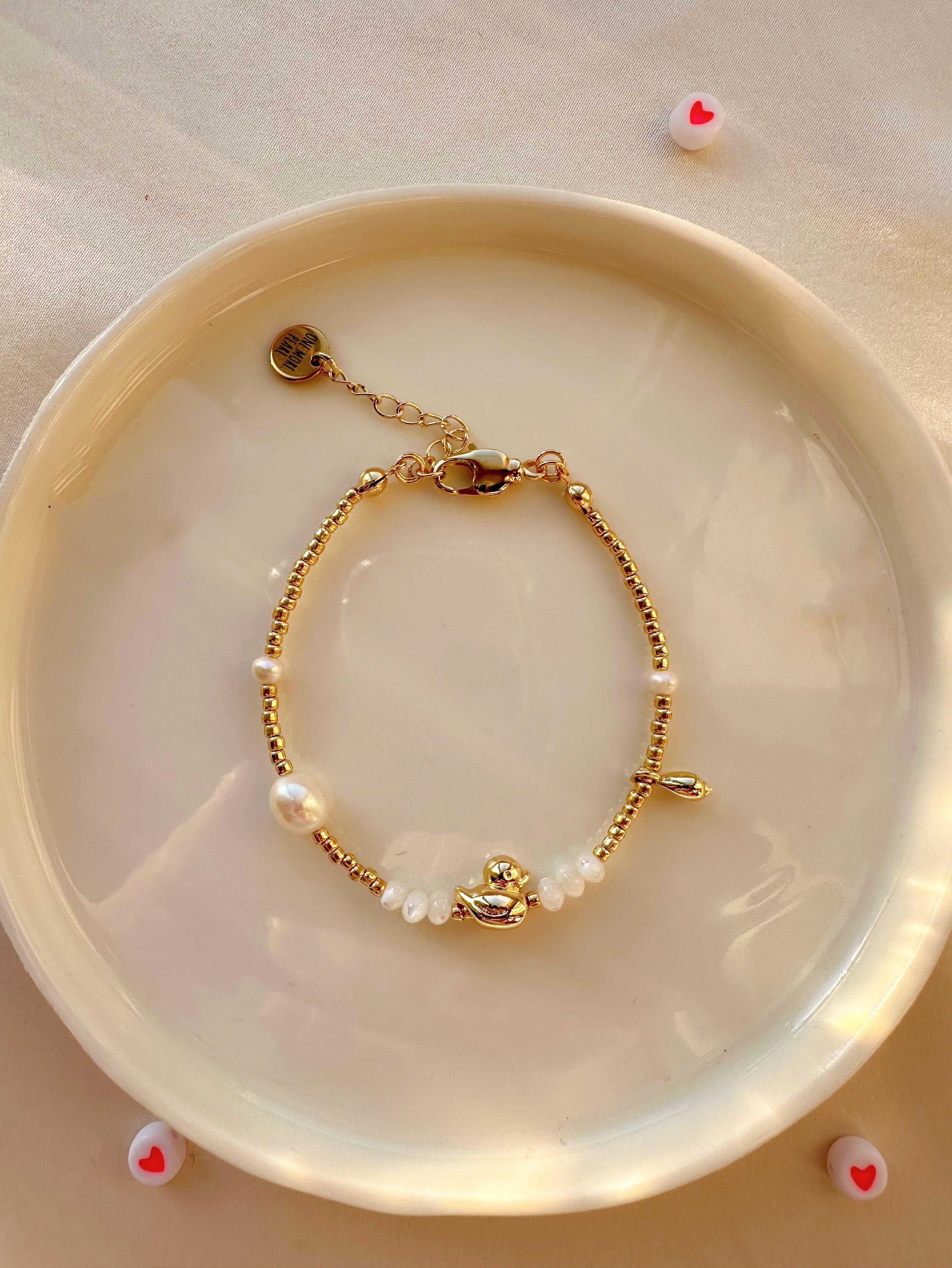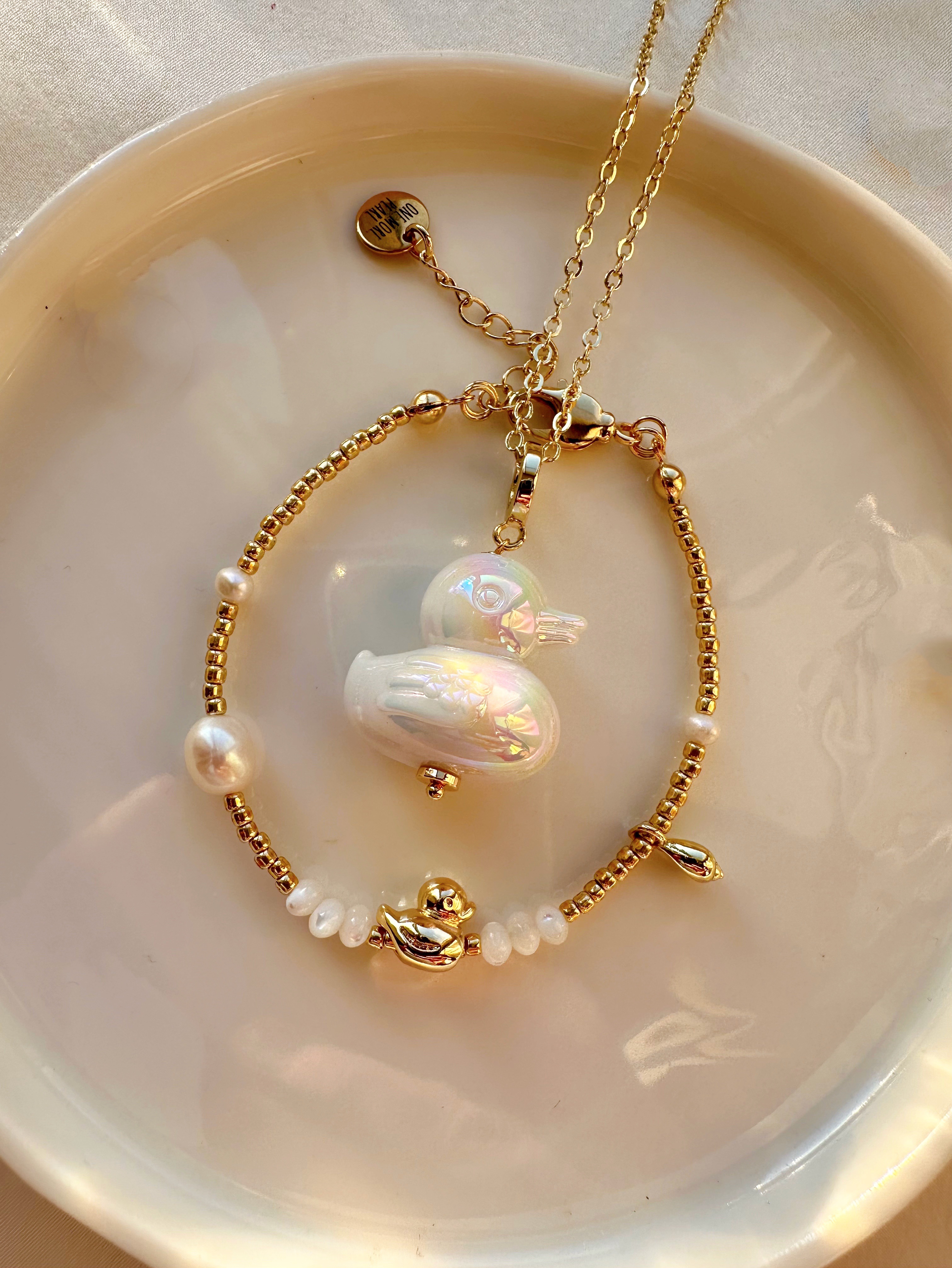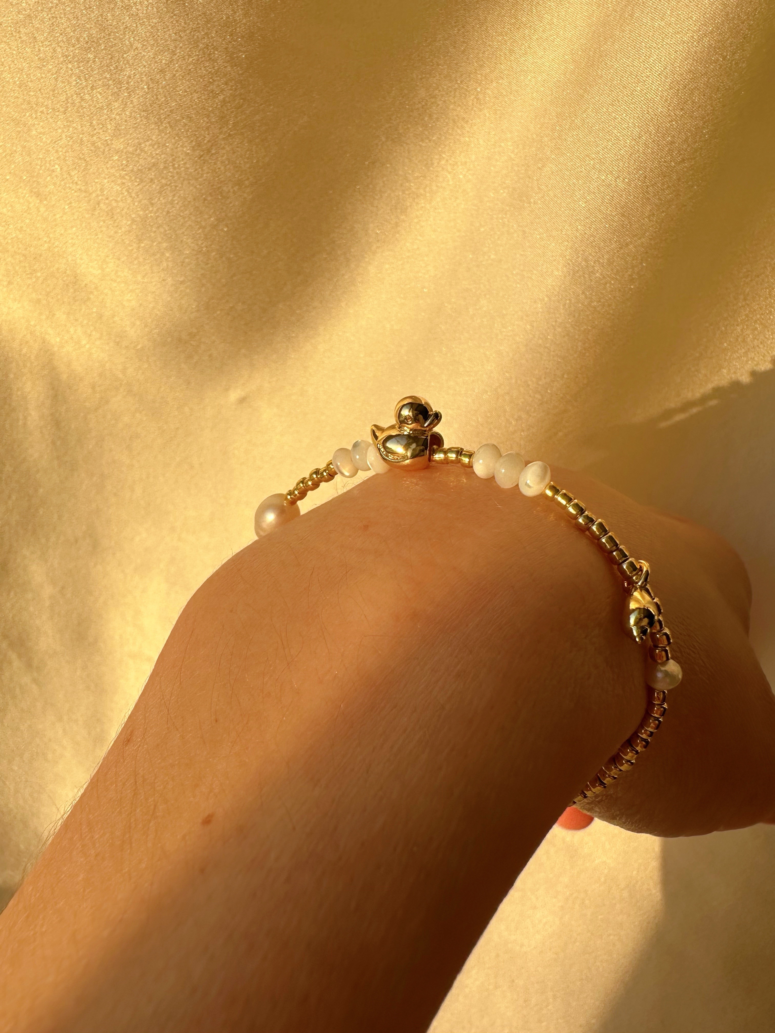 Браслет из гальванического бисера, Натурального пресноводного культивированного жемчуга и перламутра с бусиной уточка