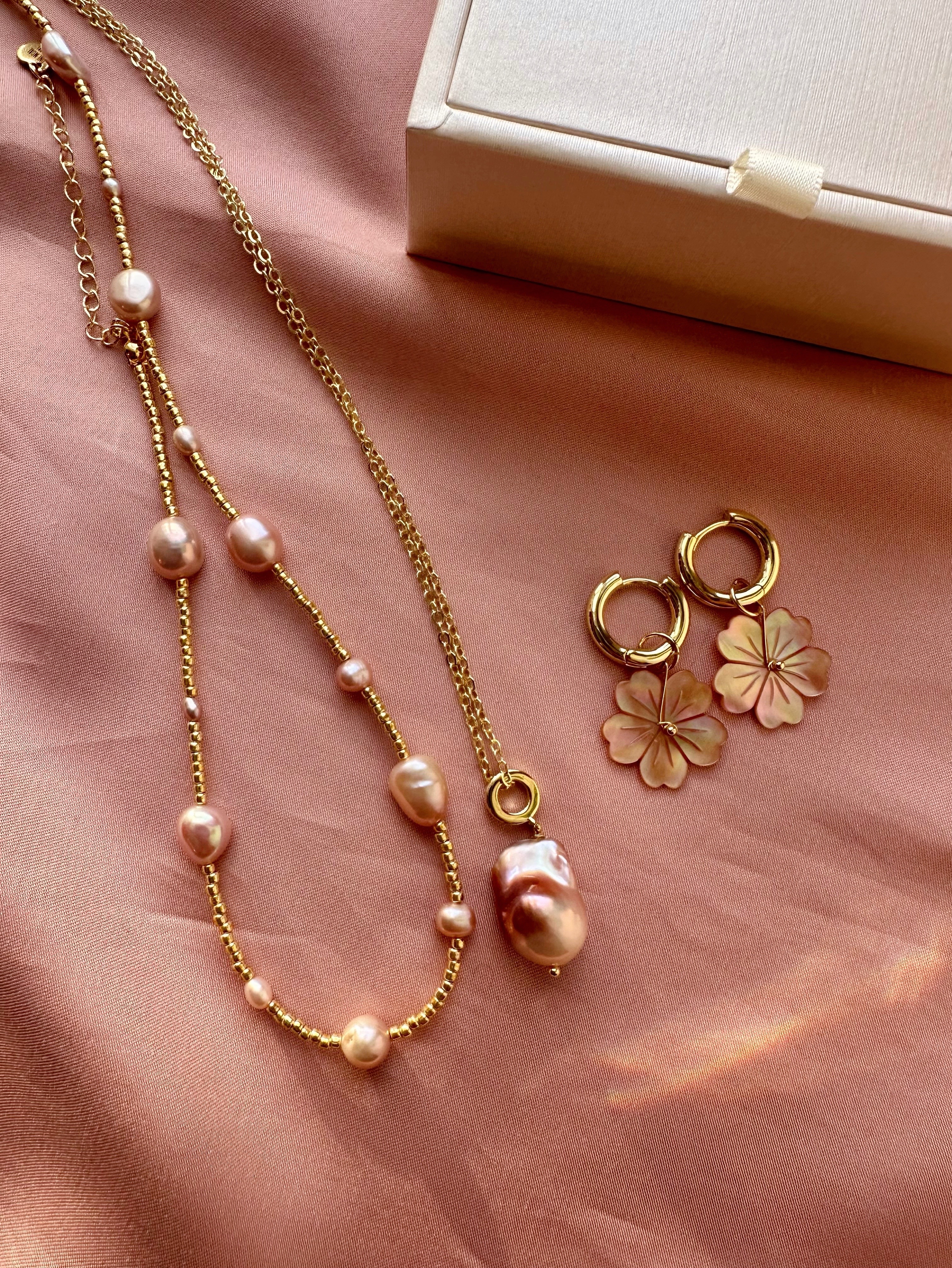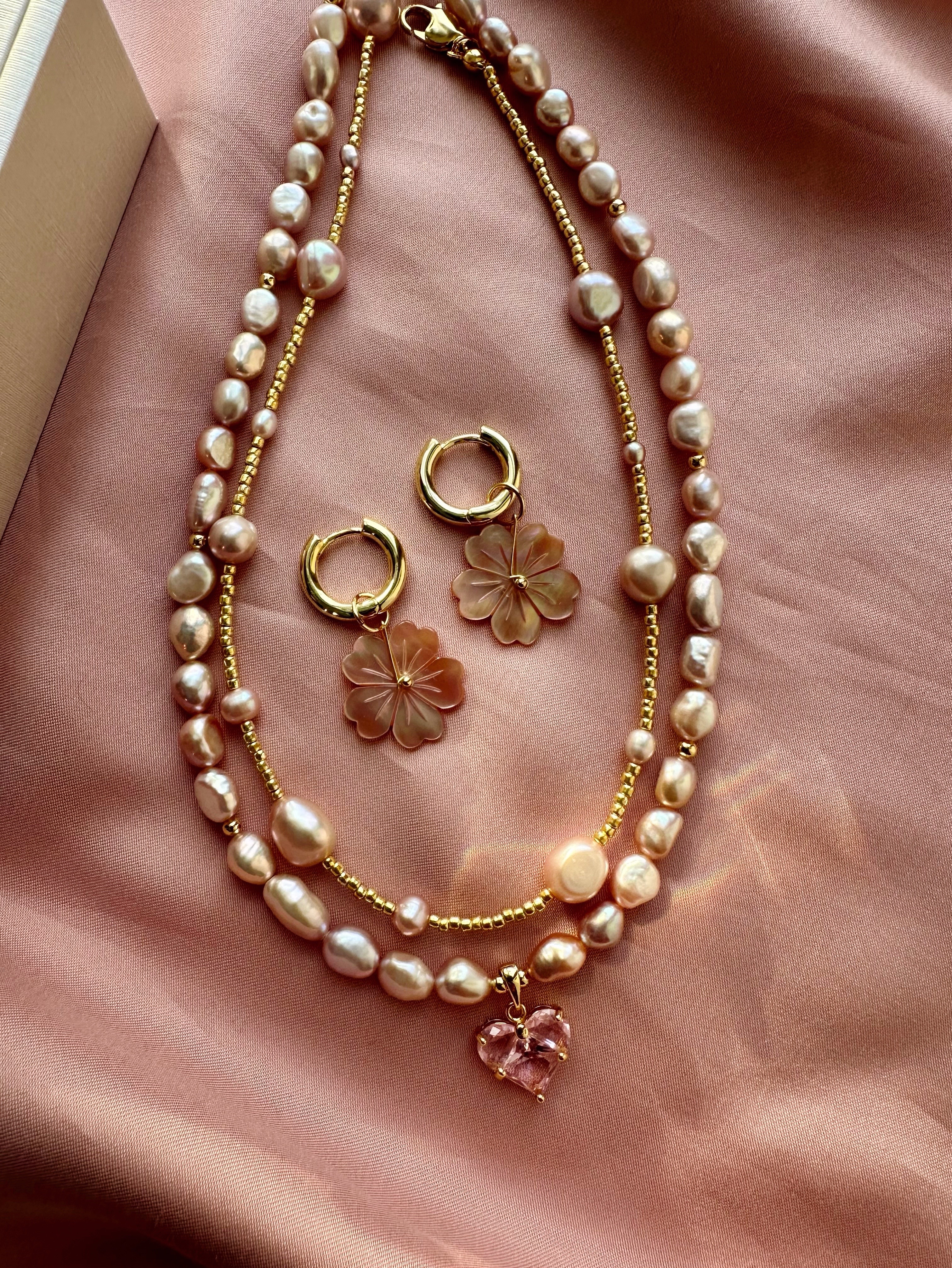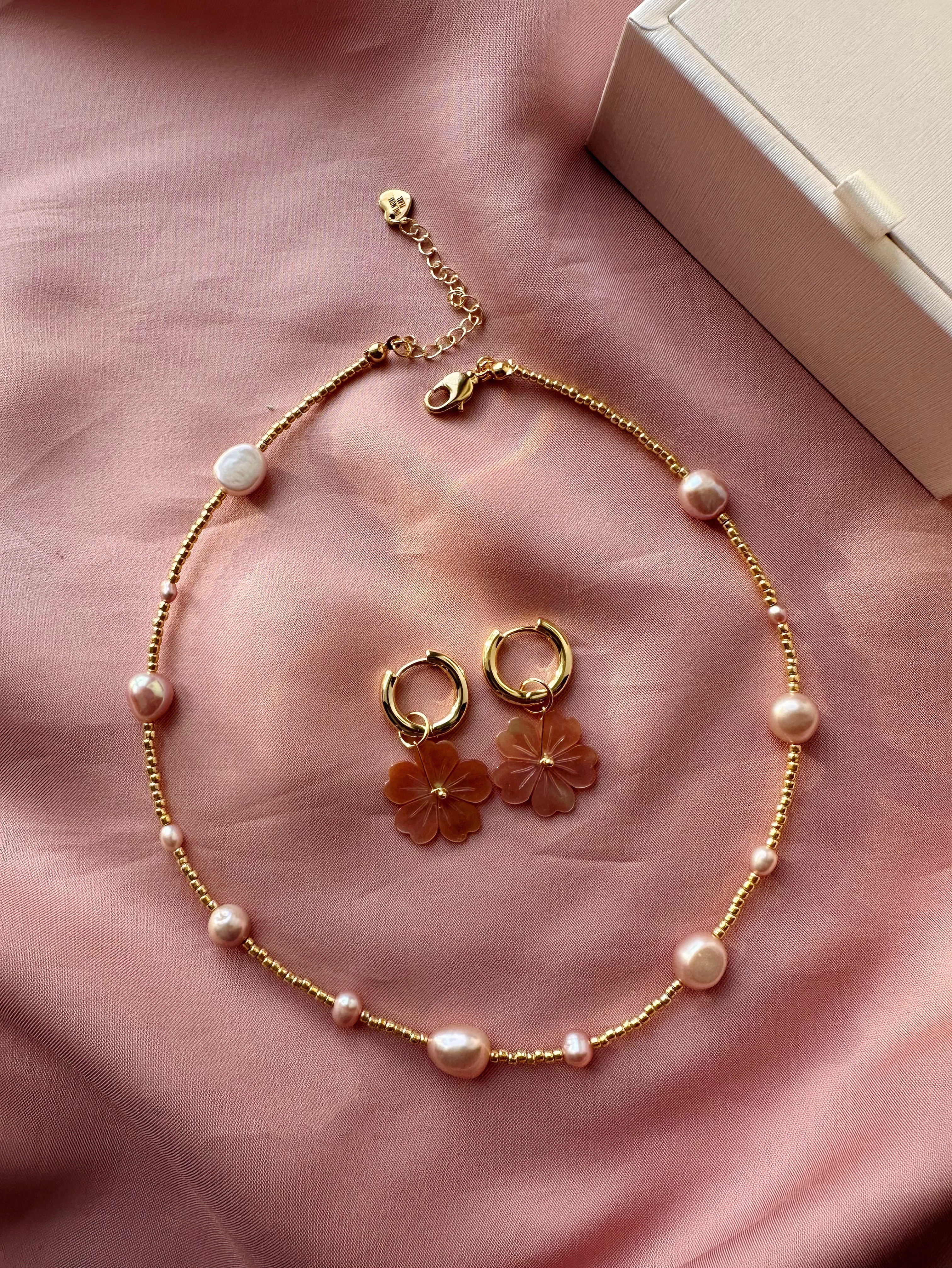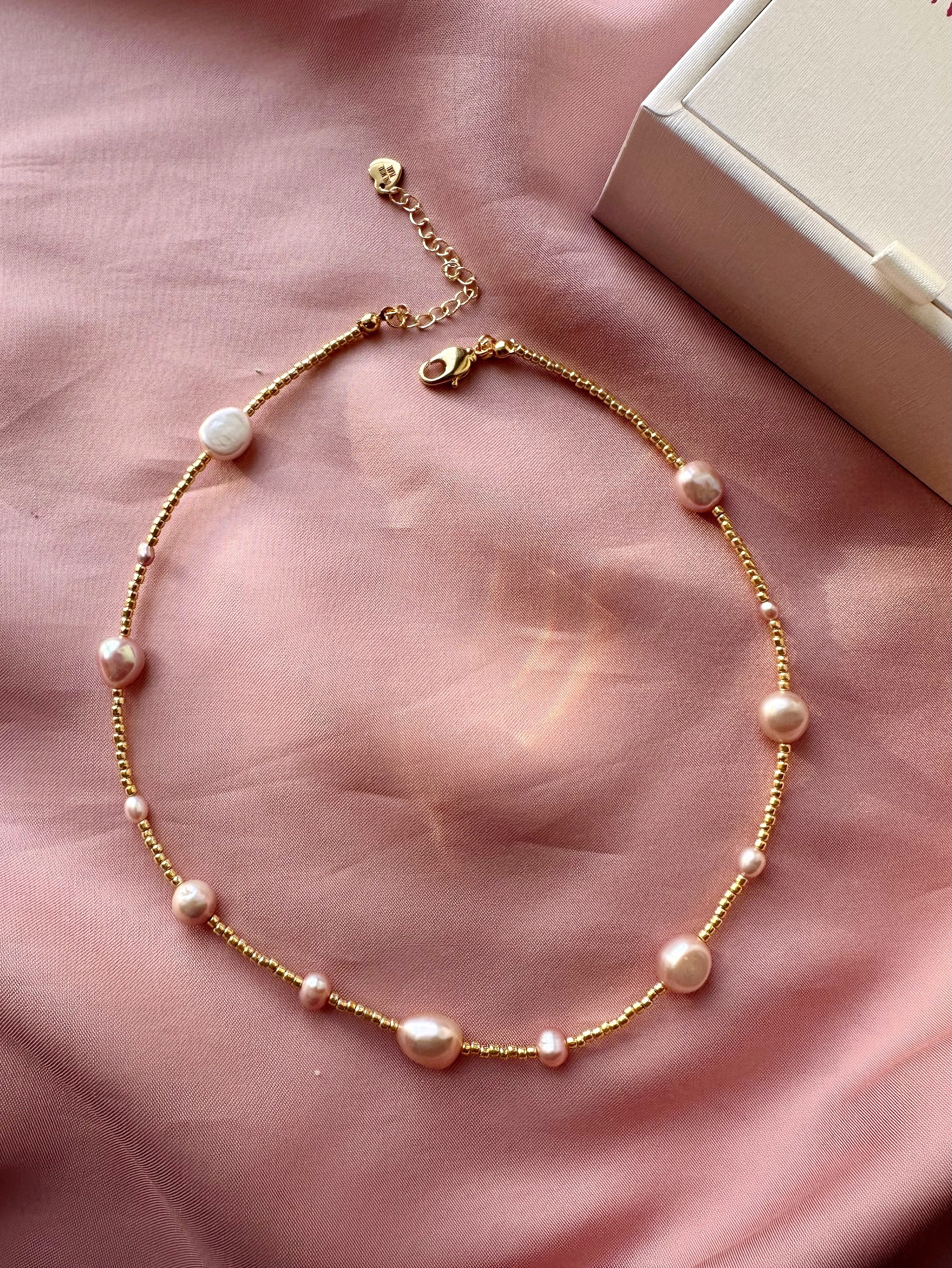 Чокер из гальванического устойчивого бисера, Натурального пресноводного культивированного жемчуга розового цвета