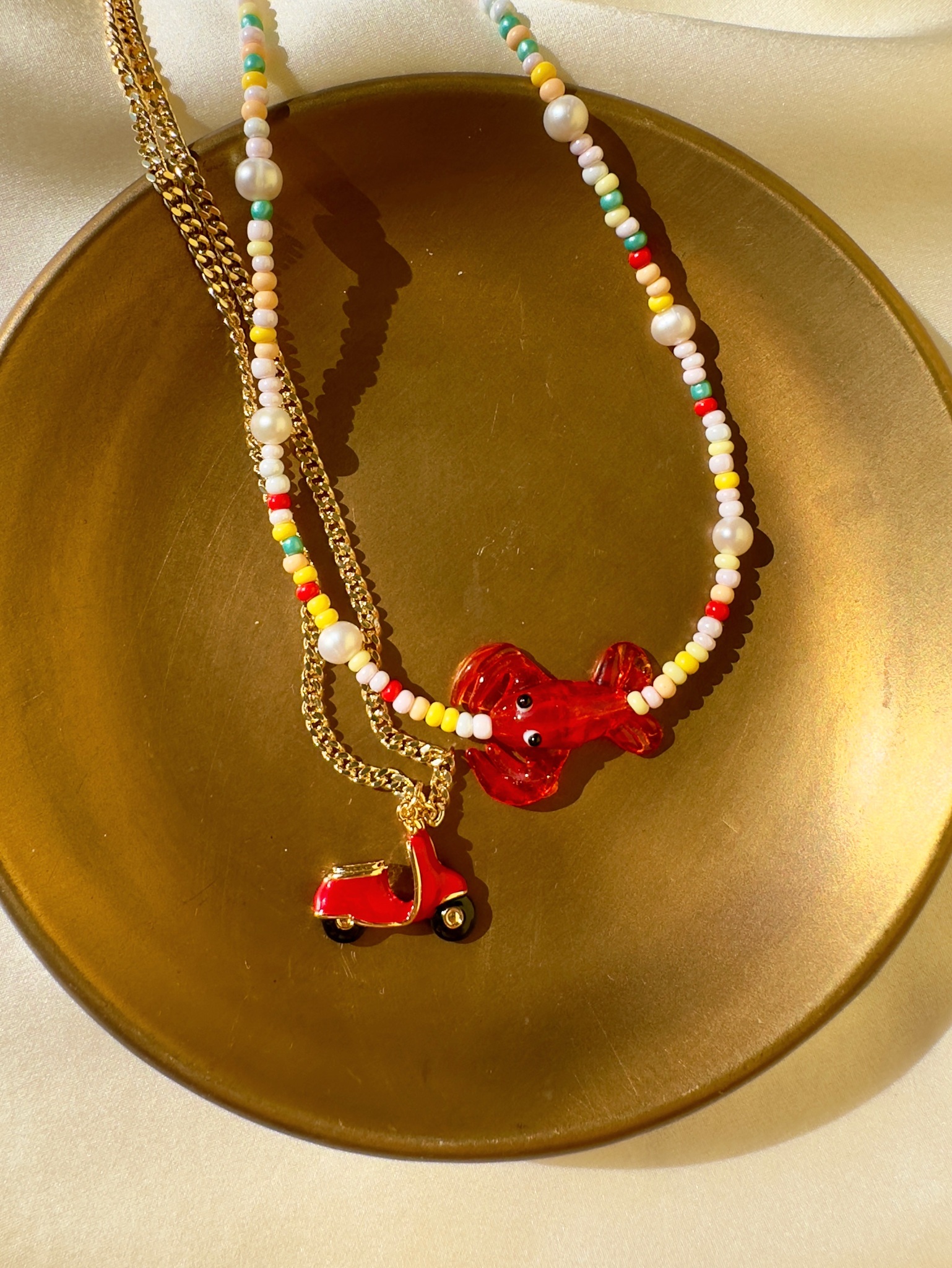 Чокер из Натурального пресноводного культивированного жемчуга 5, бисера и бусины лэмпворк ручной работы в виде лобстера