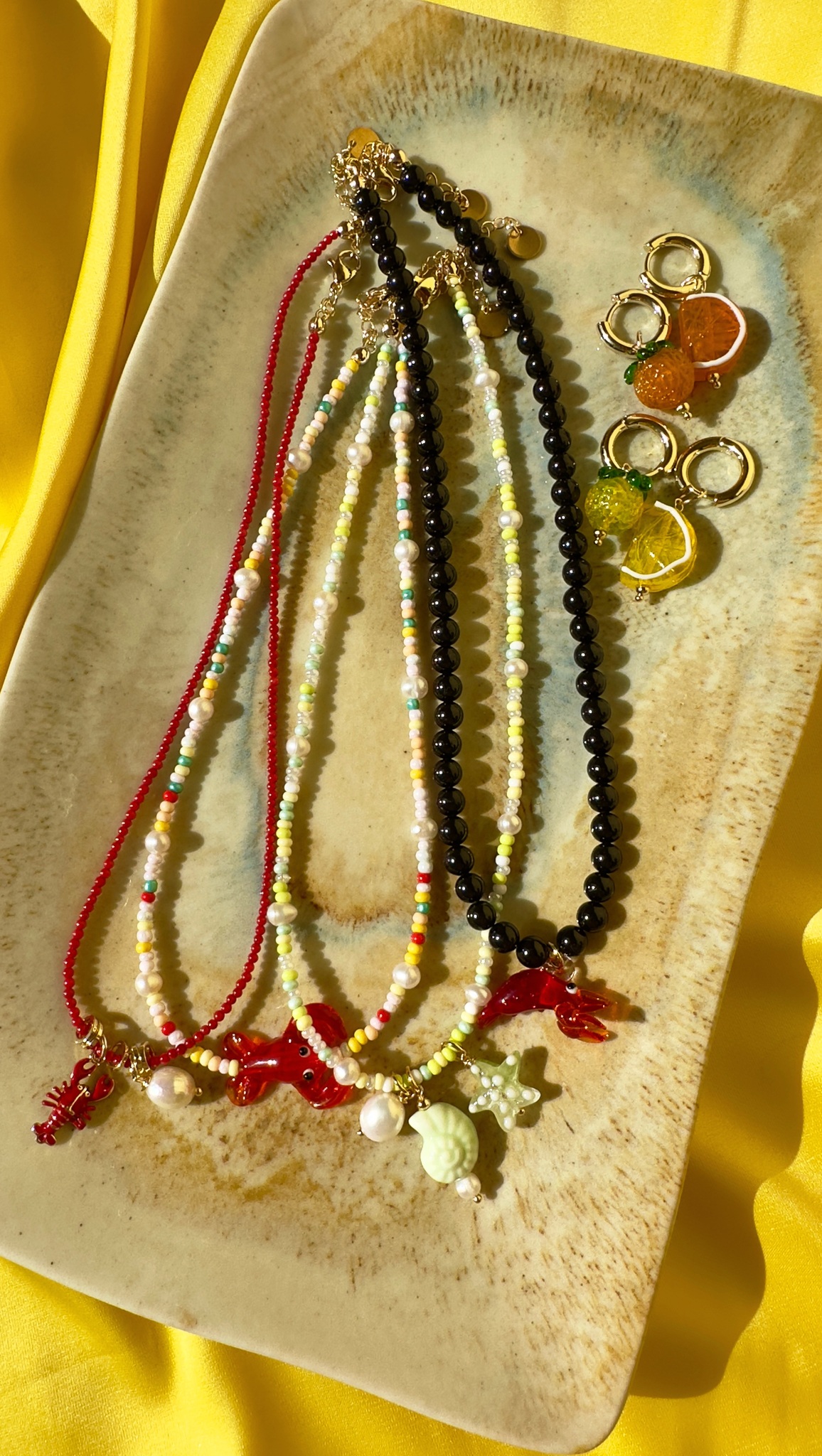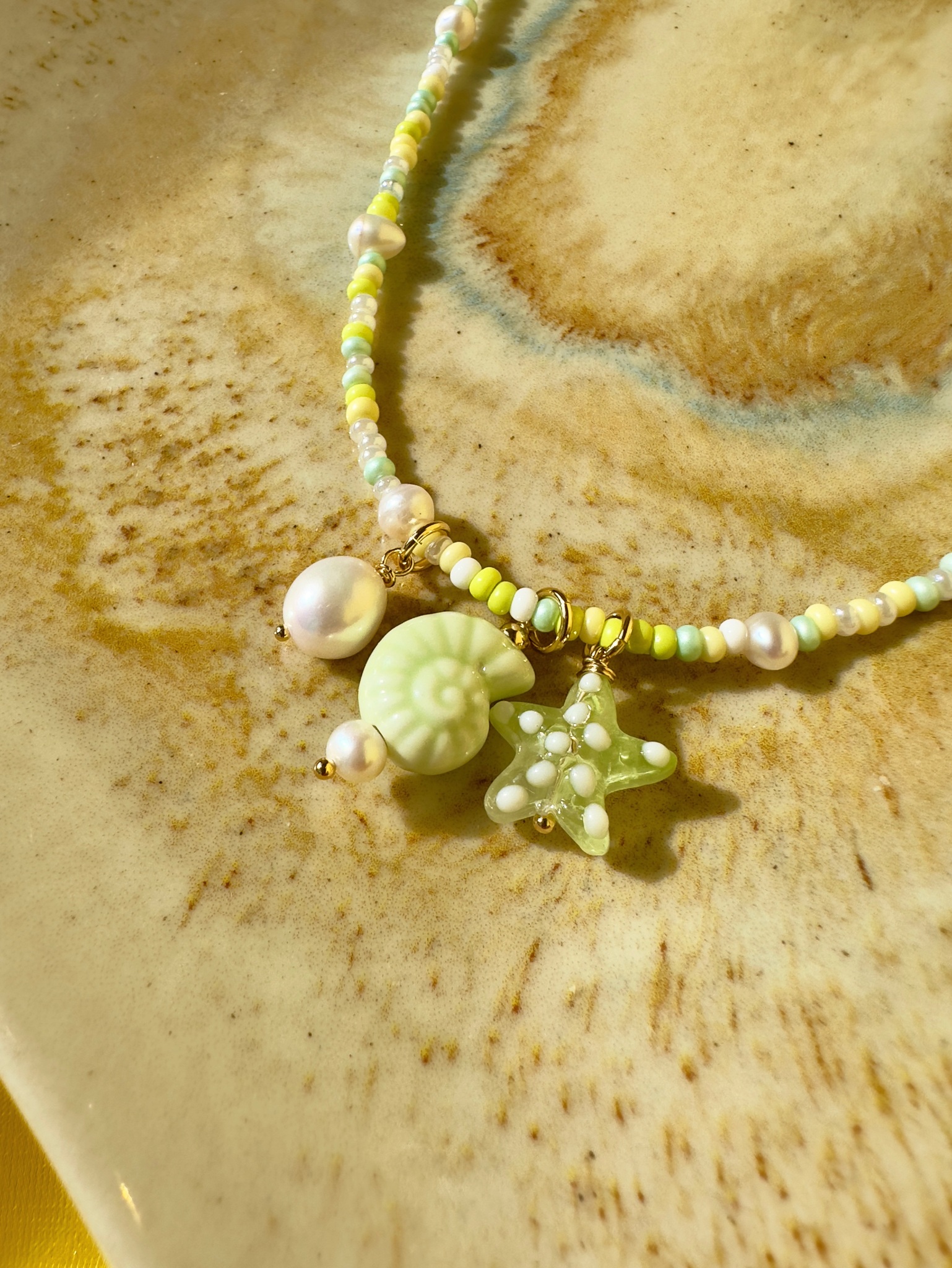 Чокер из Натурального пресноводного культивированного жемчуга 5 мм, бисера, керамики и бусины лэмпворк ручной работы в виде звезда