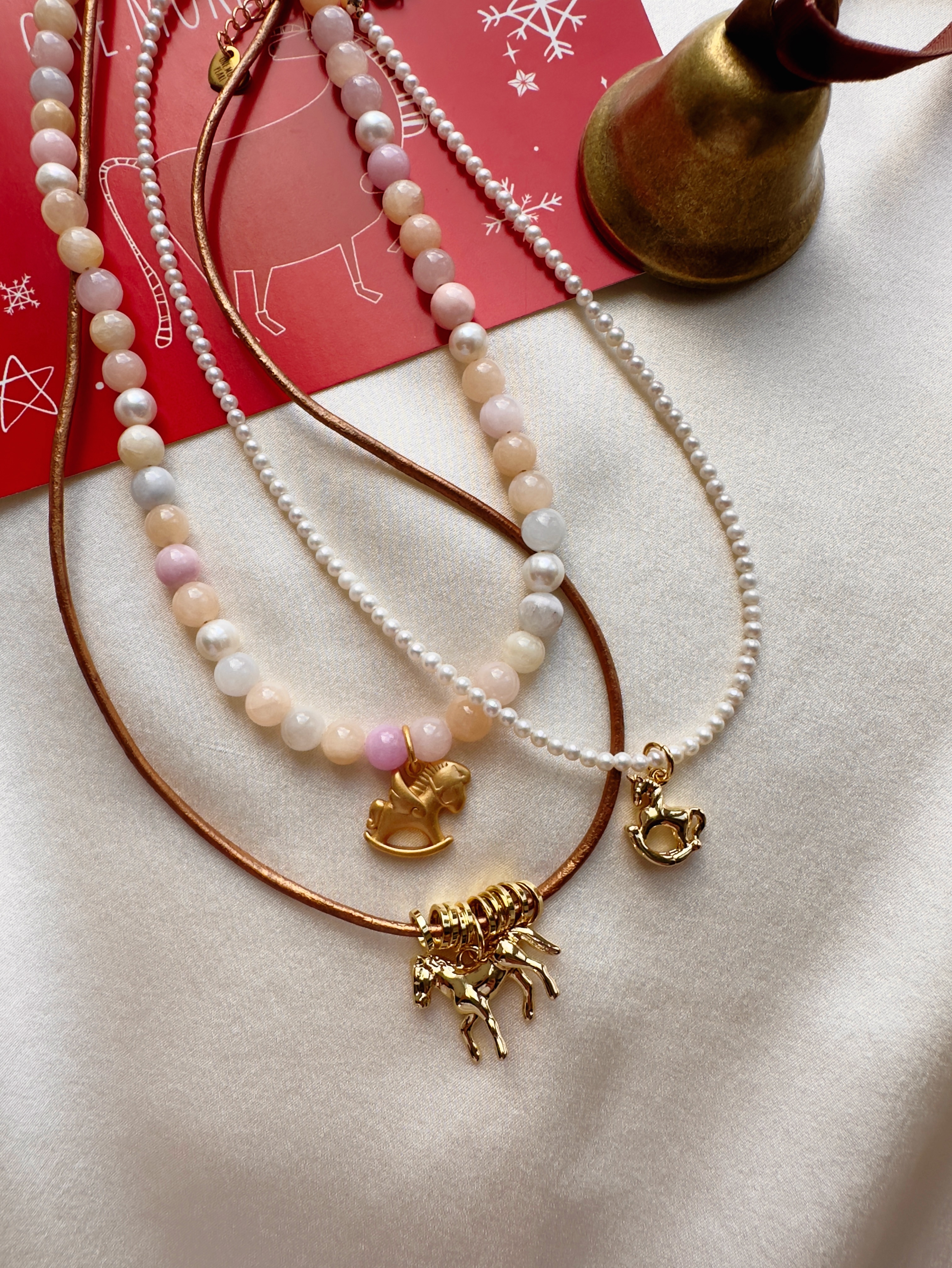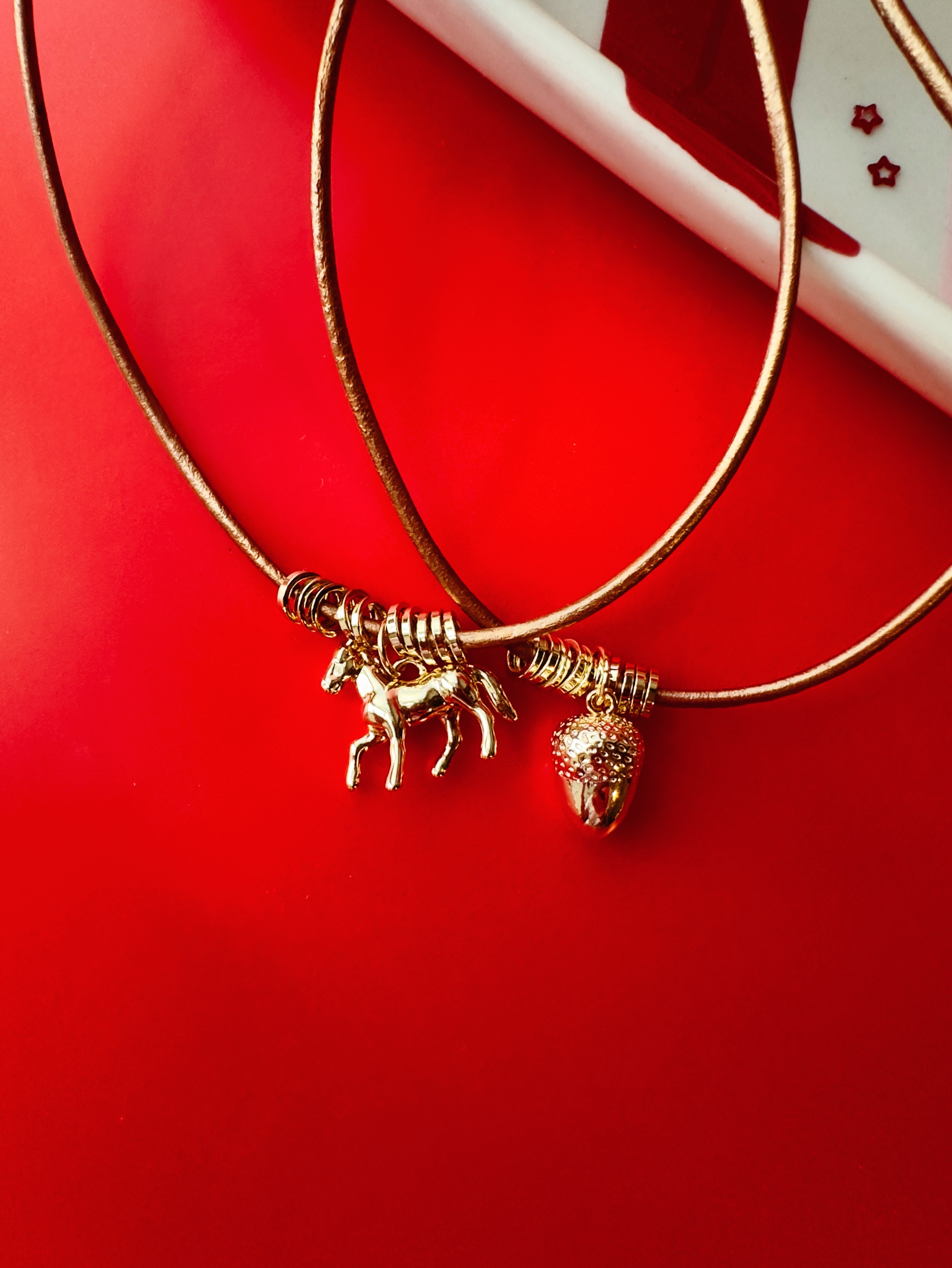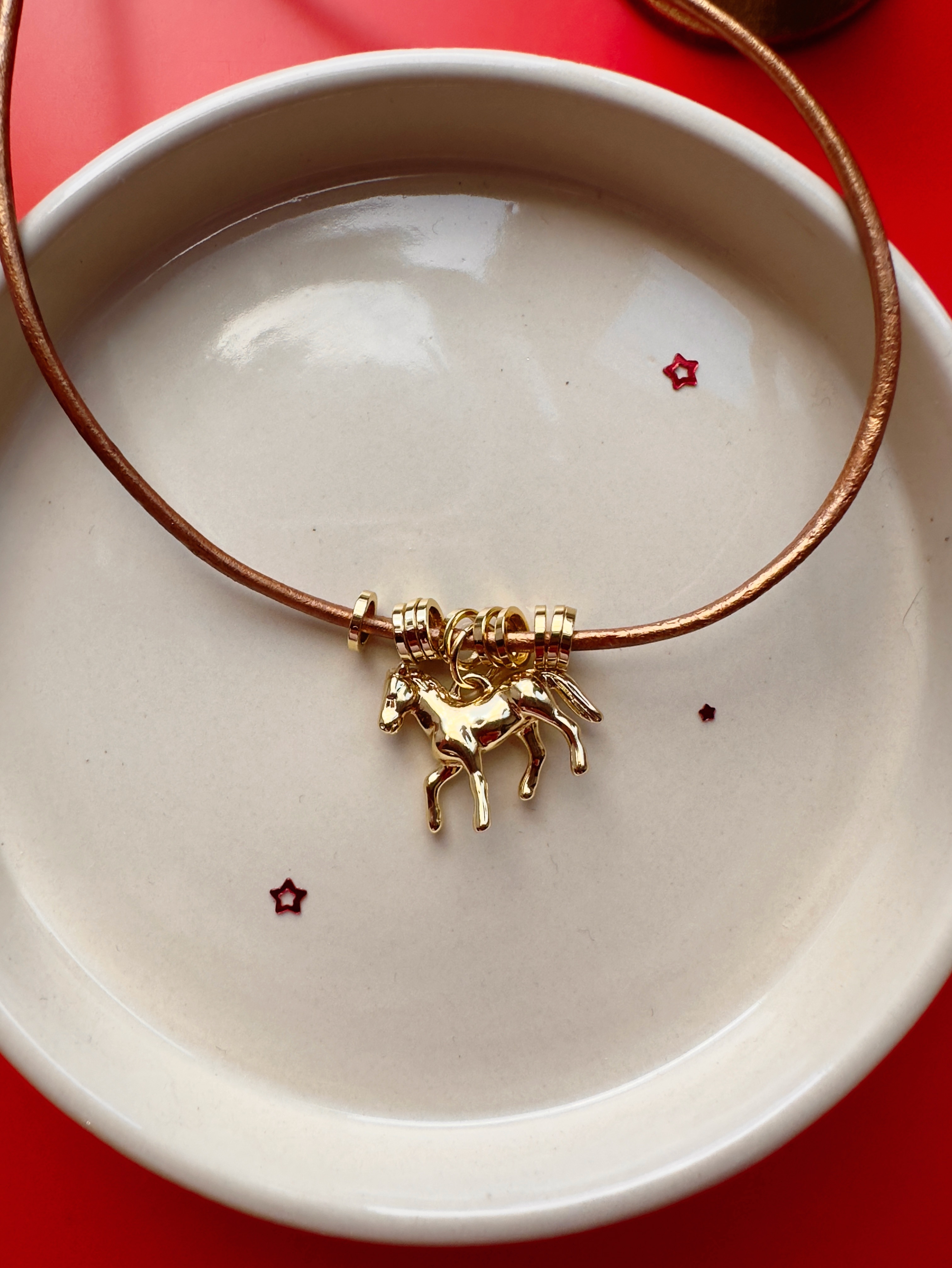 Коричневый Кожаный шнурок с подвеской из латуни с покрытием Золото 18К, в форме лошадка и колечками