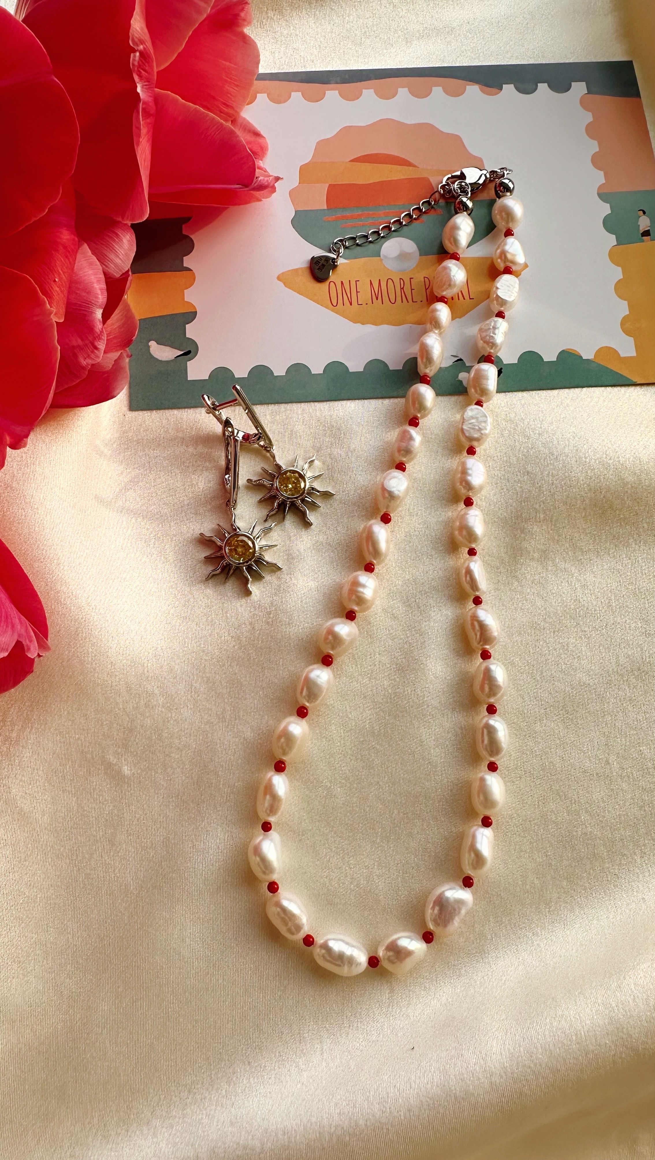 Ожерелье из Натурального пресноводного культивированного жемчуга, барочная форма рис 8 мм и натурального коралла