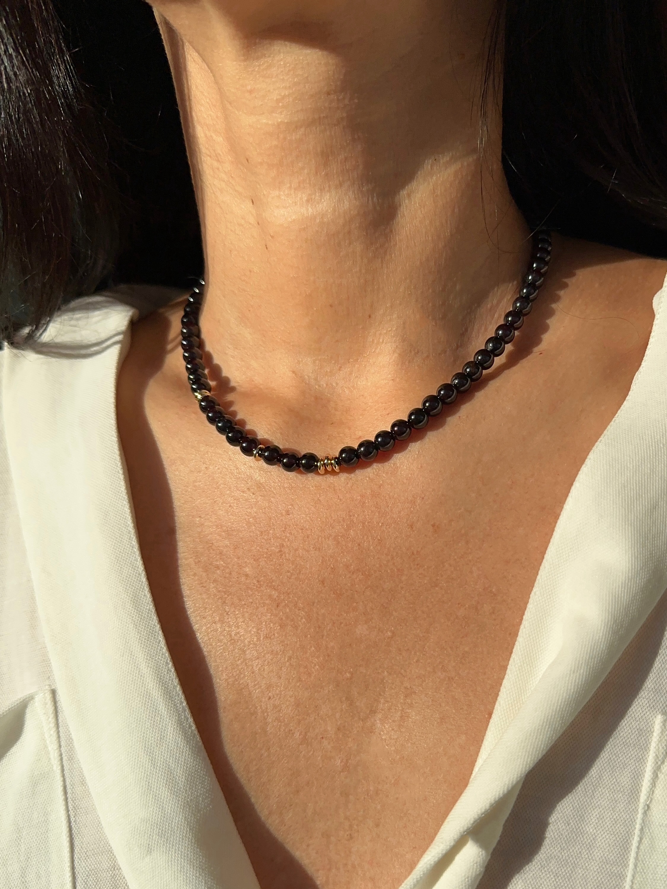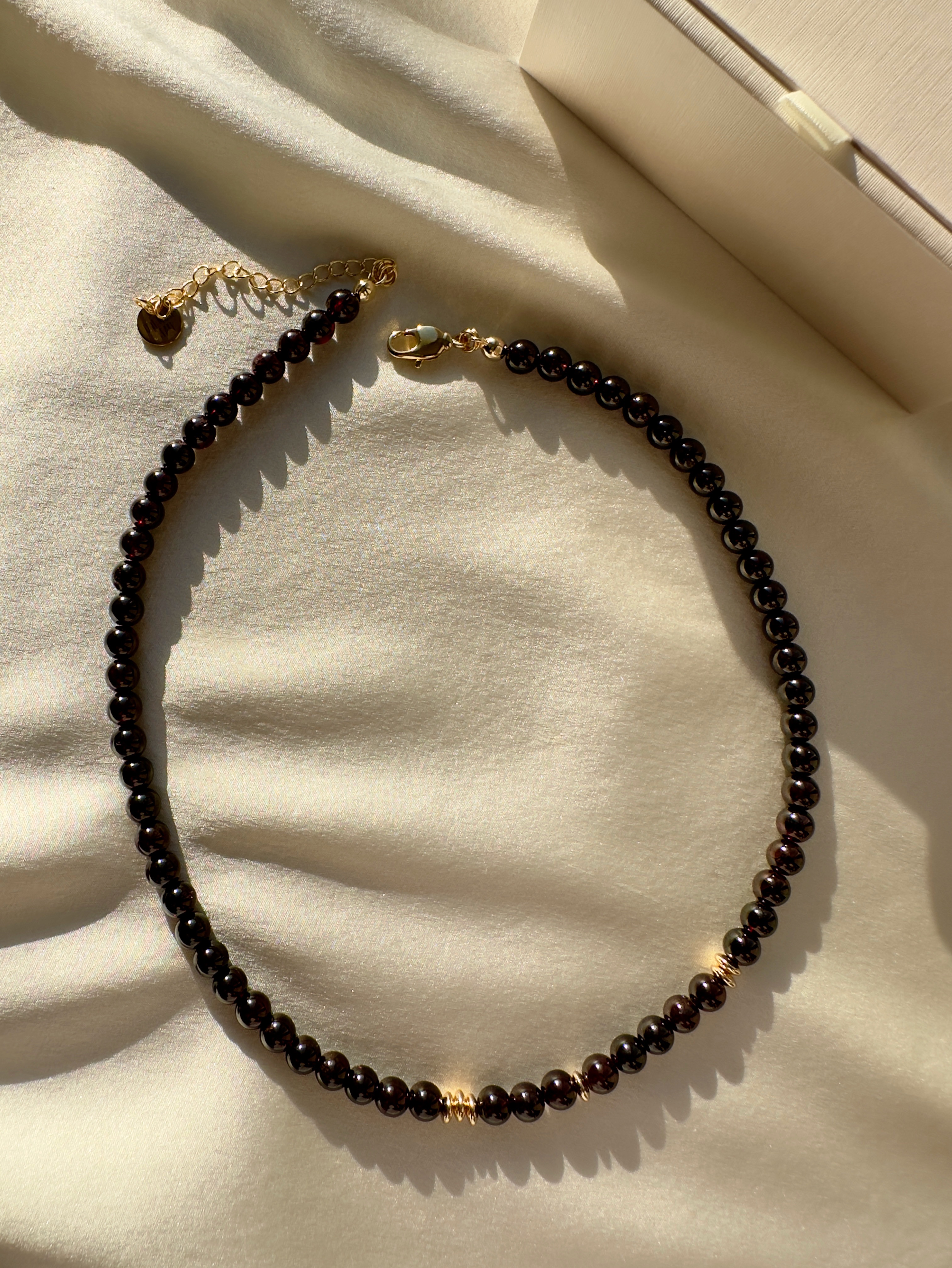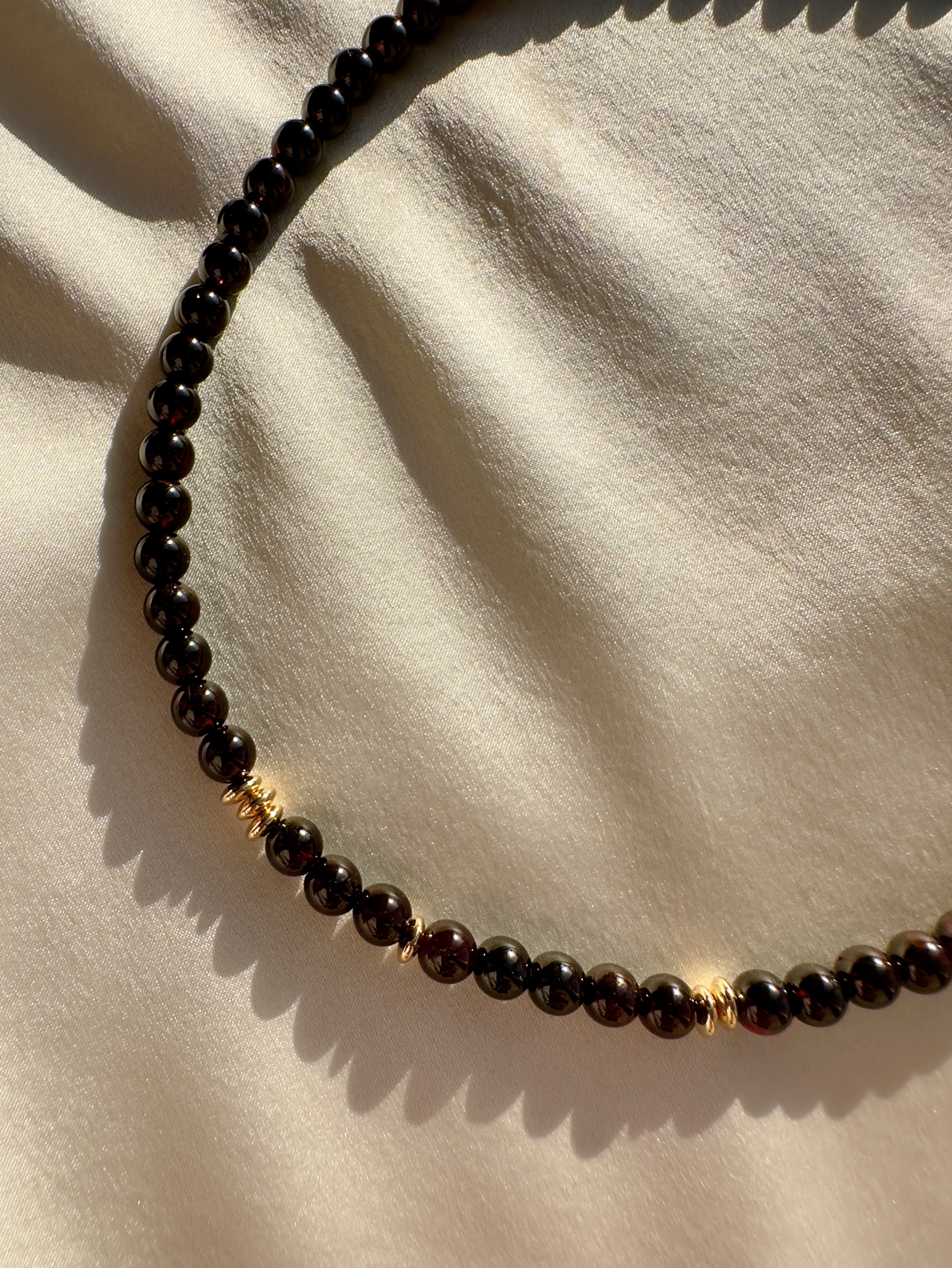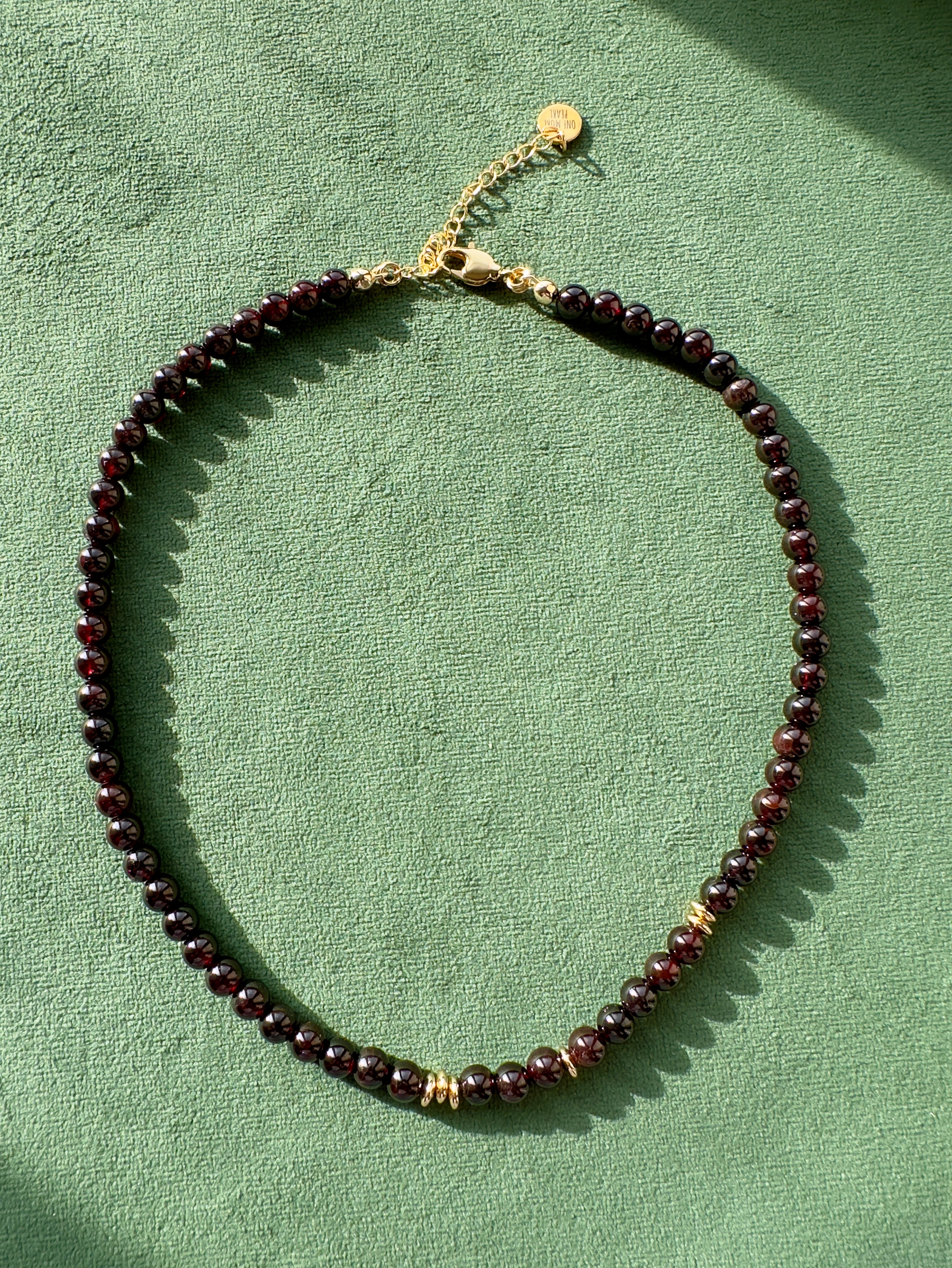 Ожерелье из Натурального граната 6 мм и бусин из латуни покрытие золото 18 карат