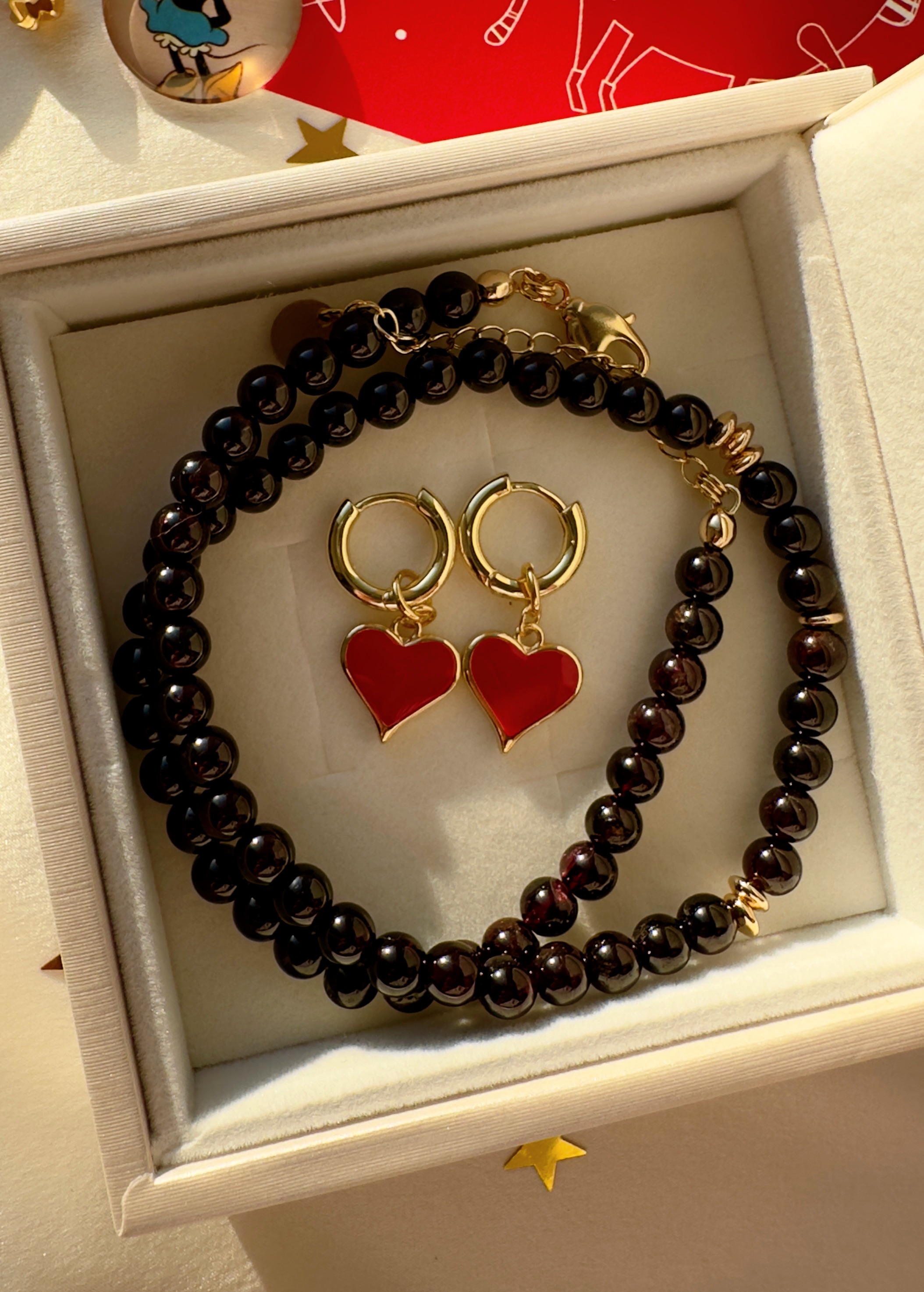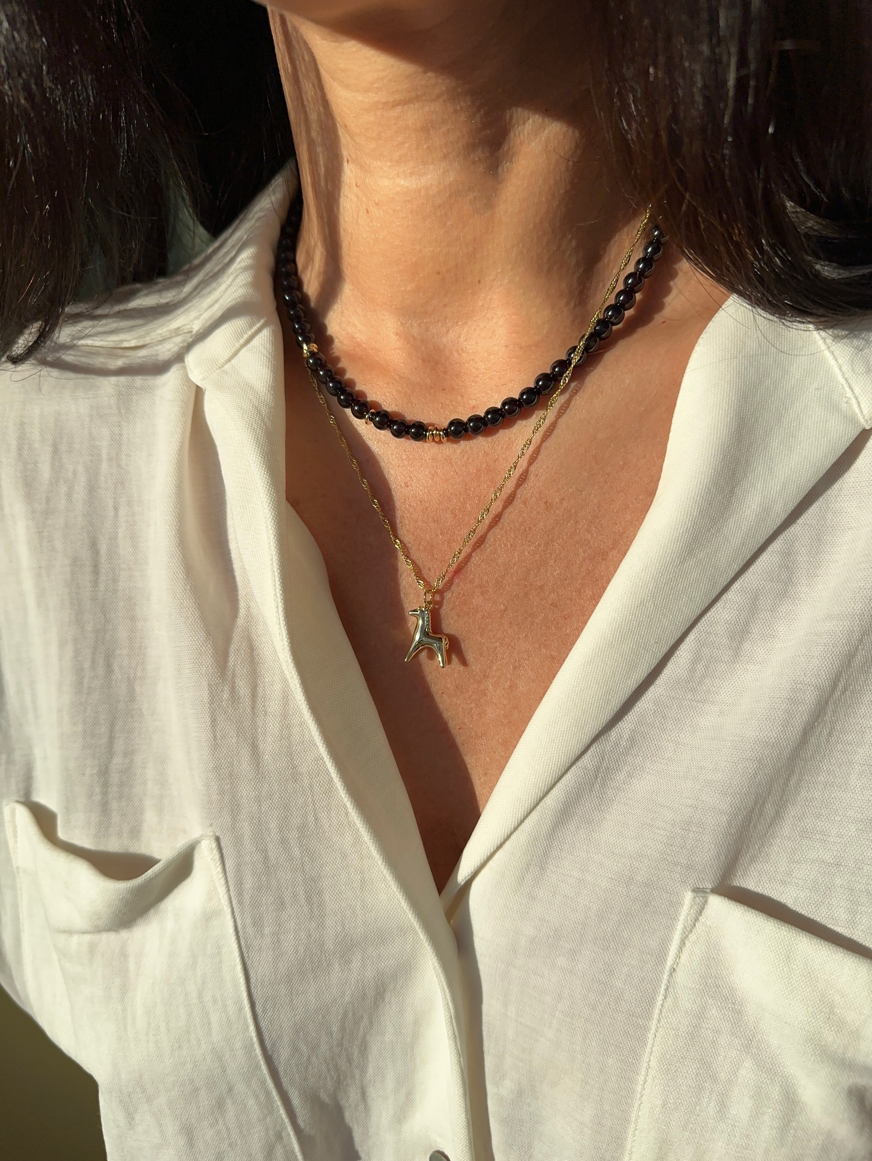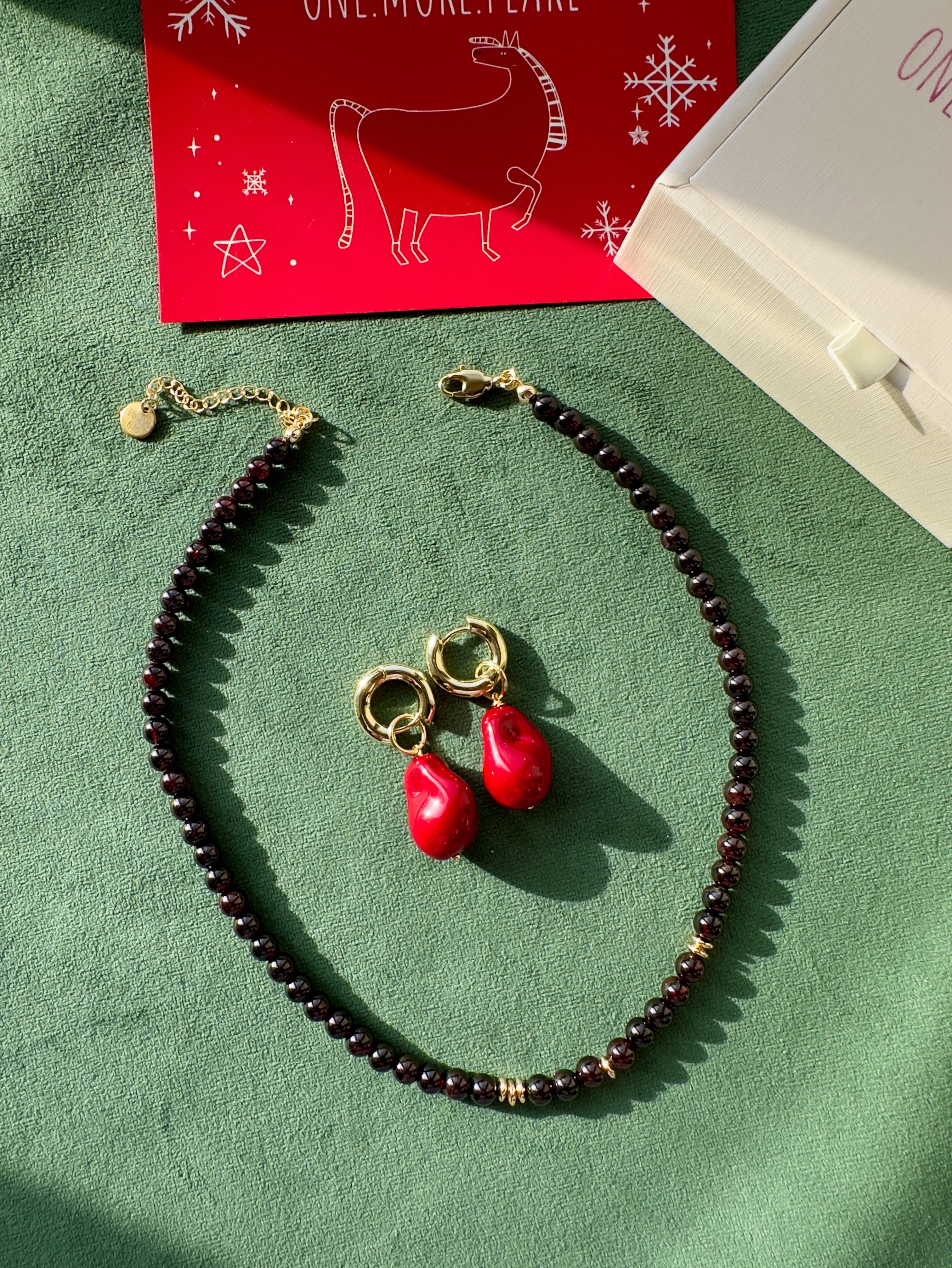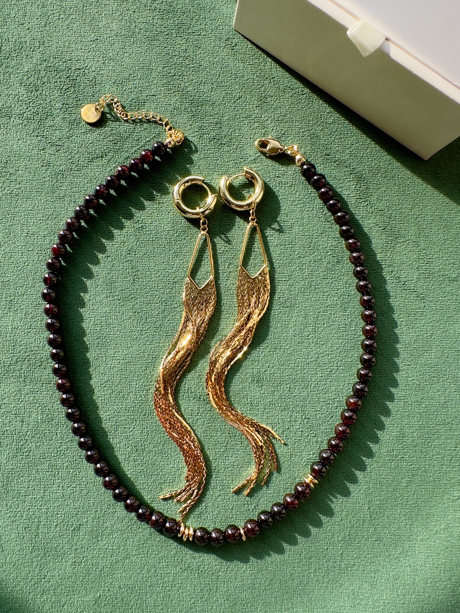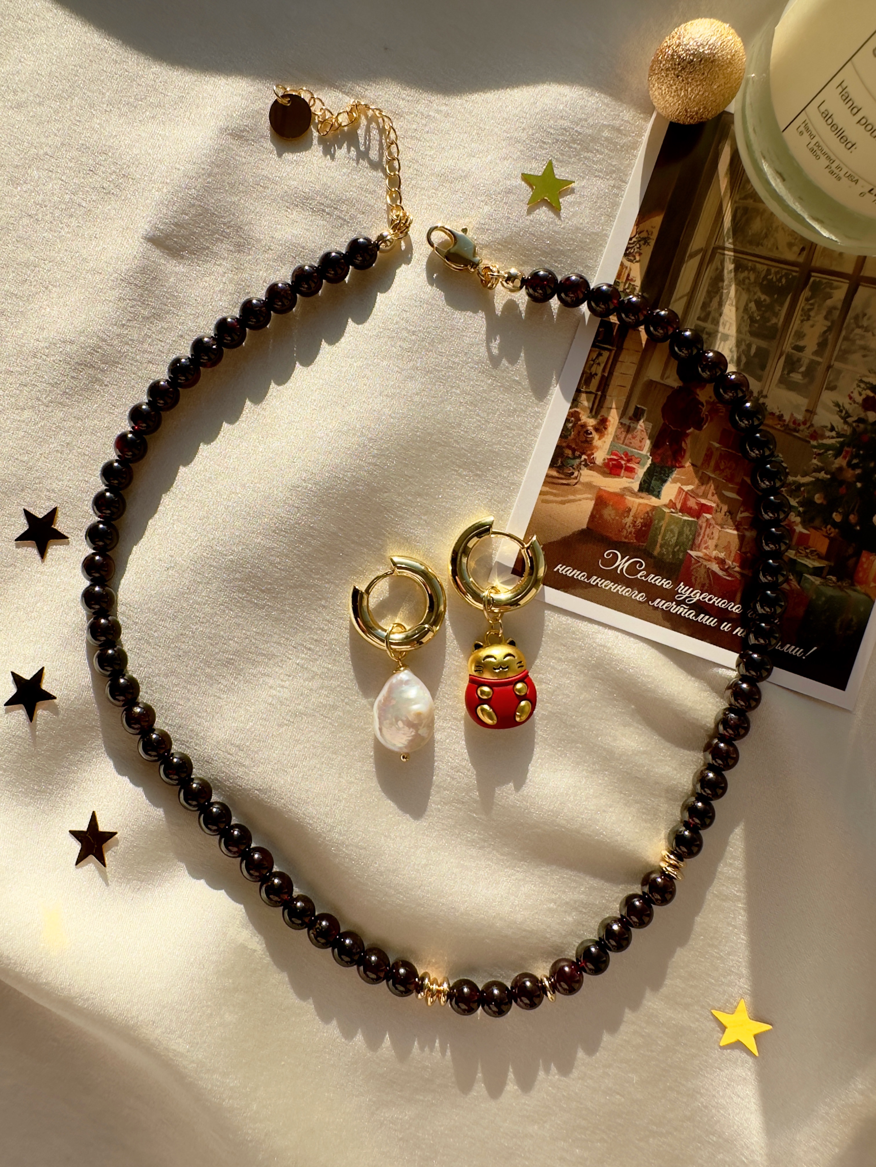 Ожерелье из Натурального граната 6 мм и бусин из латуни покрытие золото 18 карат