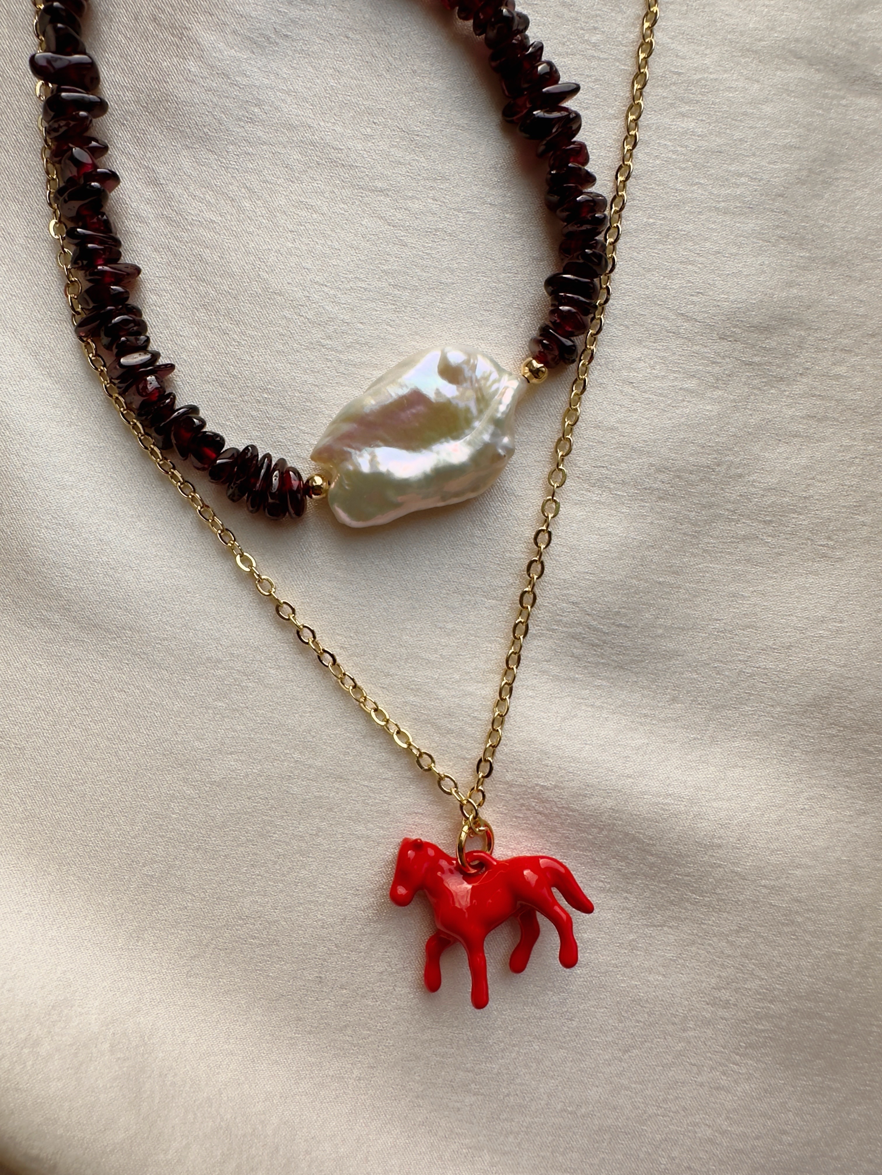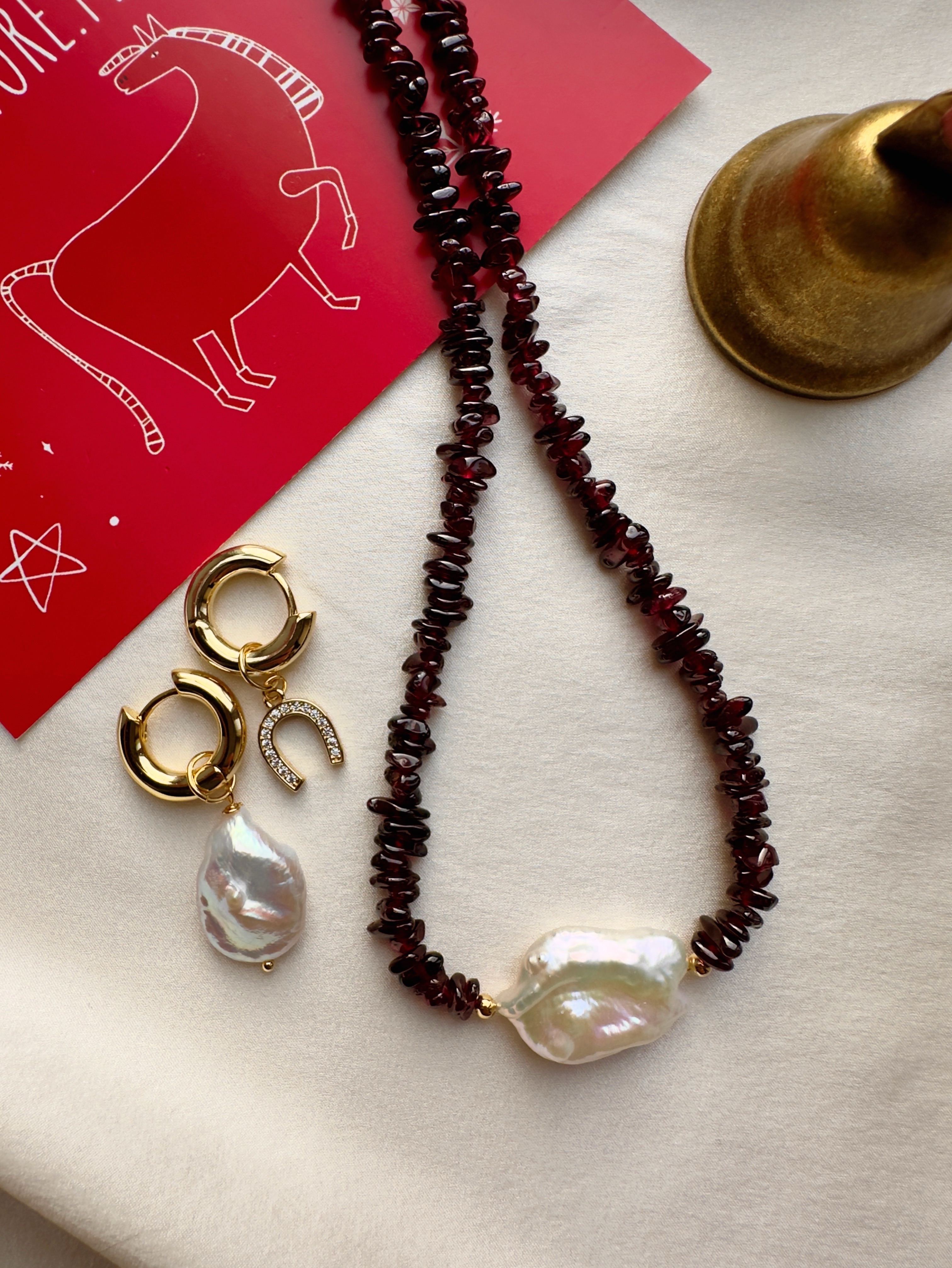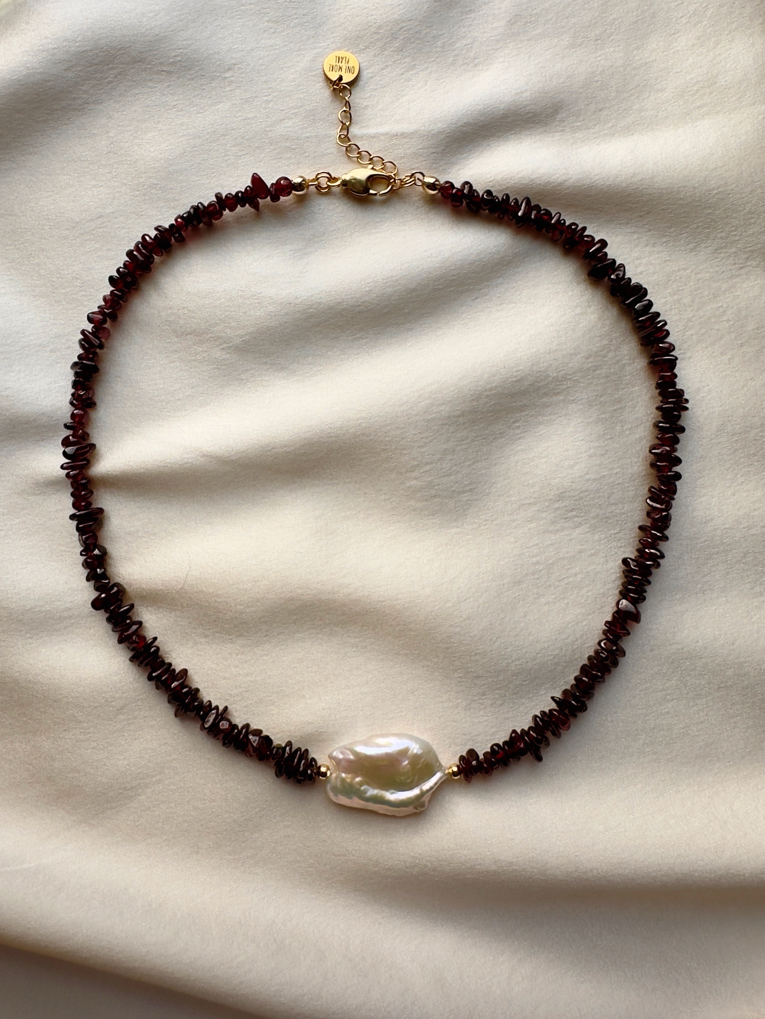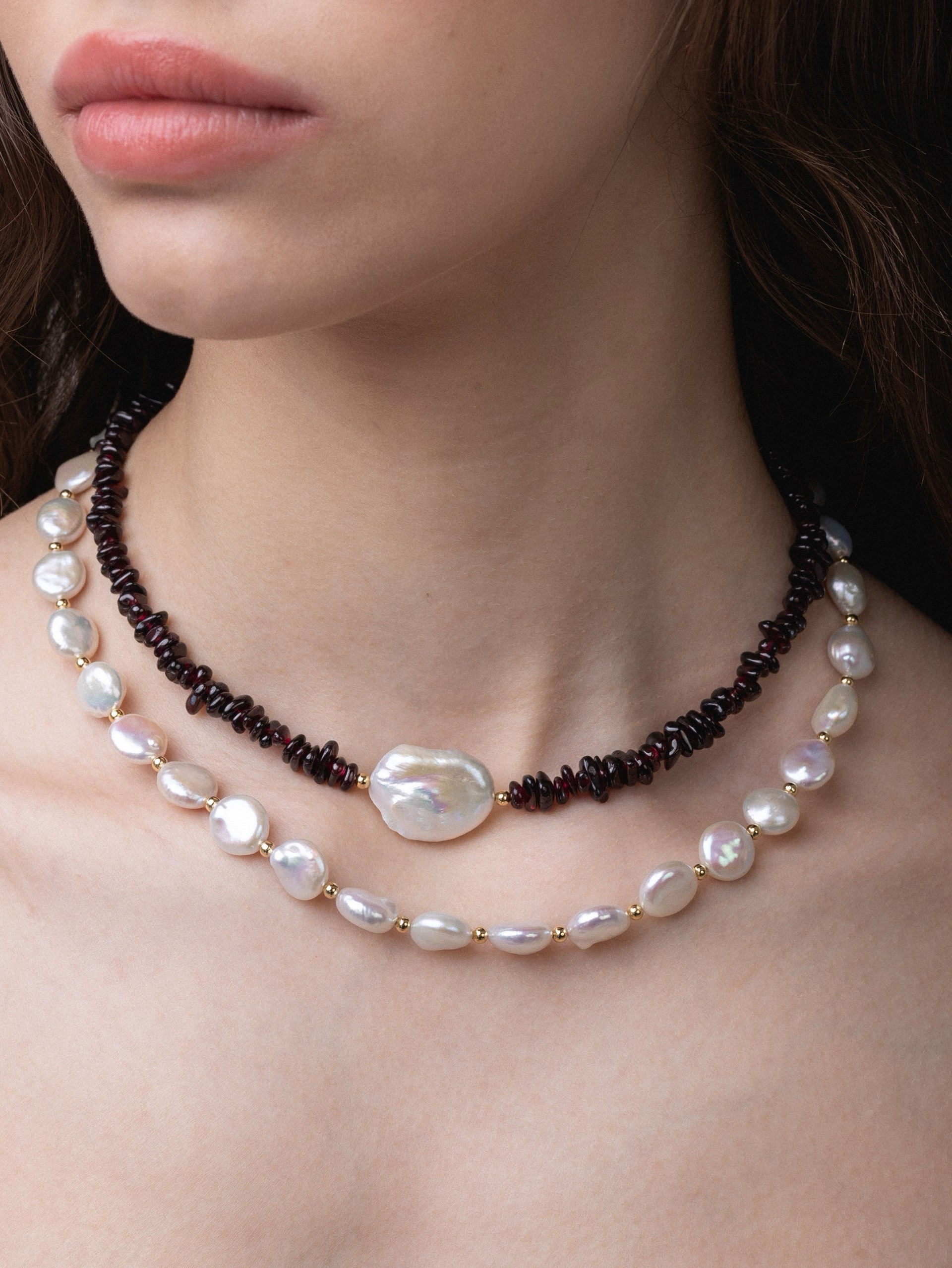 Ожерелье из натурального граната свободной форме и Натурального пресноводного культивированного жемчуга