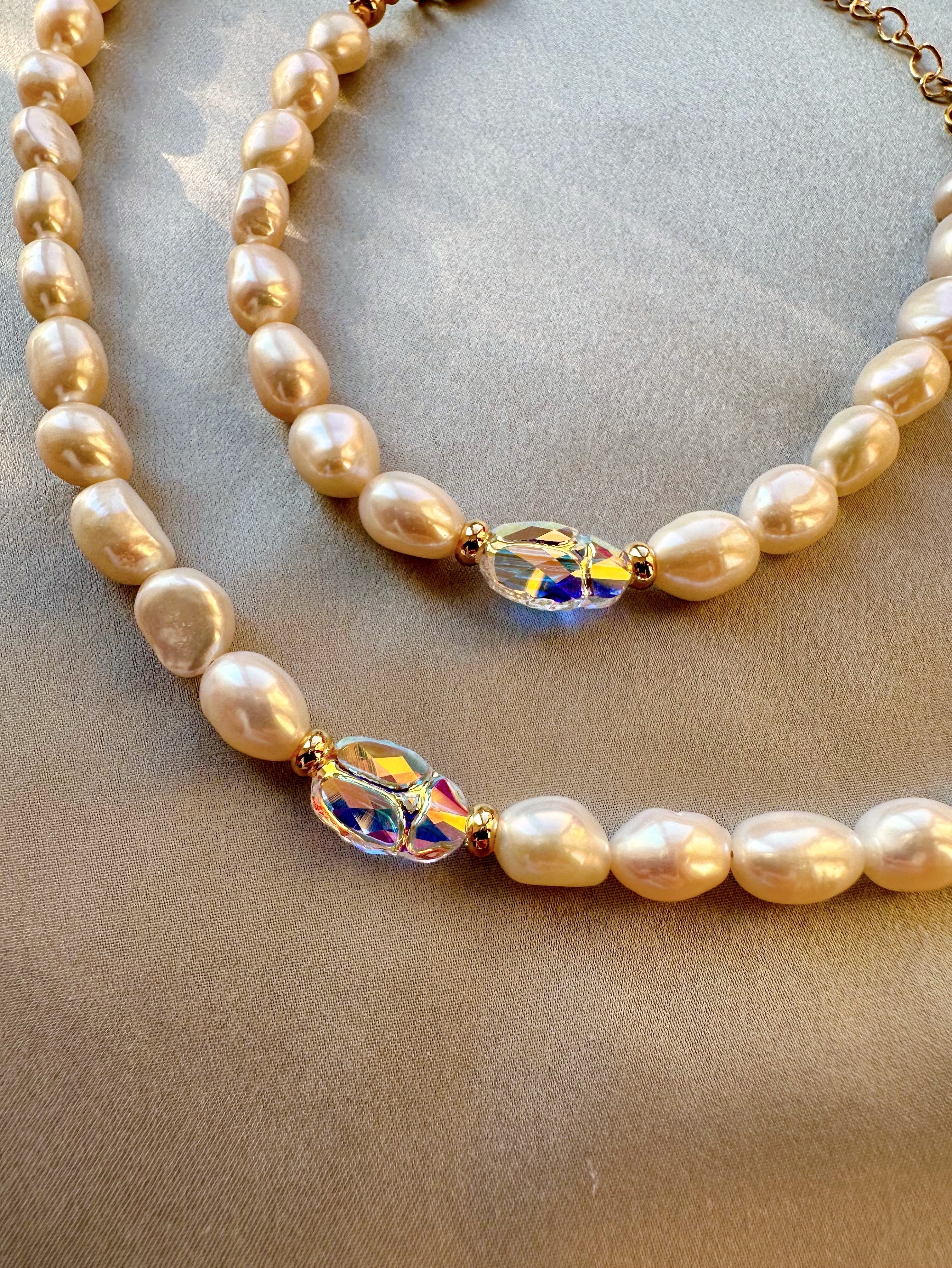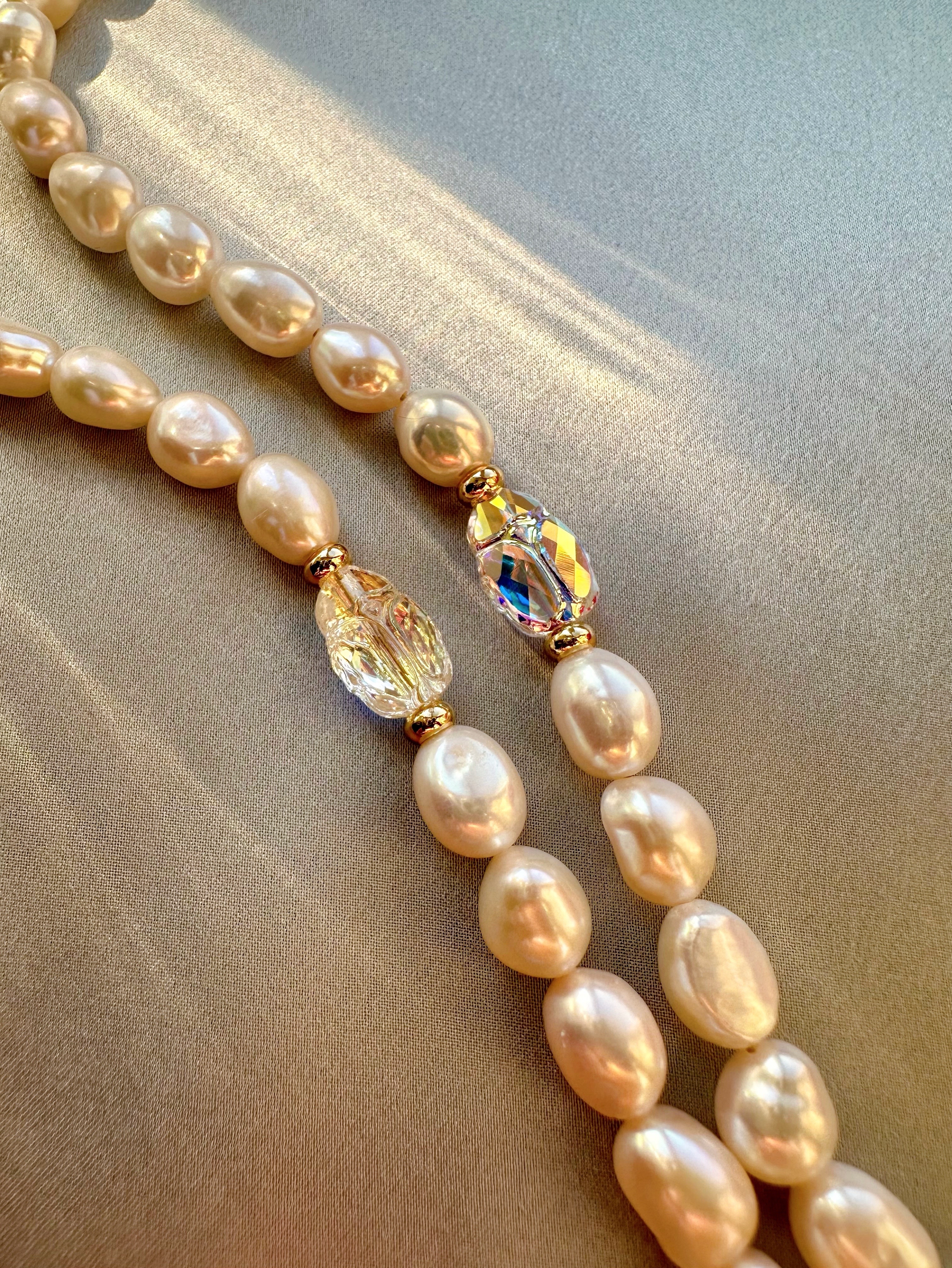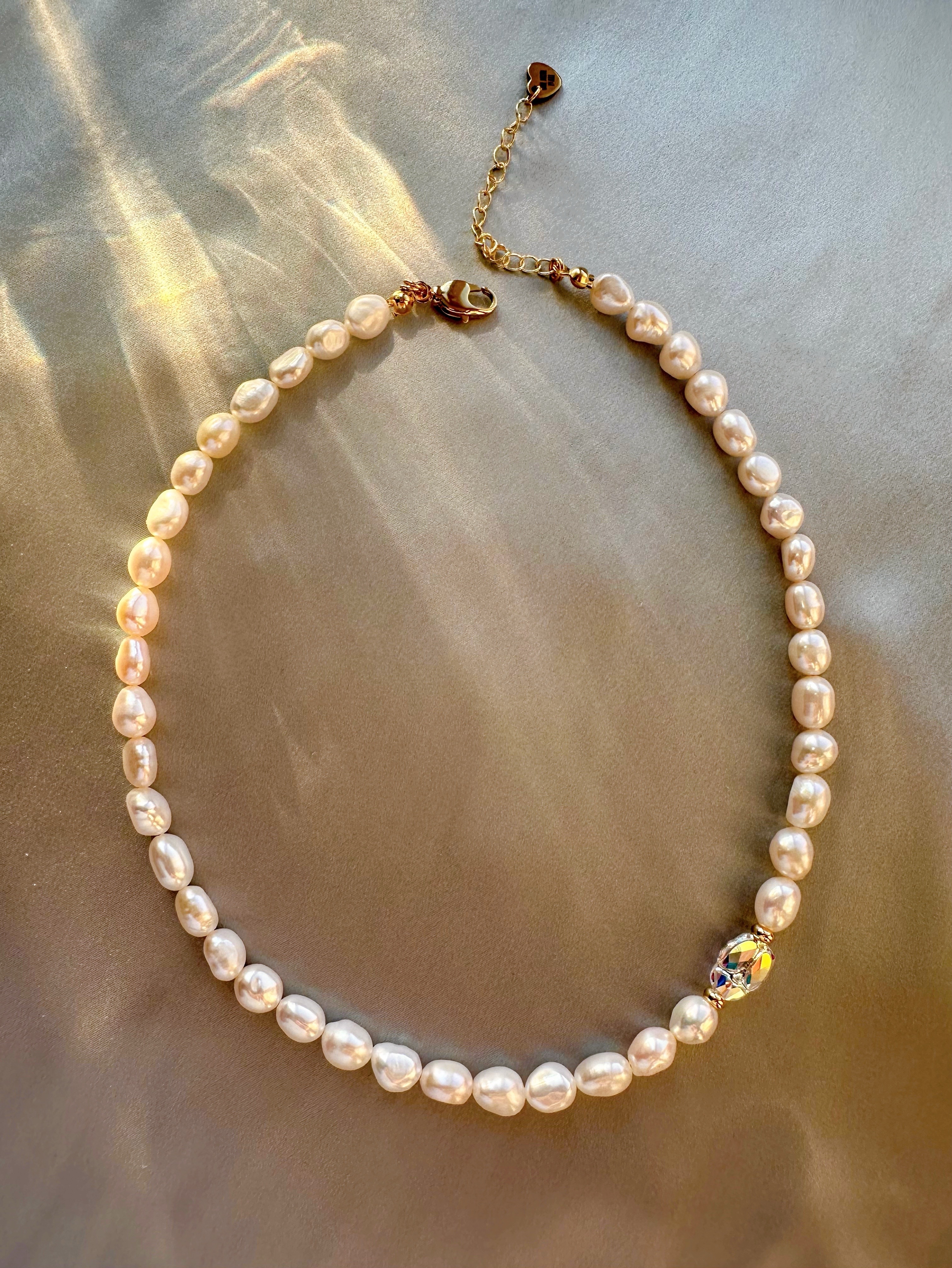 Ожерелье из Натурального пресноводного культивированного жемчуга, барочная форма рис 8 мм и кристалла Сваровски