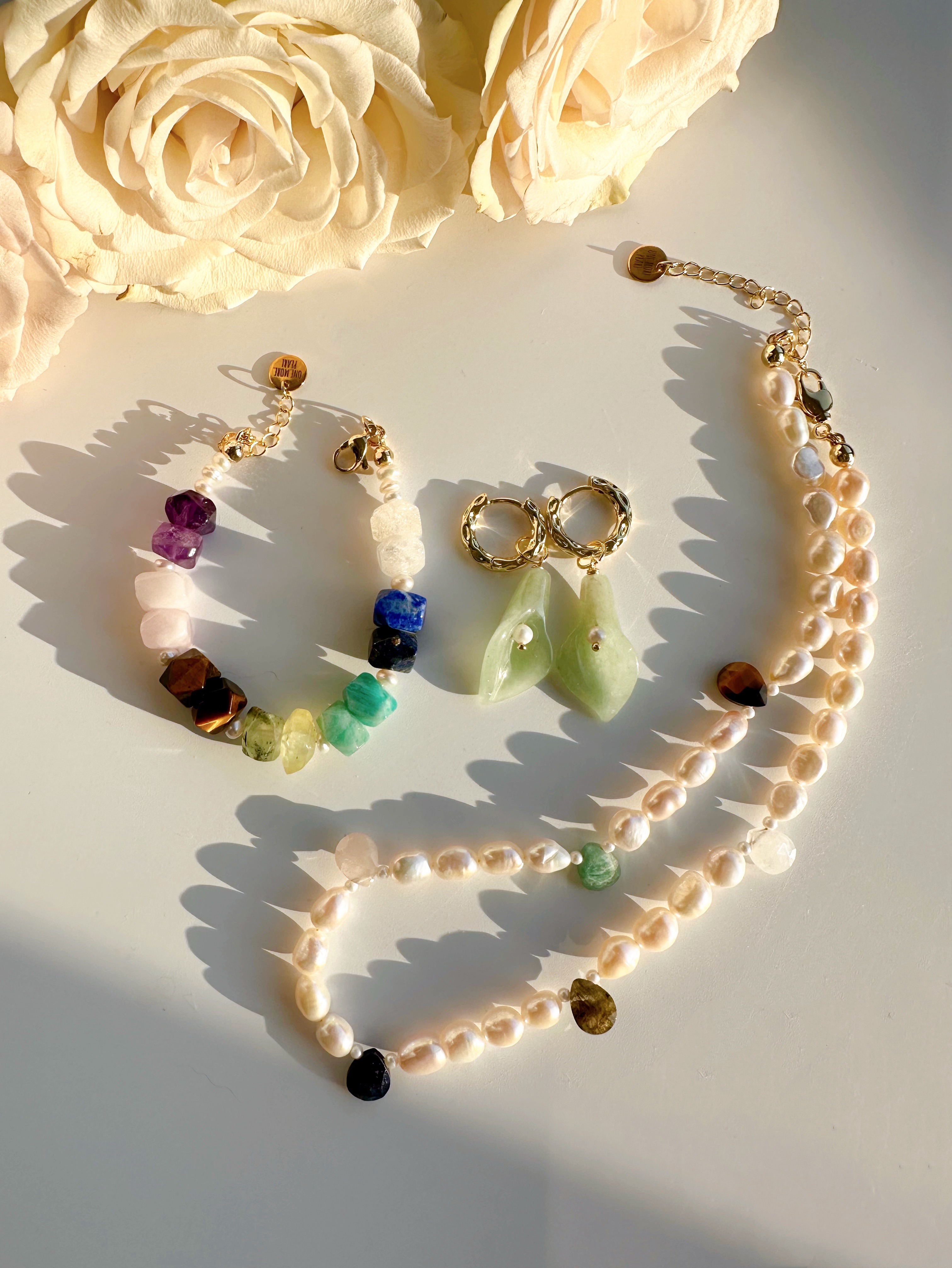 Серьги с подвесками из натурального авантюрина и натурального культивированного пресноводного жемчуга