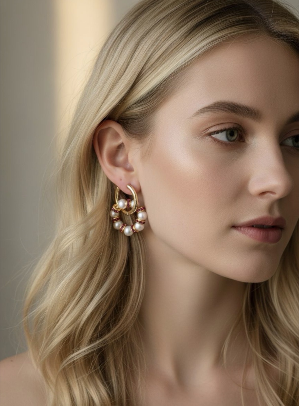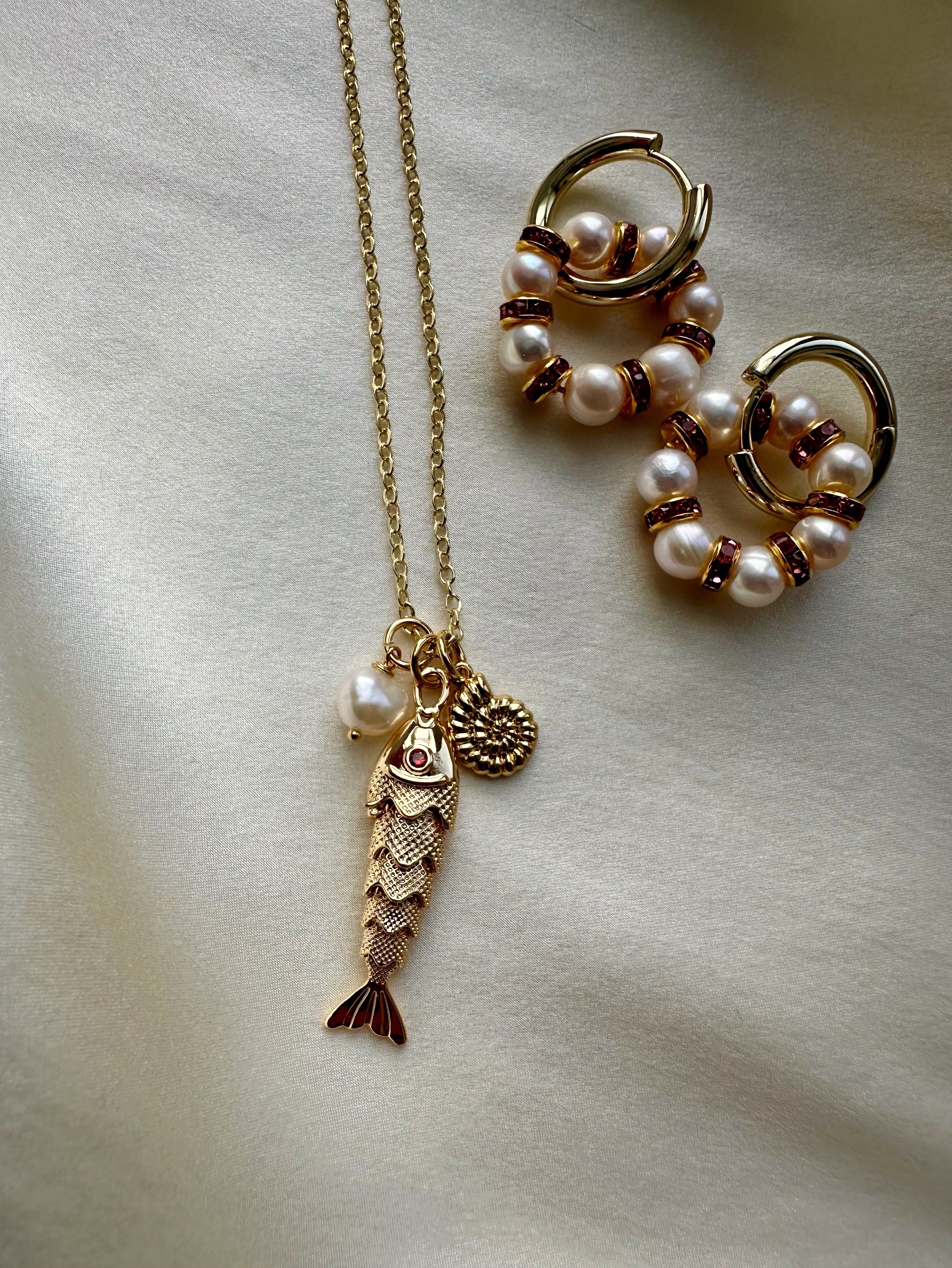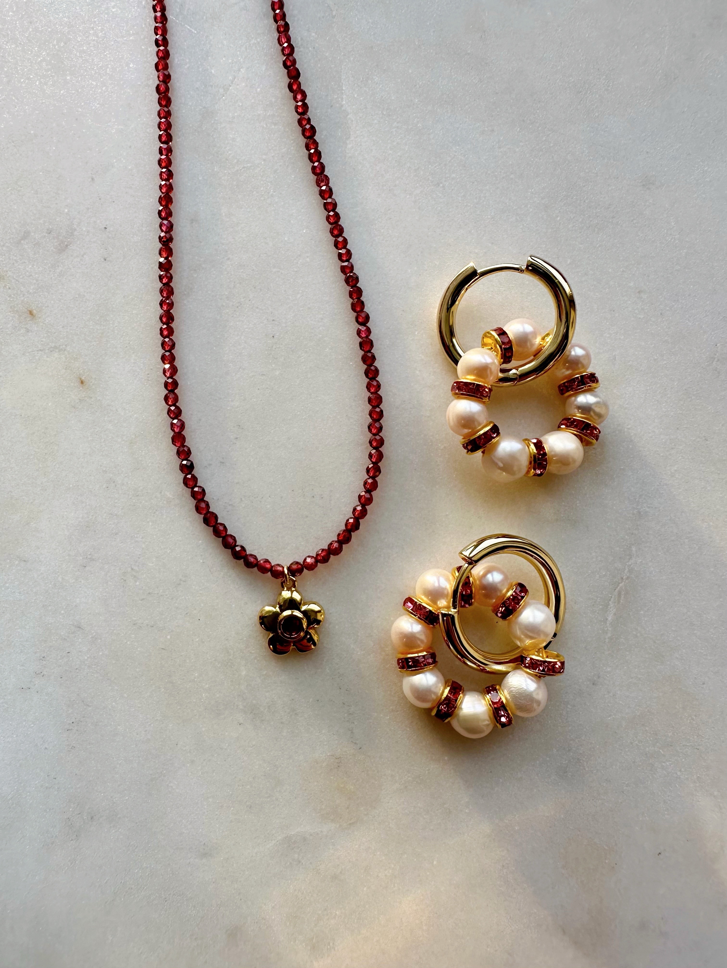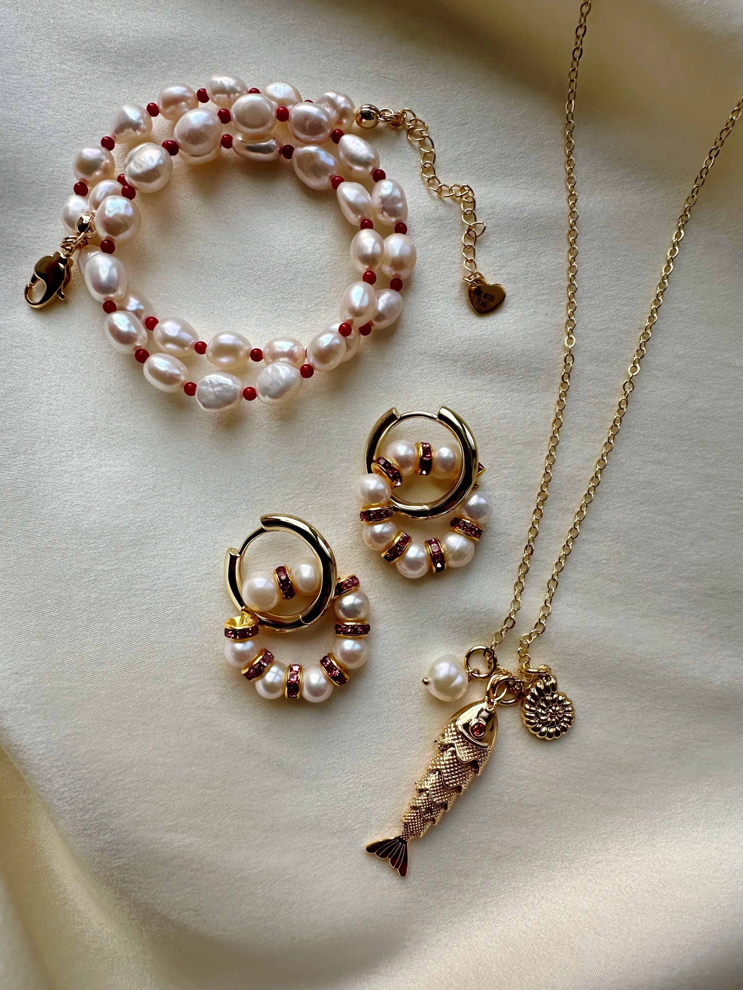 Серьги из Натурального пресноводного культивированного жемчуга и розовых кристаллов в форме колец