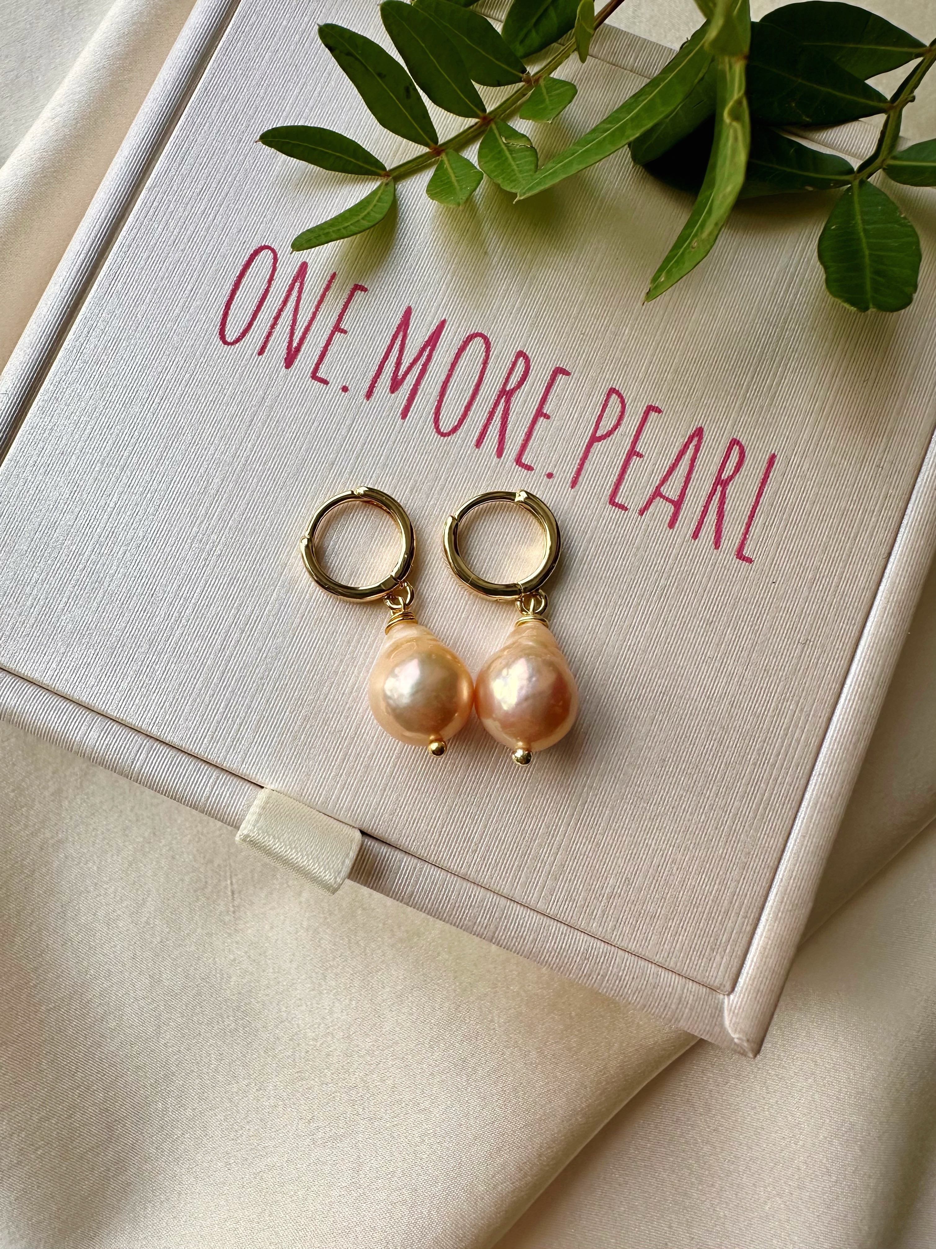 Серьги с Натурального пресноводного культивированного каплевидного жемчуга 10-14 мм, цвет пудрово-золотой, ВЫСОКОЕ Качество AA Grade, Cияние перламутра очень яркое