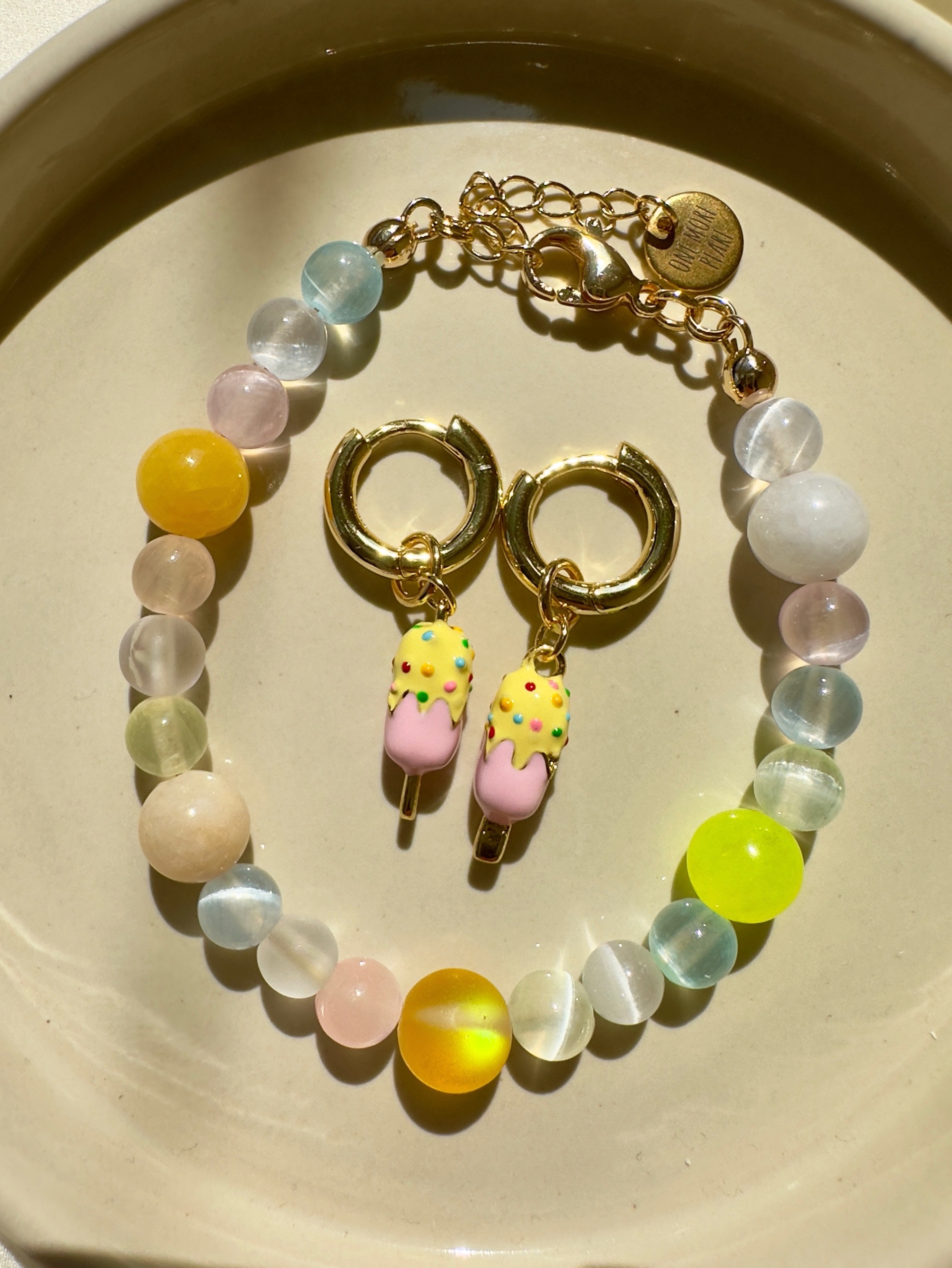 Серьги с подвесками из латуни покрытие Золото 18карат: клубничное мороженое с посылкой 😋