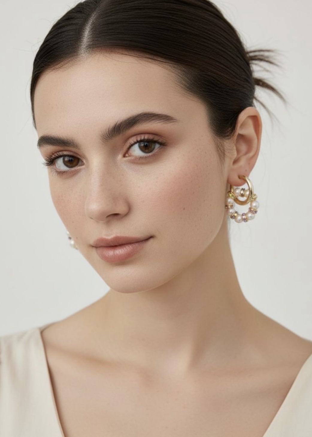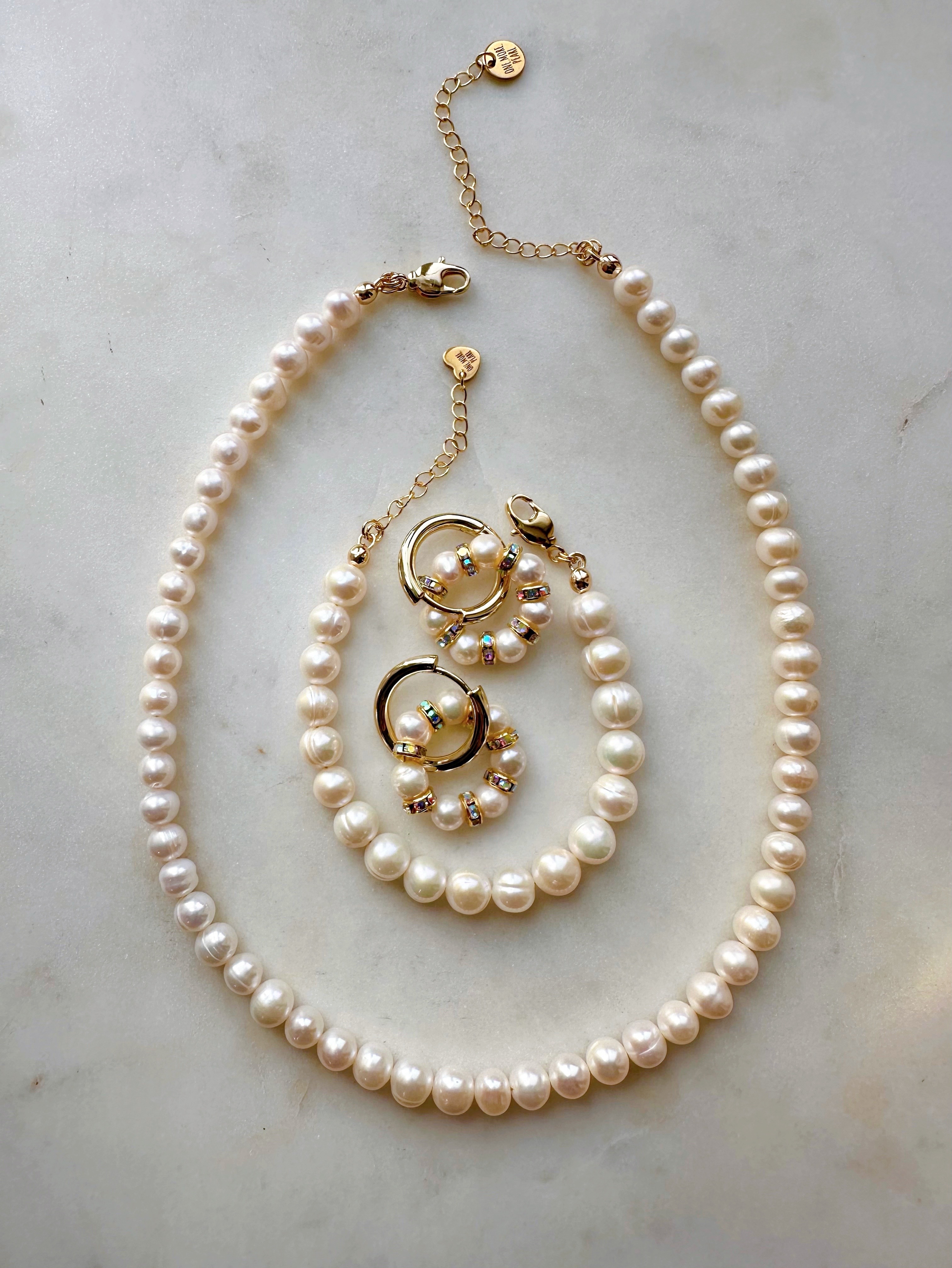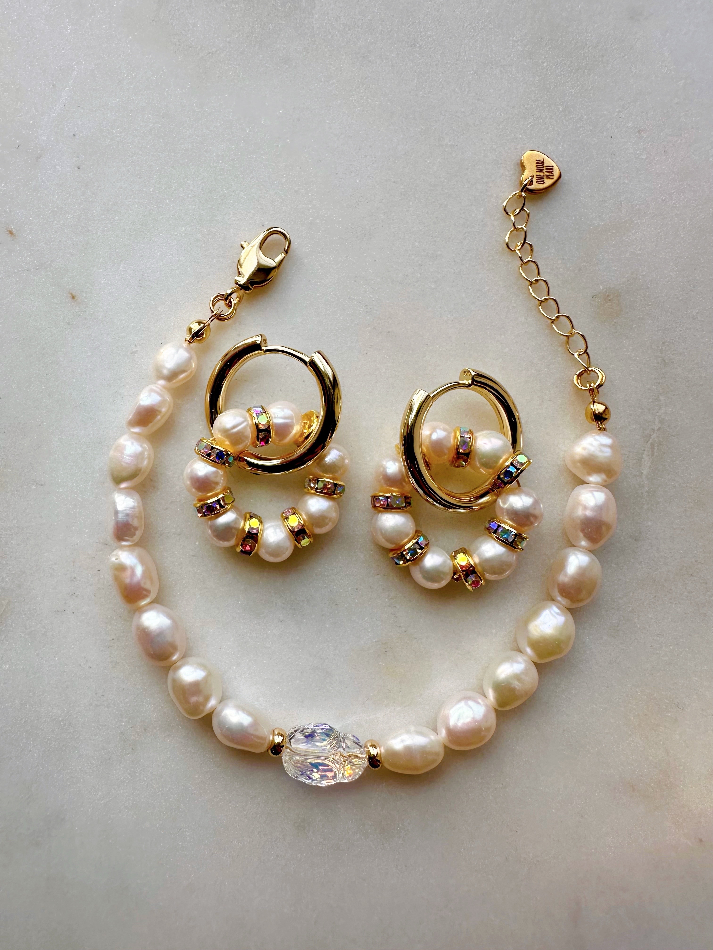 Серьги из Натурального пресноводного культивированного жемчуга и розовых кристаллов в форме колец