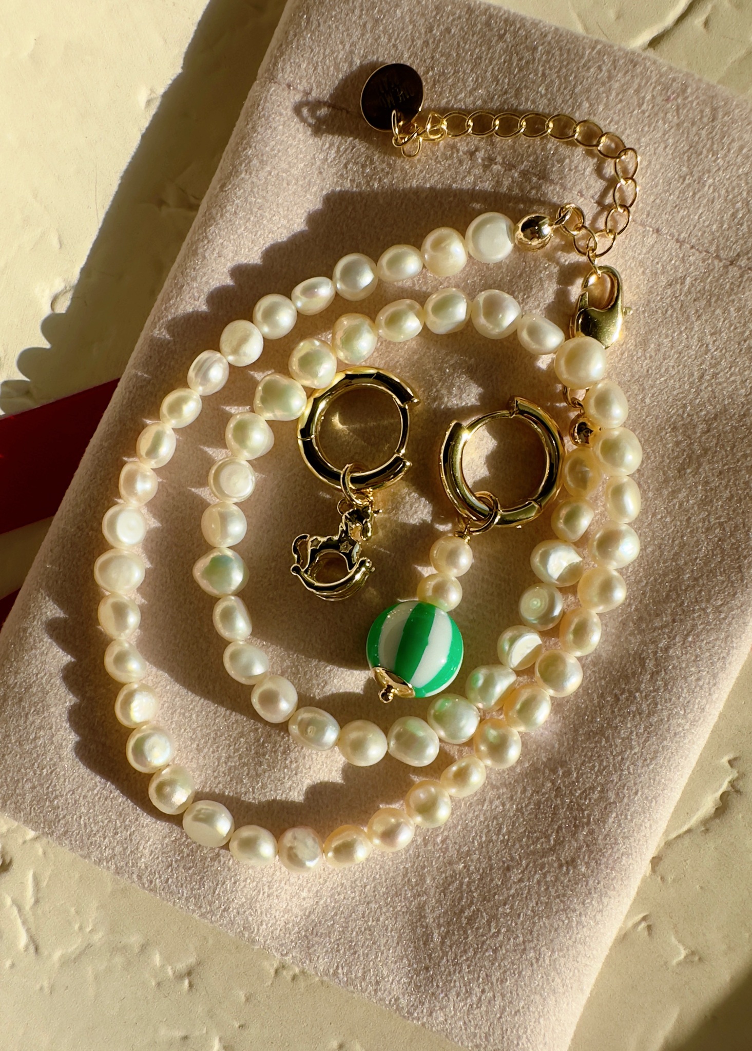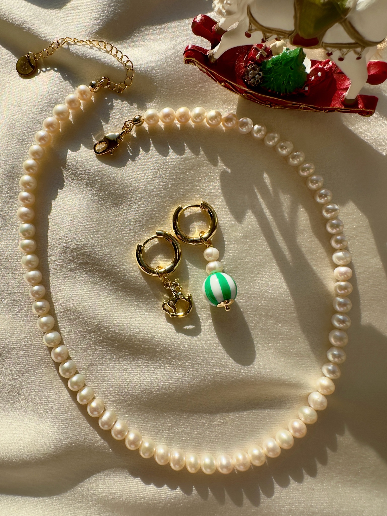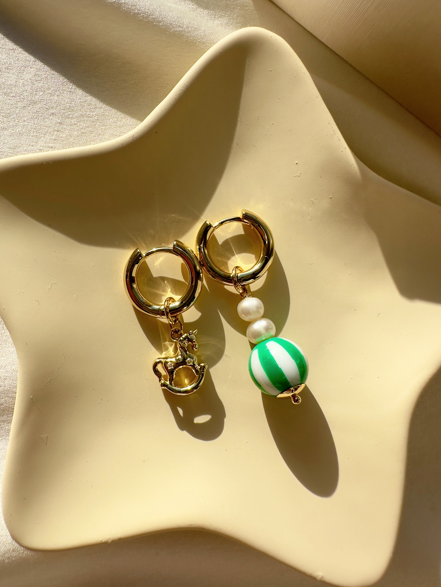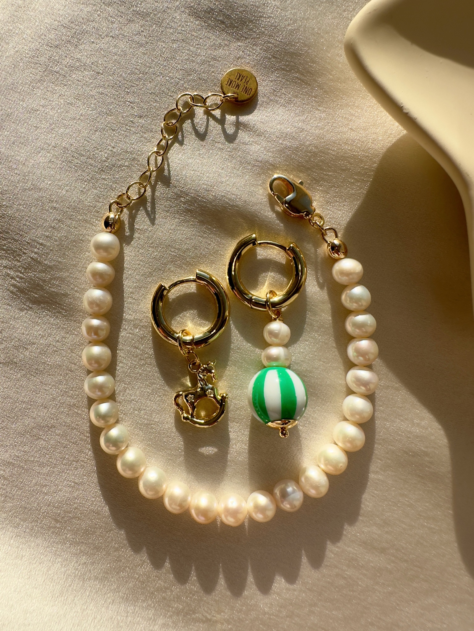 Серьги из Натурального пресноводного культивированного жемчуга, подвески лошадка сияние и шар зеленого цвета