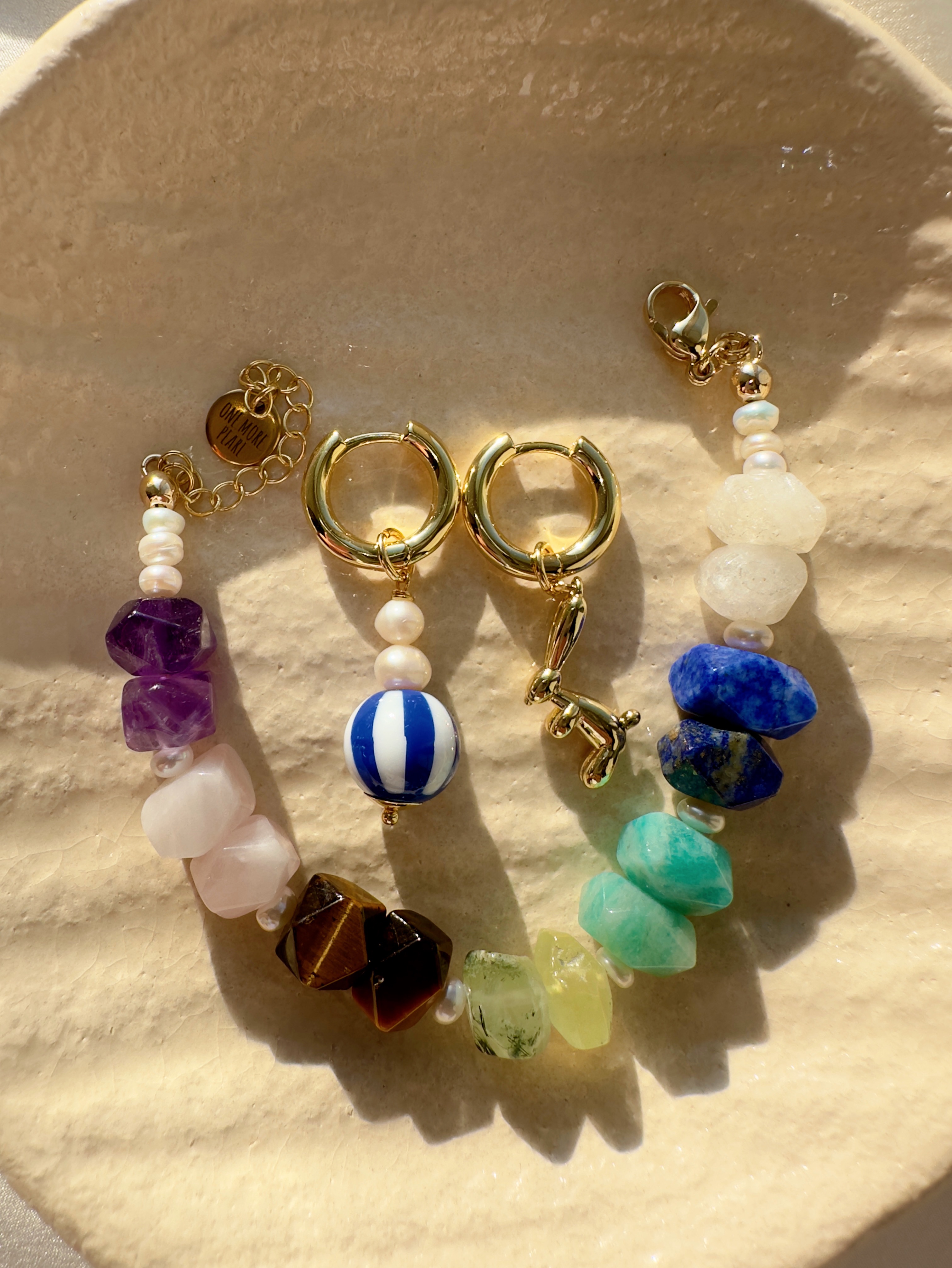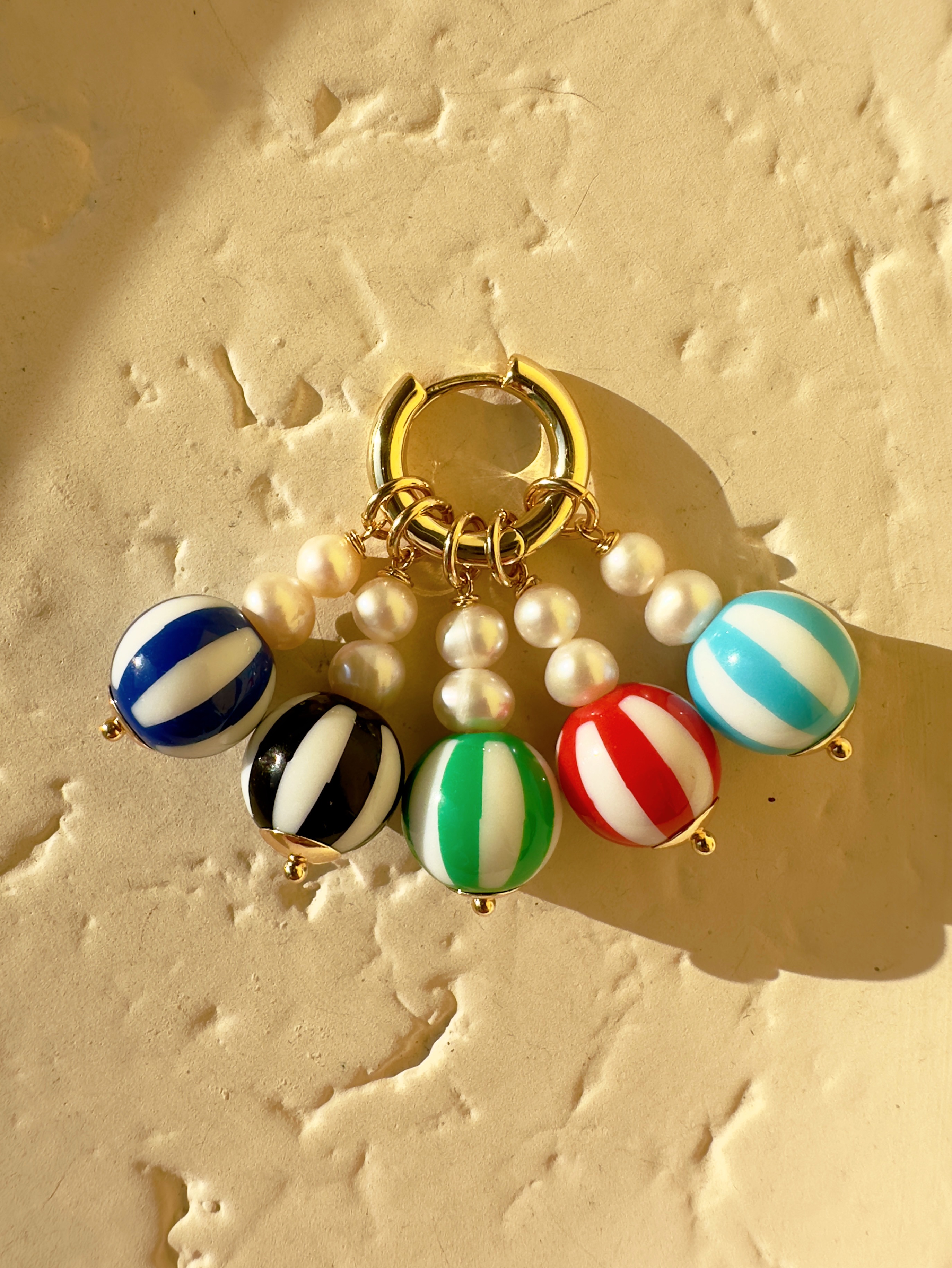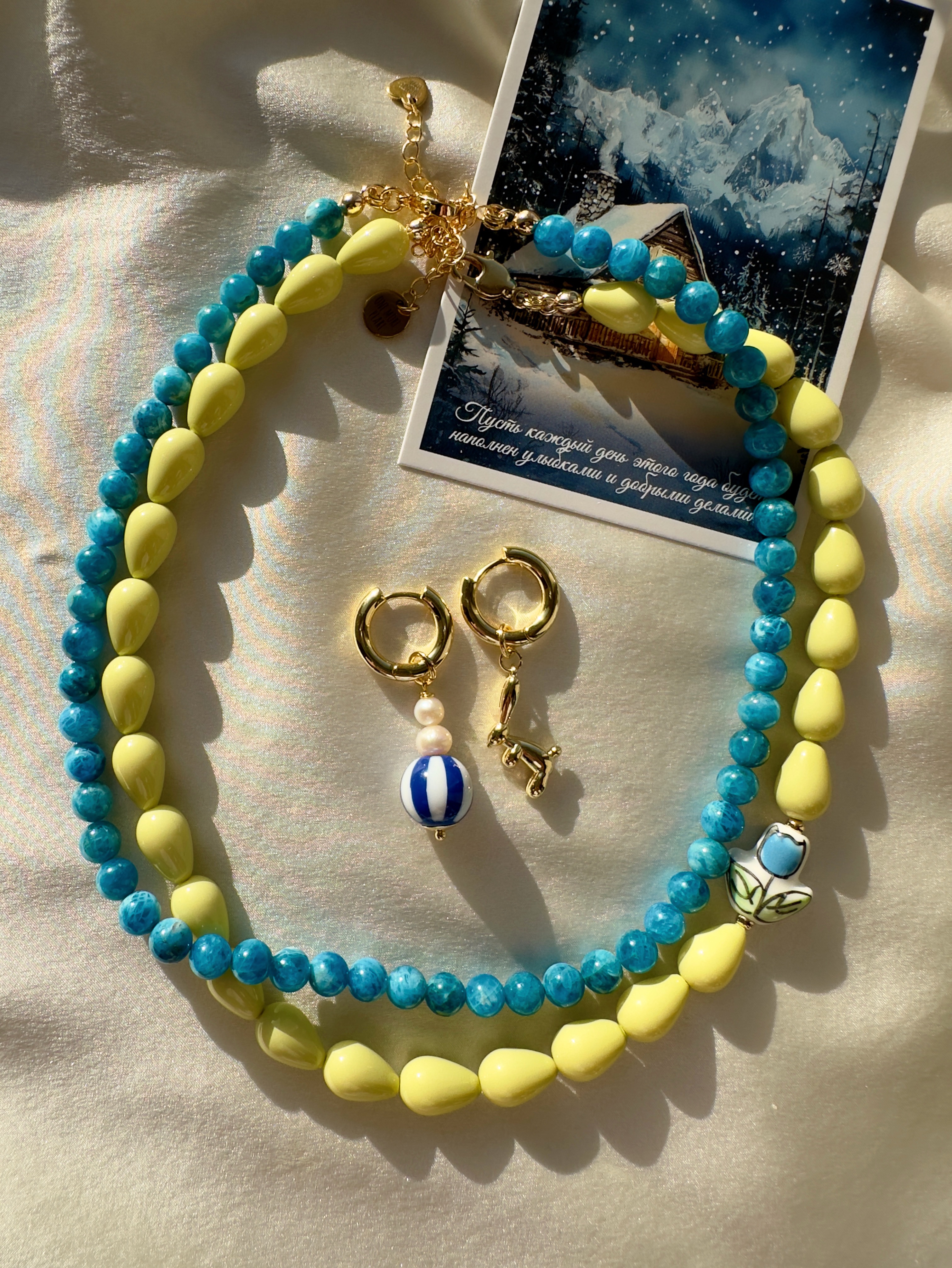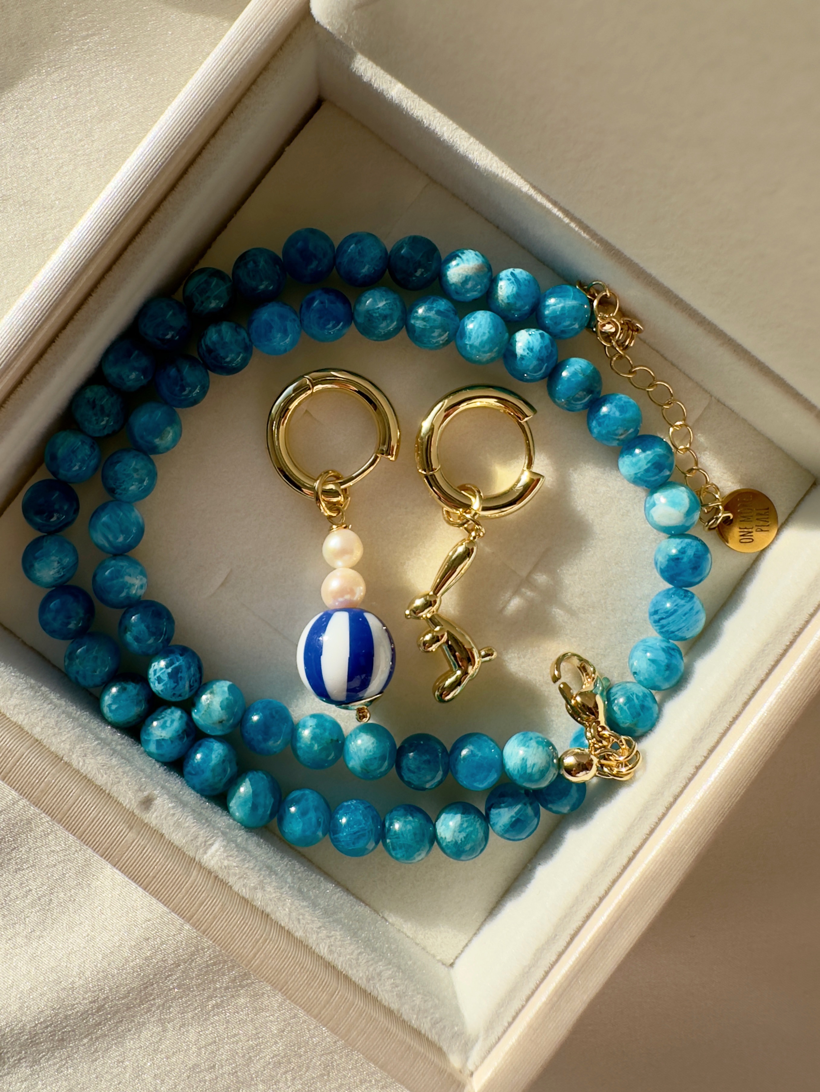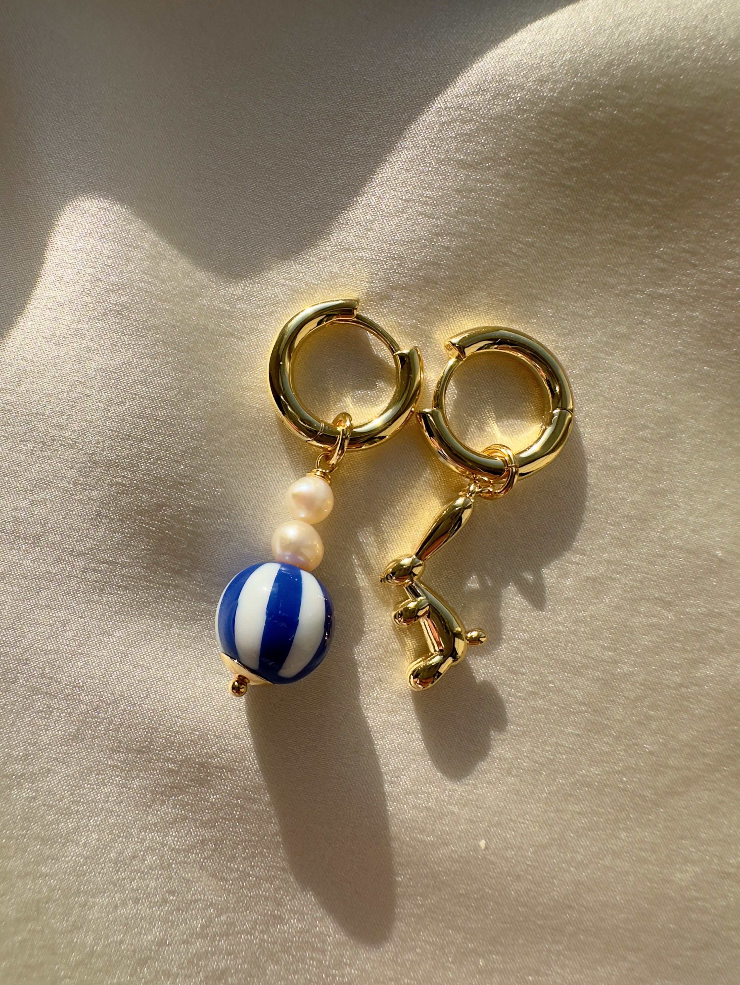 Серьги из Натурального пресноводного культивированного жемчуга подвеска кролик и шар синего цвета