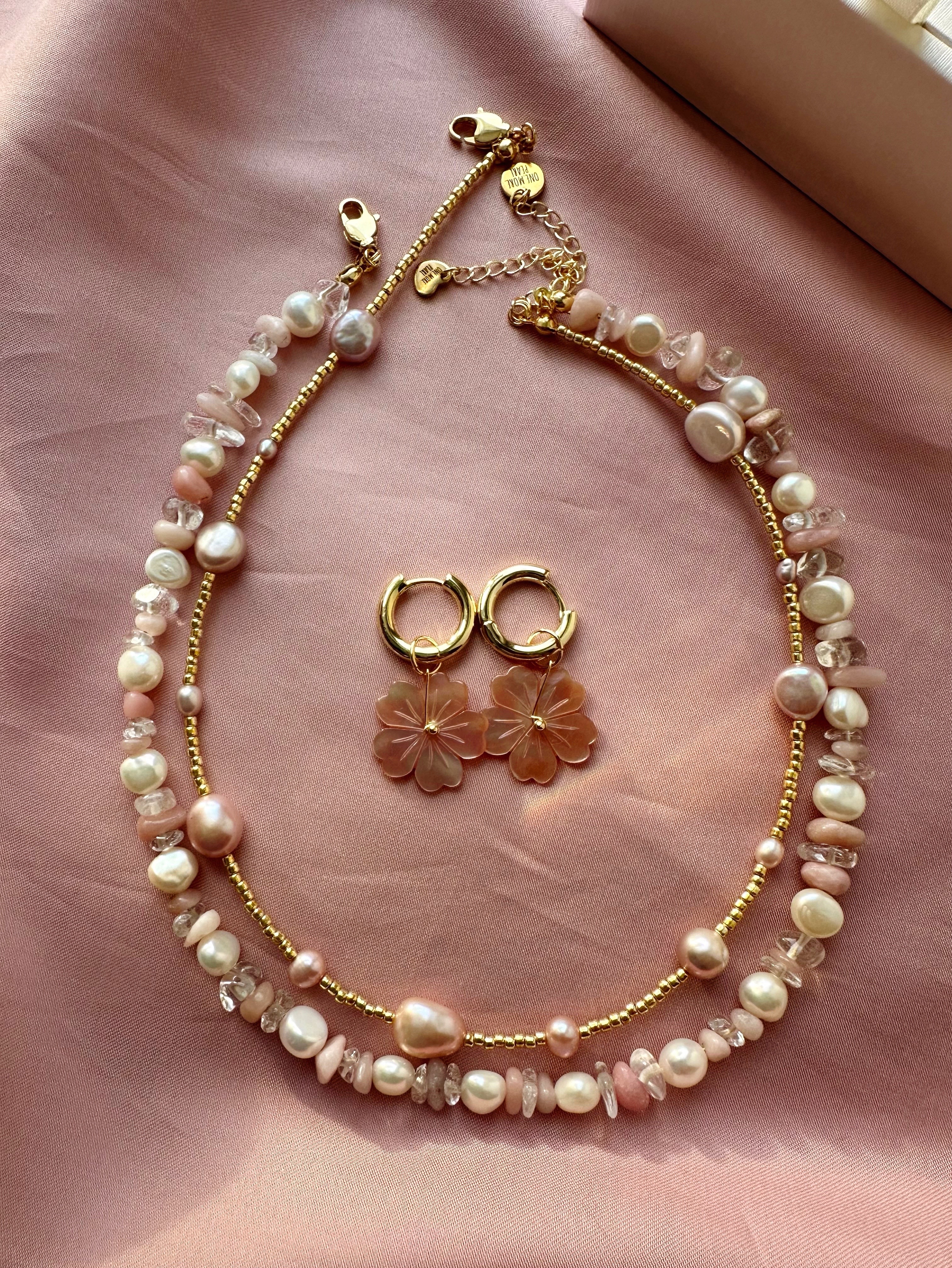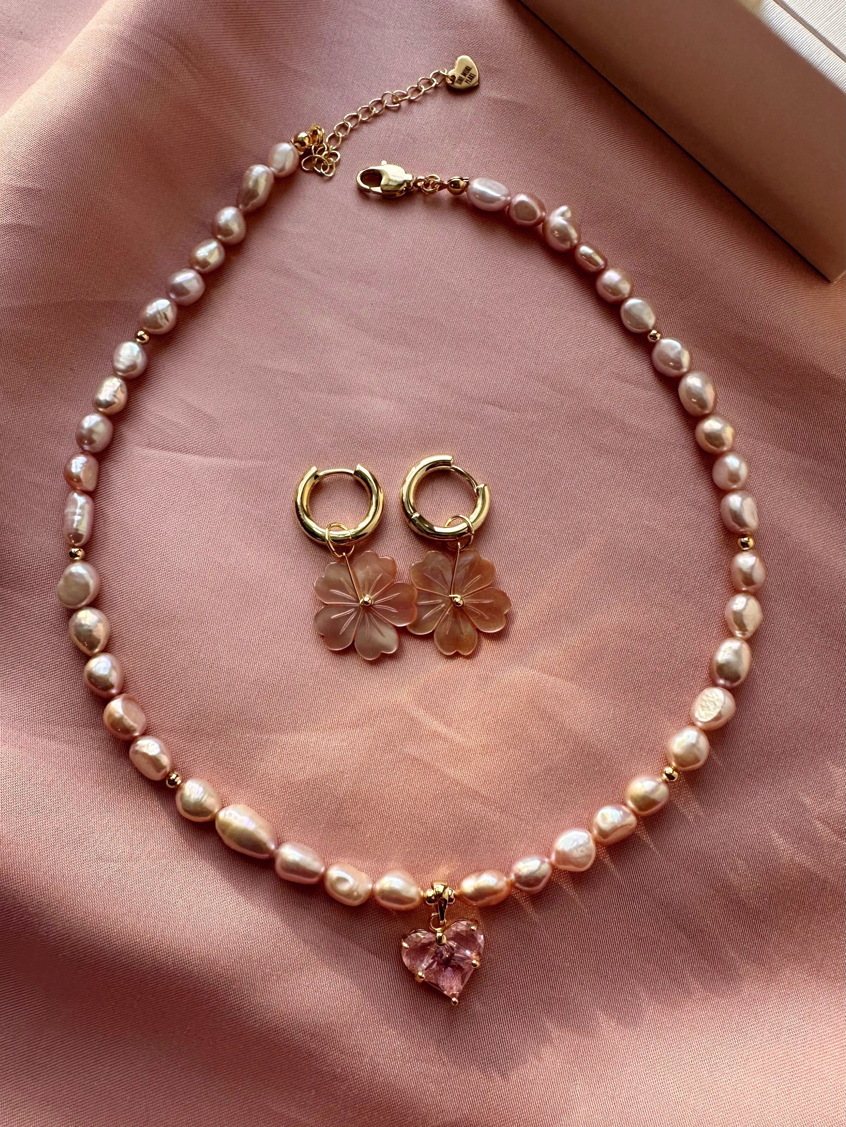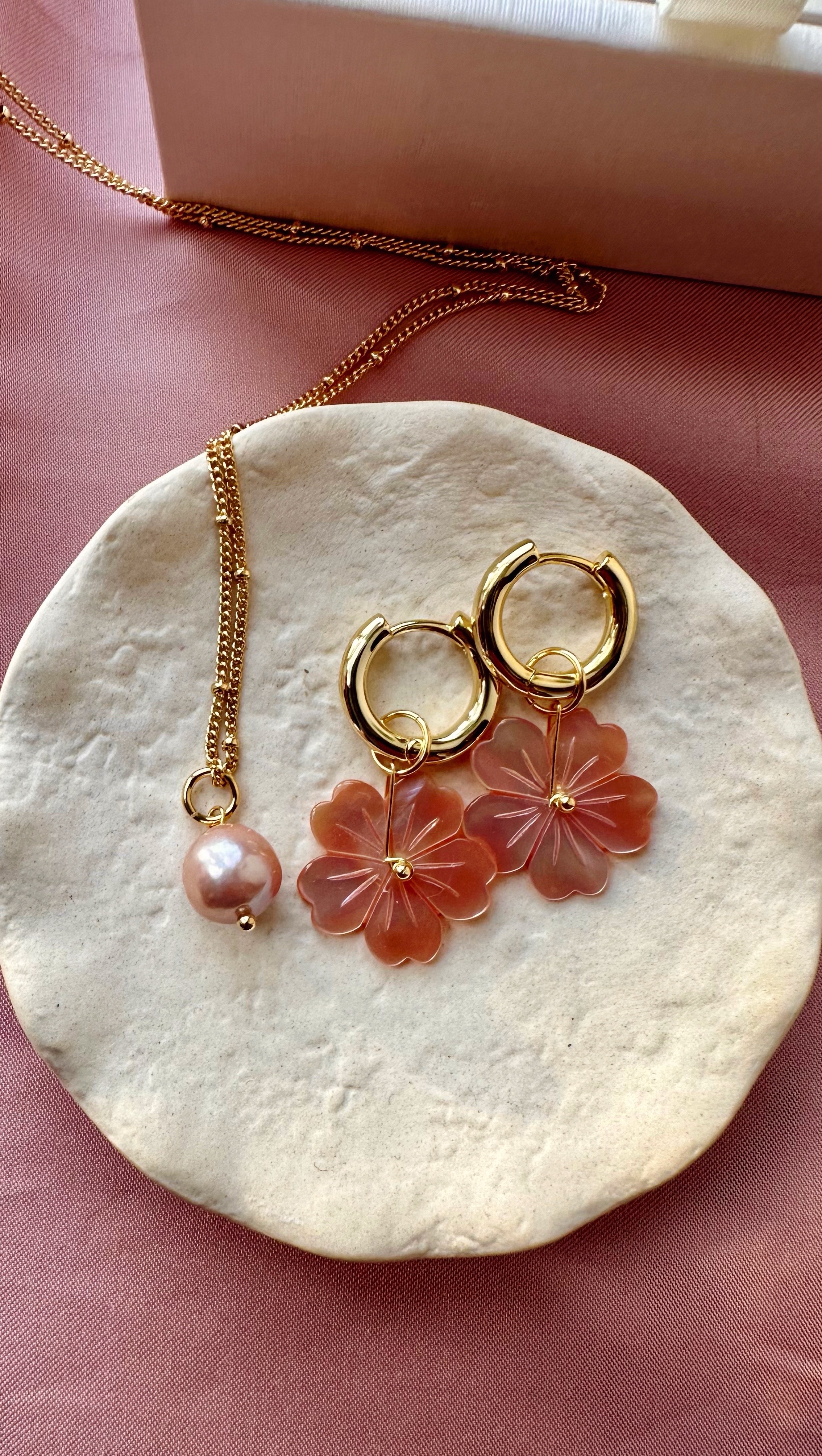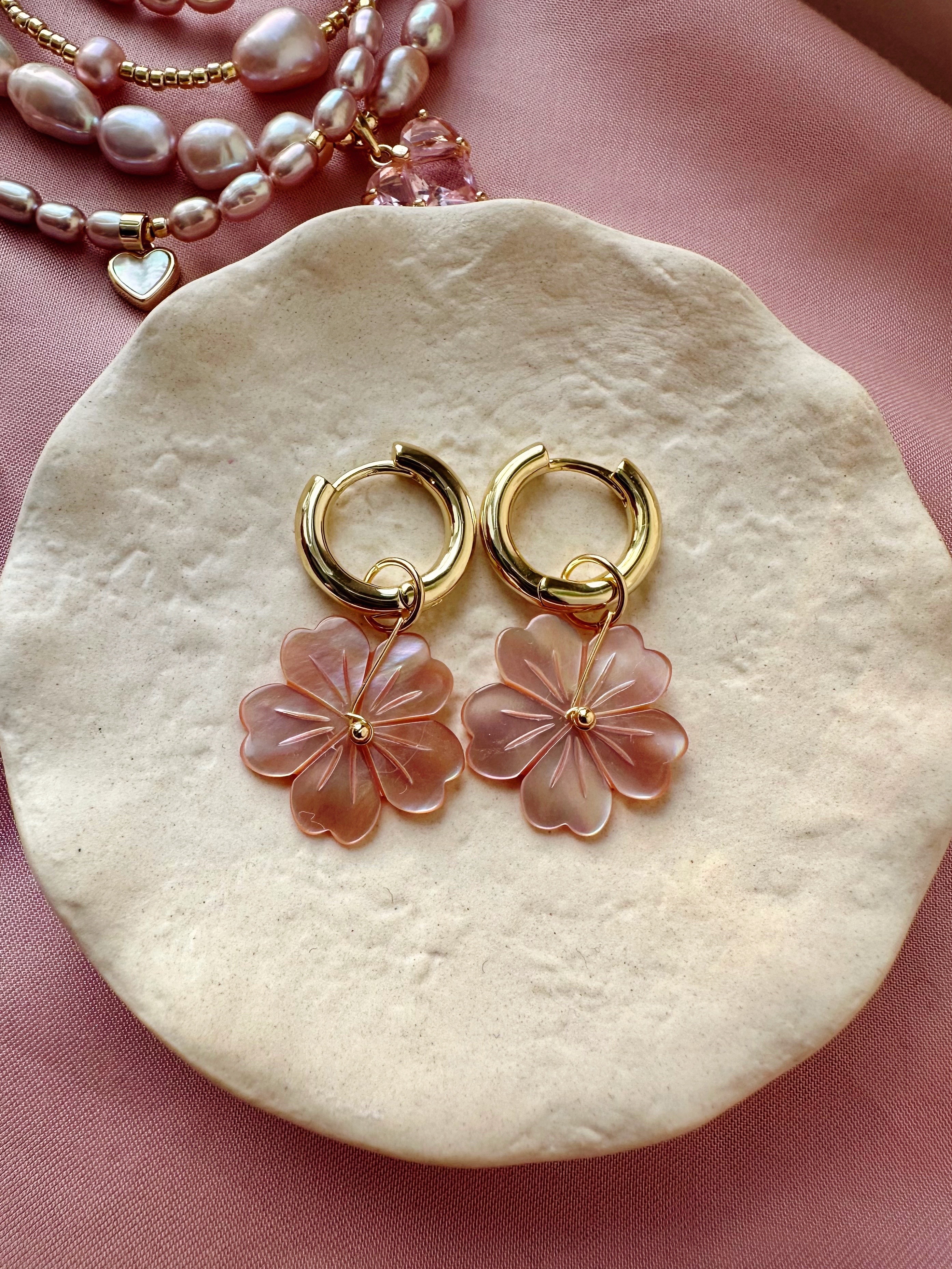 Серьги с подвесками из натурального перламутра розового цвета в форме цветы 20 мм очень высокого качества