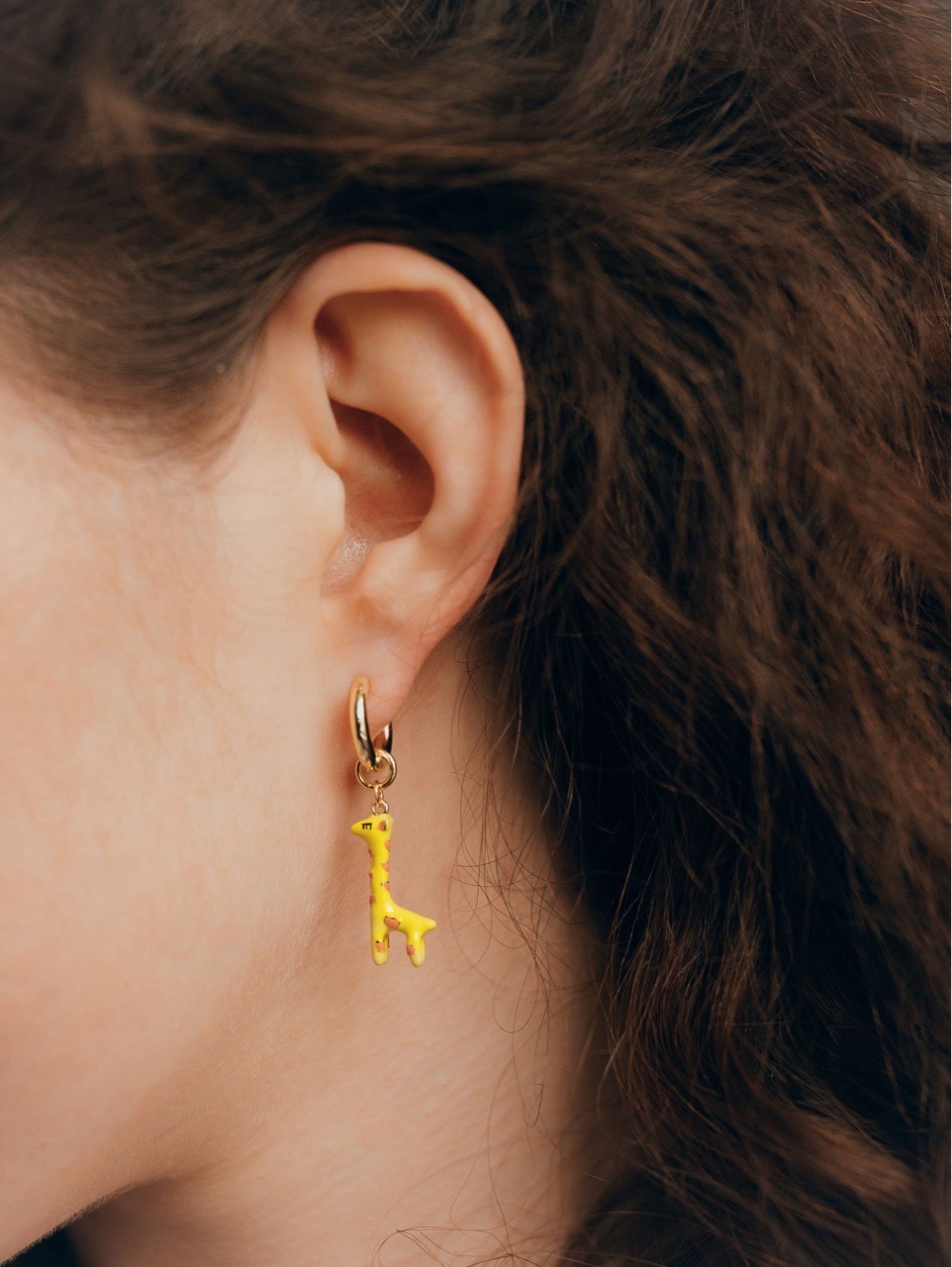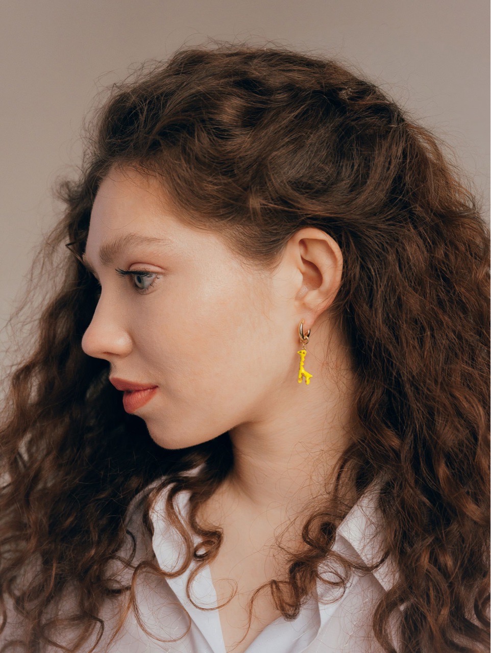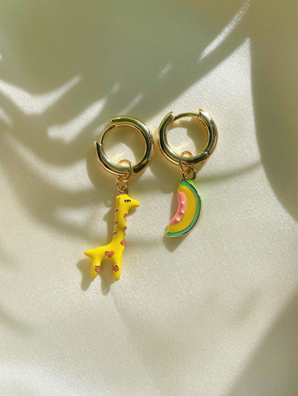 Серьги с двухсторонними бусинами фрукт и жираф из латуни покрытие золото 18 карат