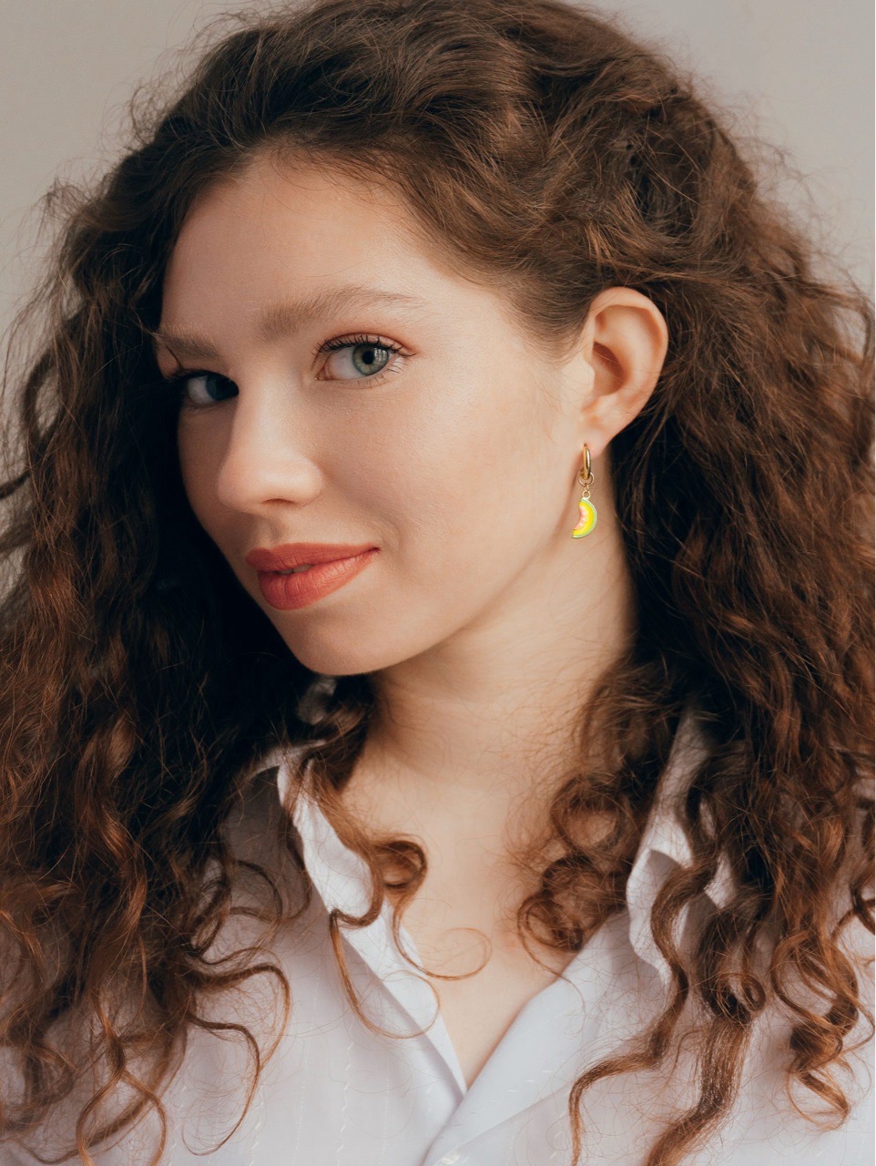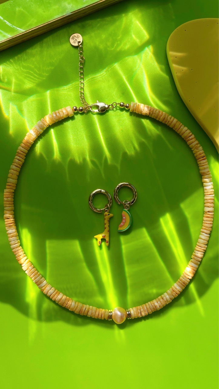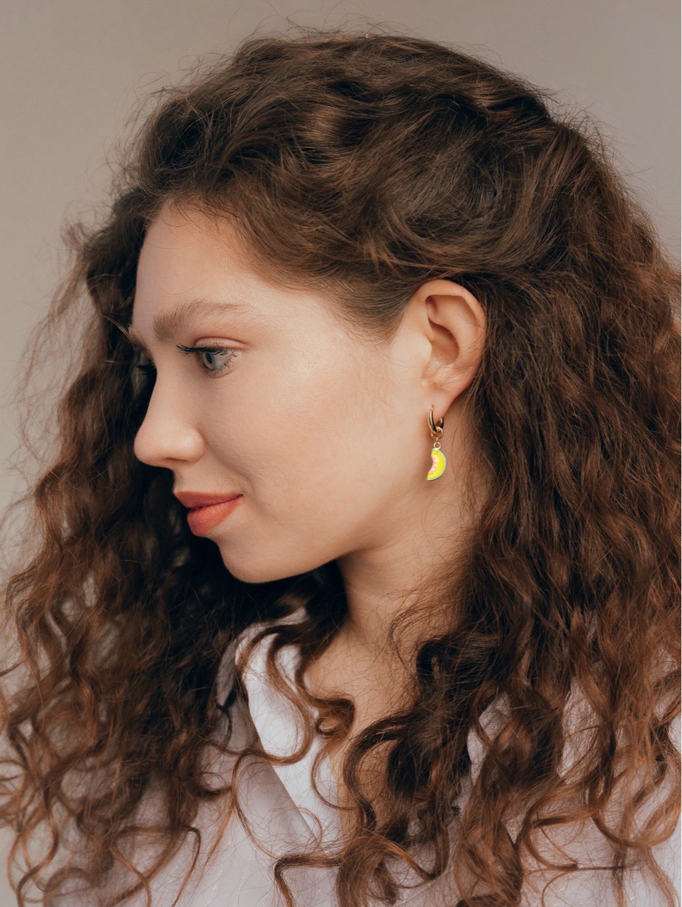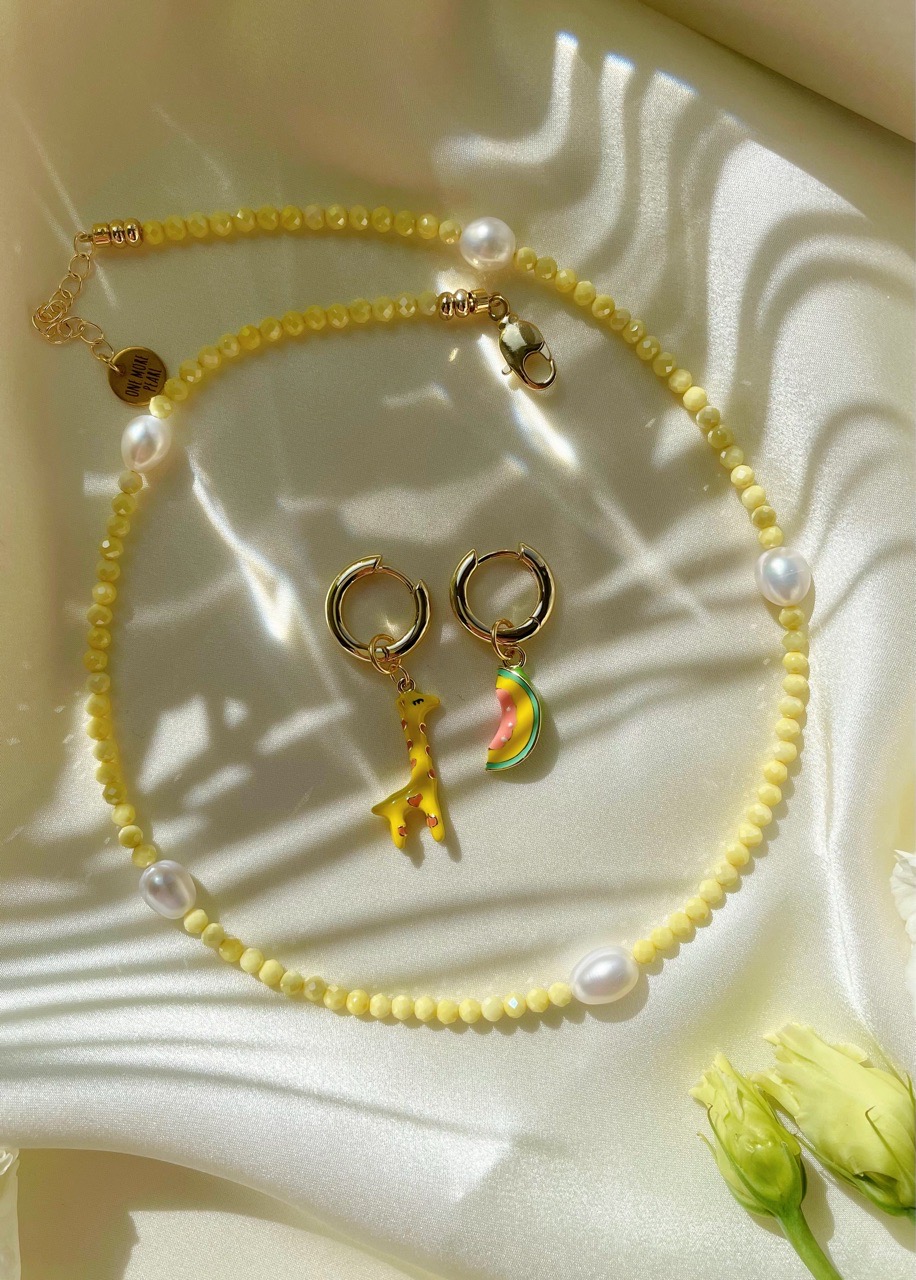 Серьги с двухсторонними бусинами фрукт и жираф из латуни покрытие золото 18 карат