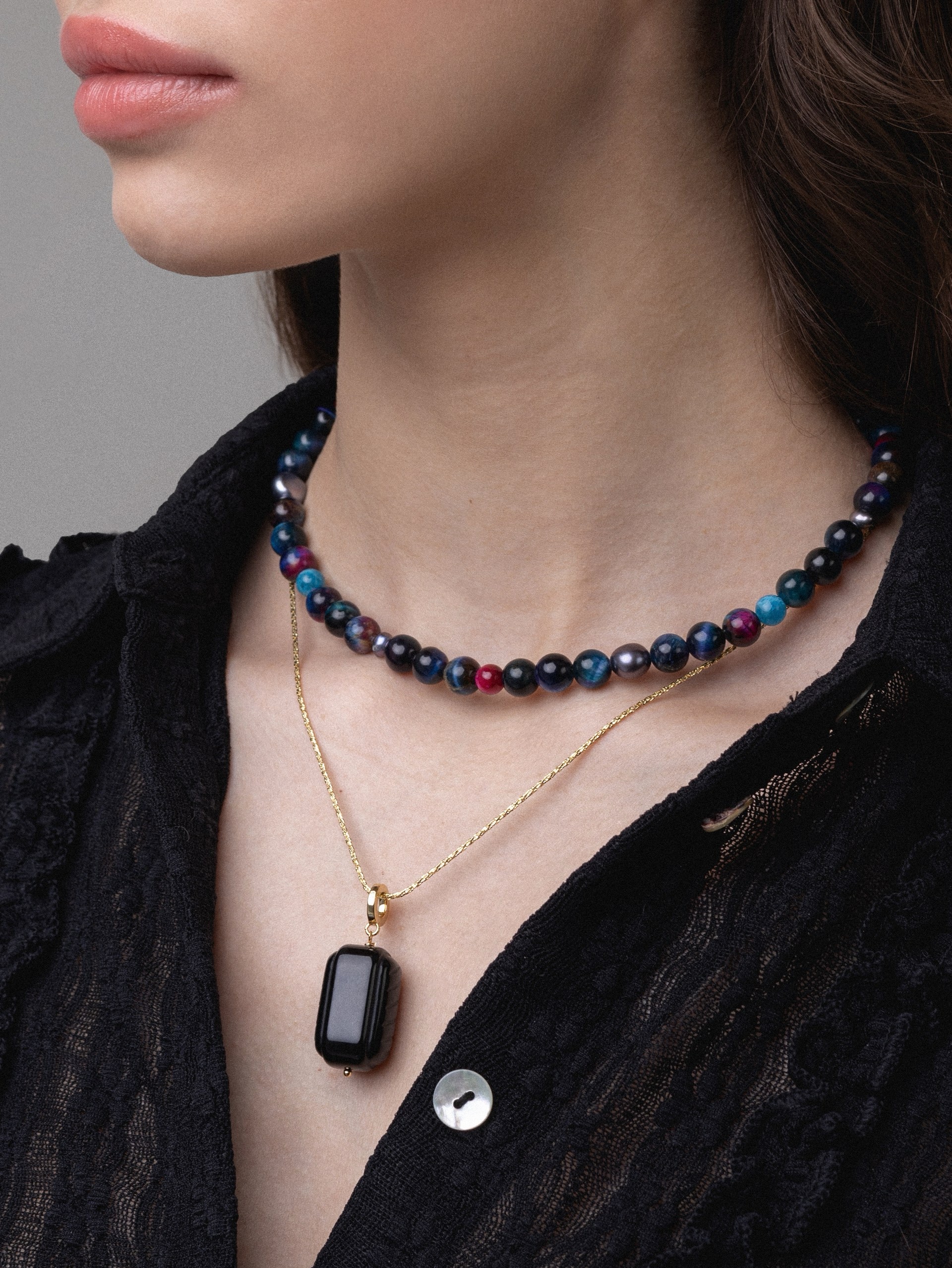 Цепочка с подвеской из натурального Агата а форме карамель