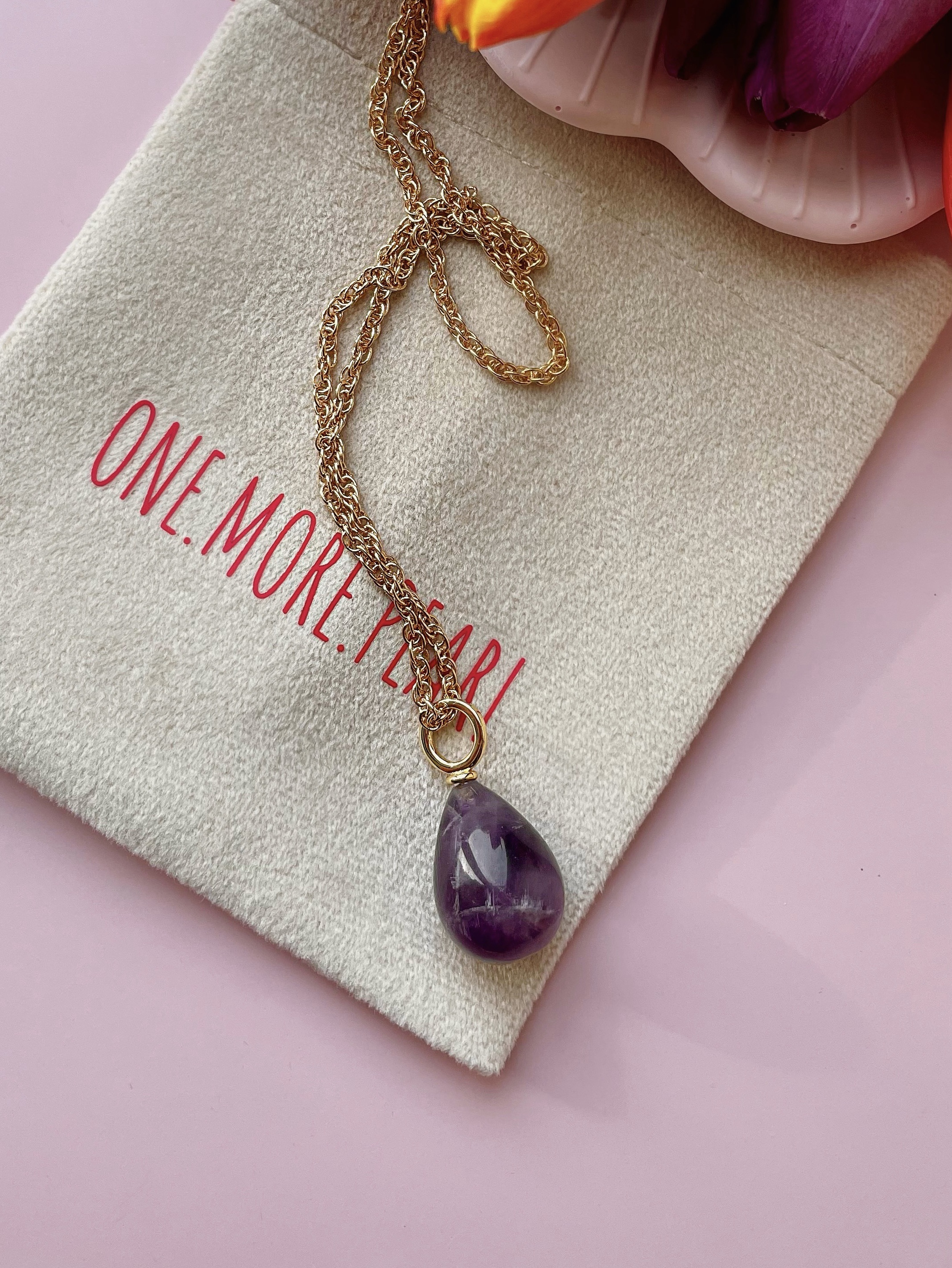 Цепочка с подвеской из натурального аметиста, форма капля, размер 2 см