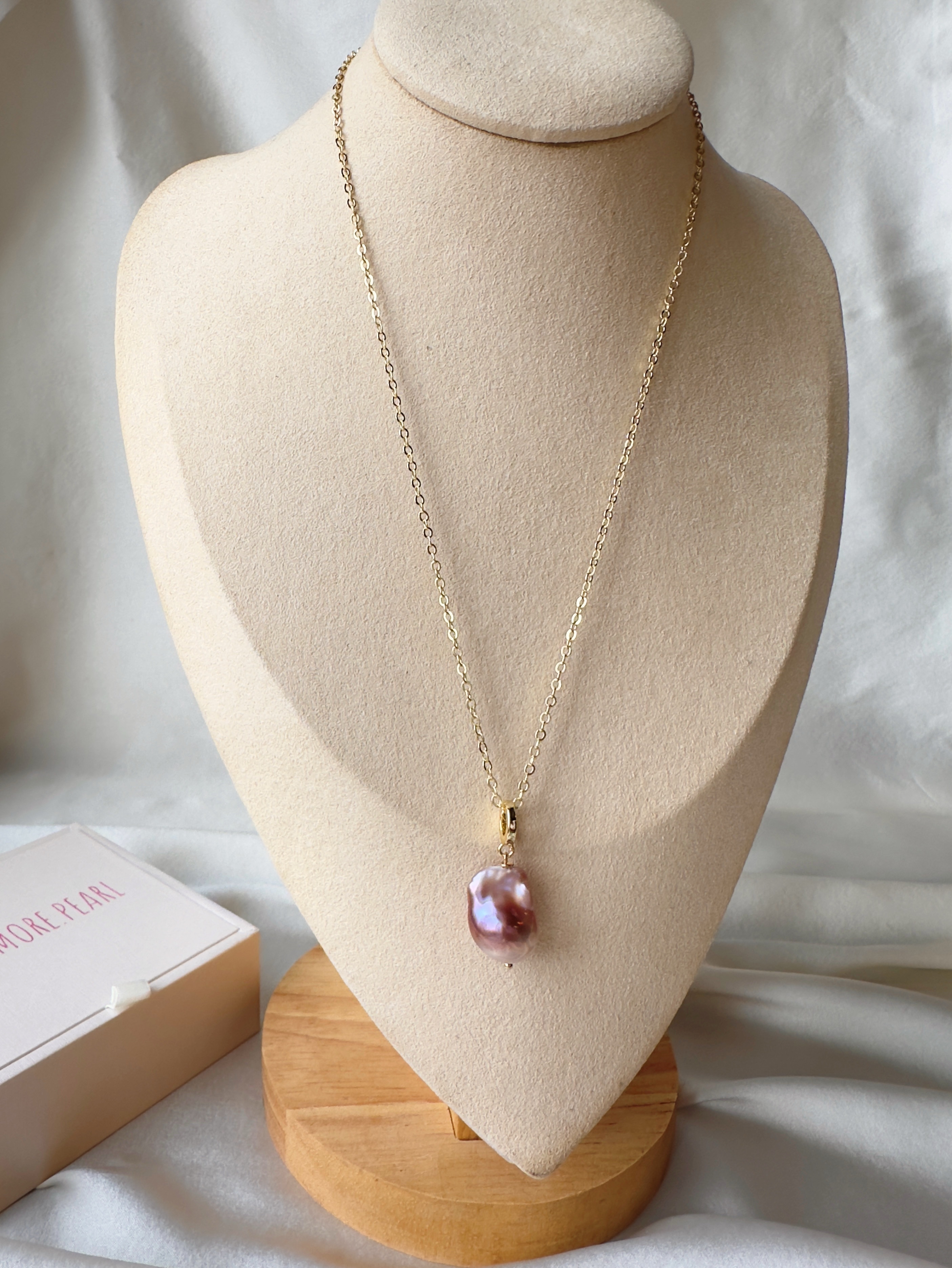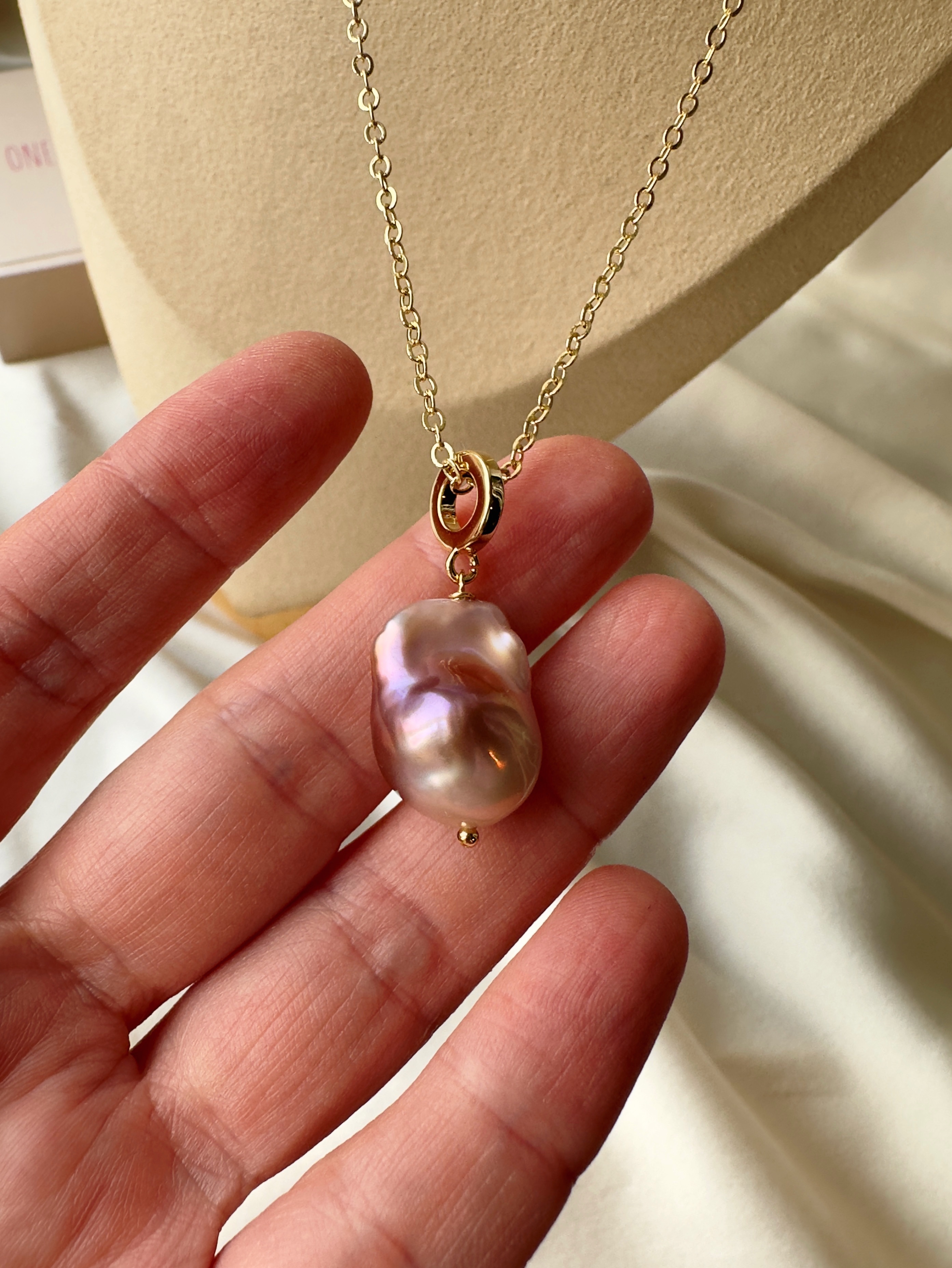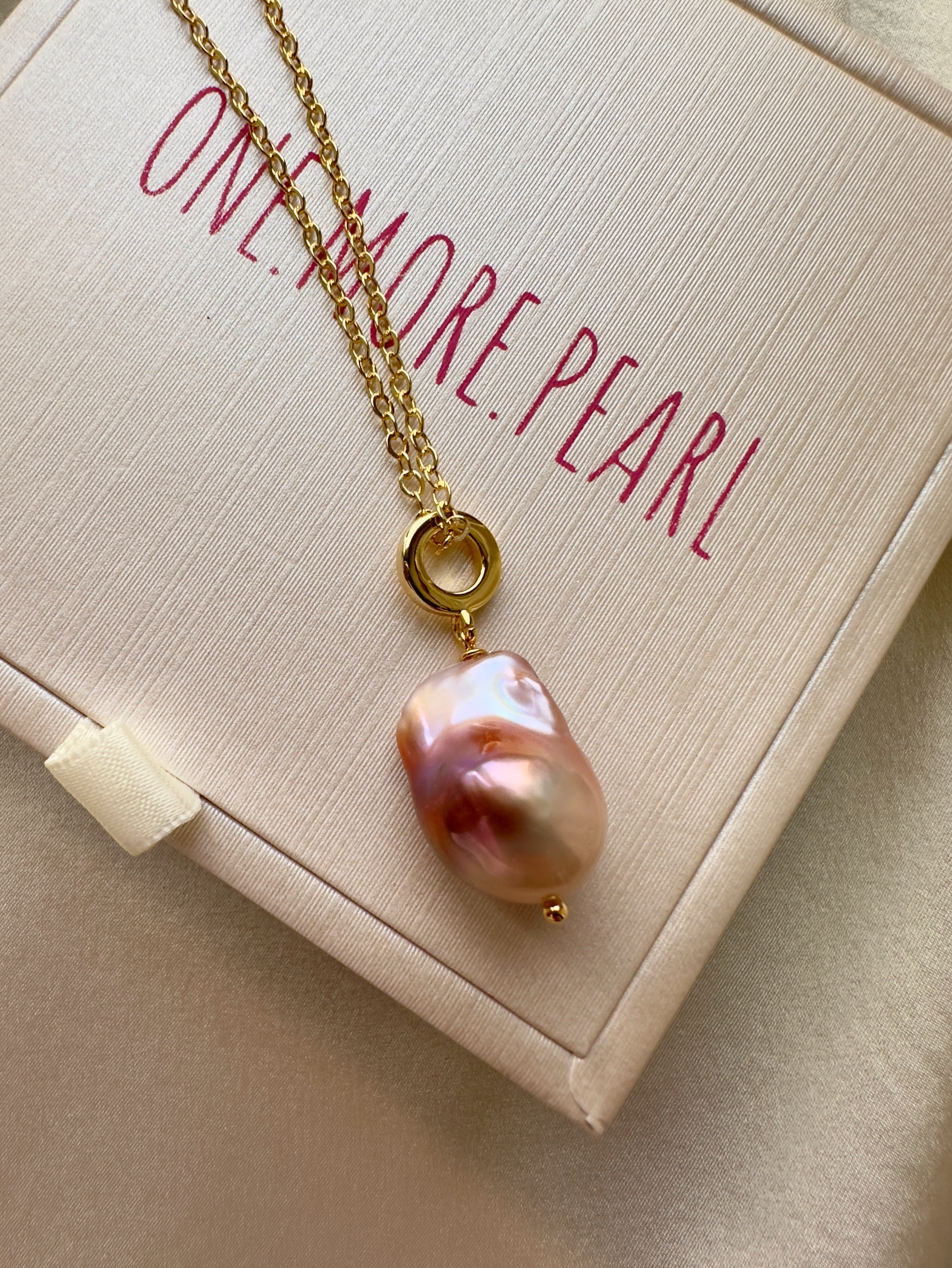 Цепочка с подвеской из Натурального розового пресноводного культивированного жемчуга форма барочная крупная 16-18 мм