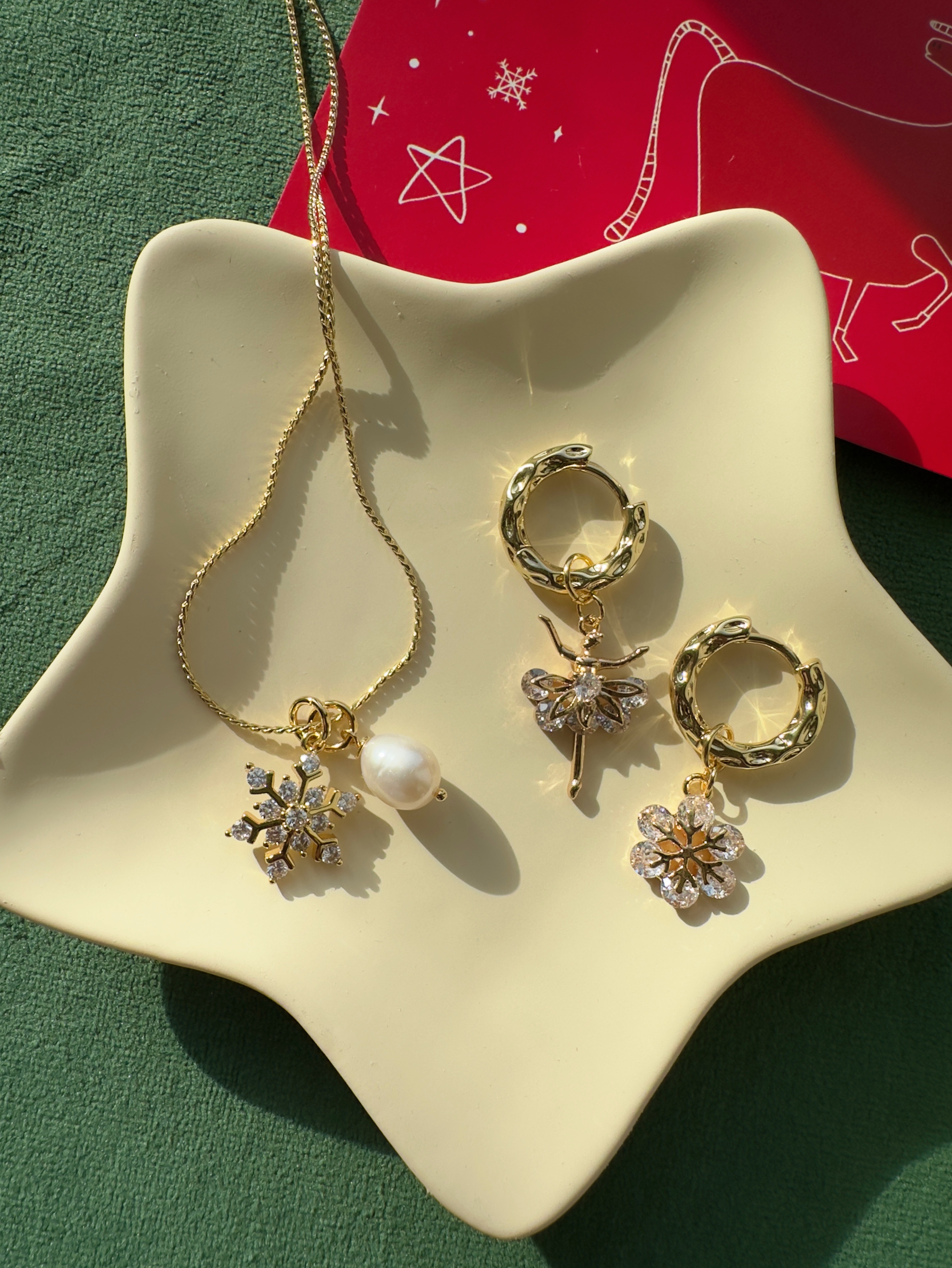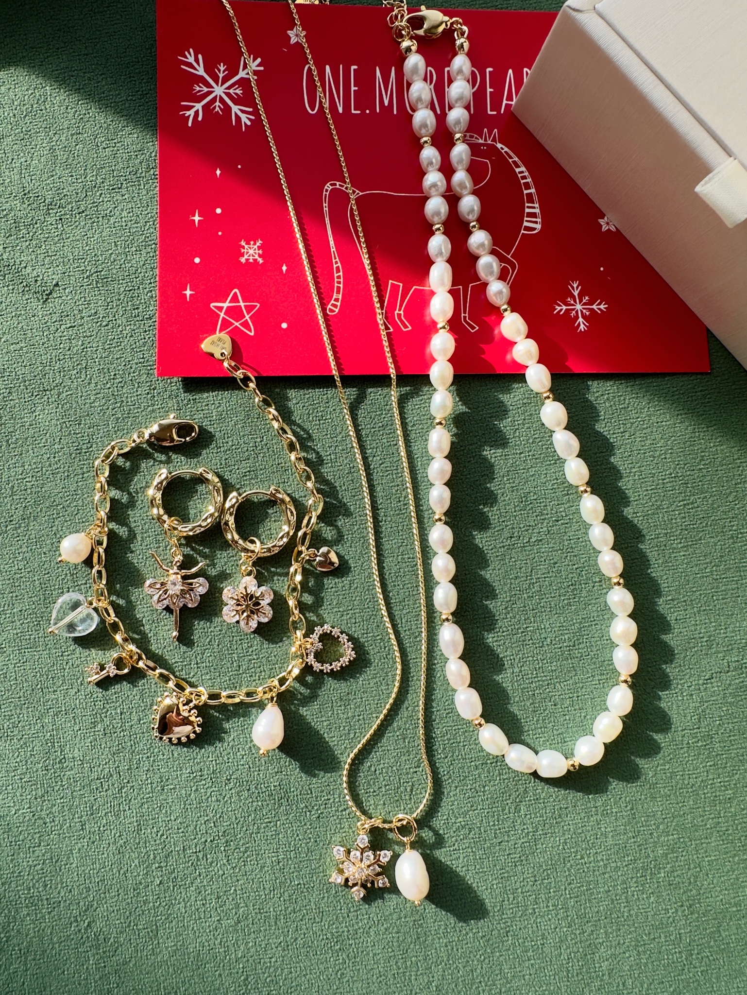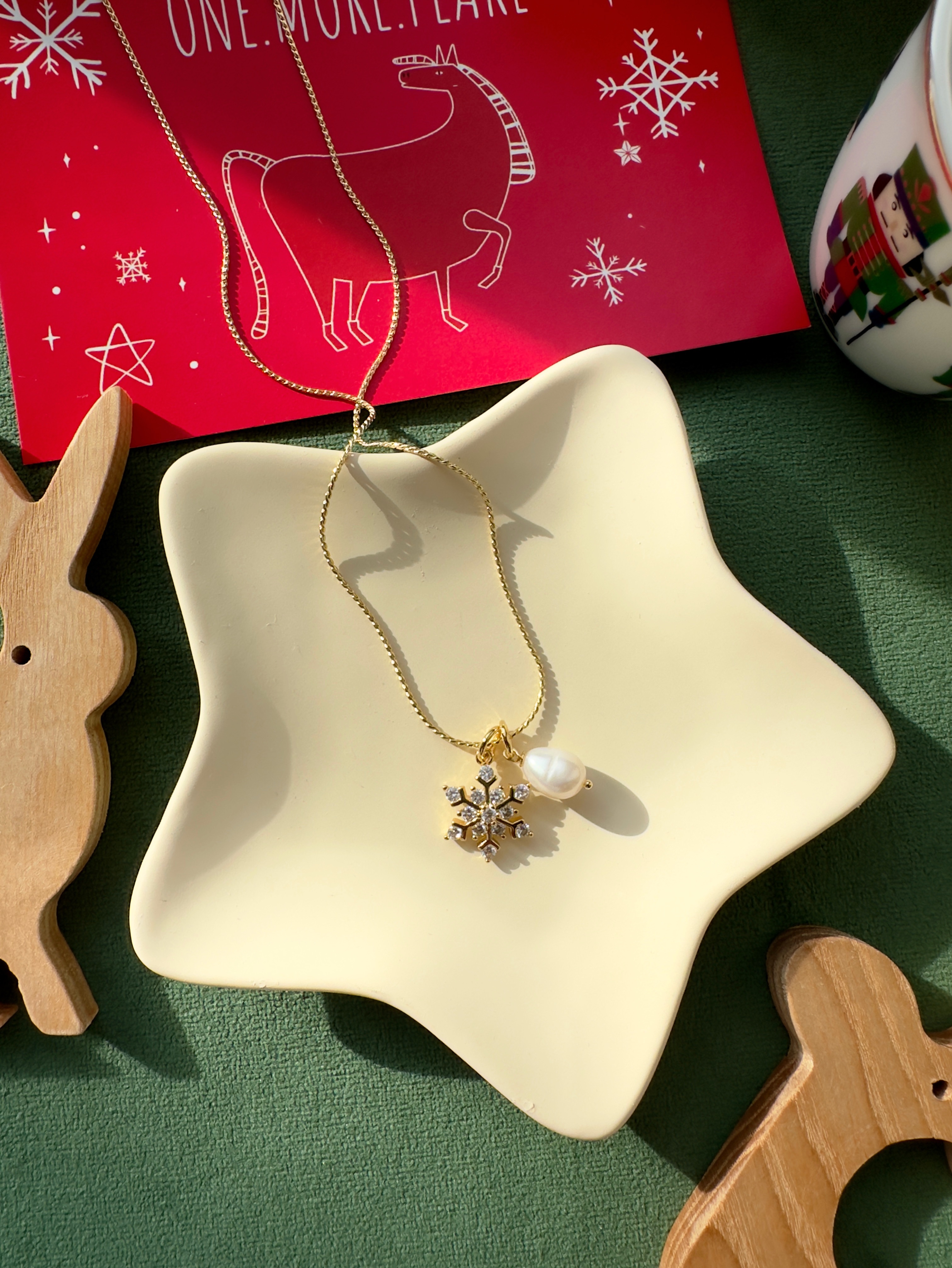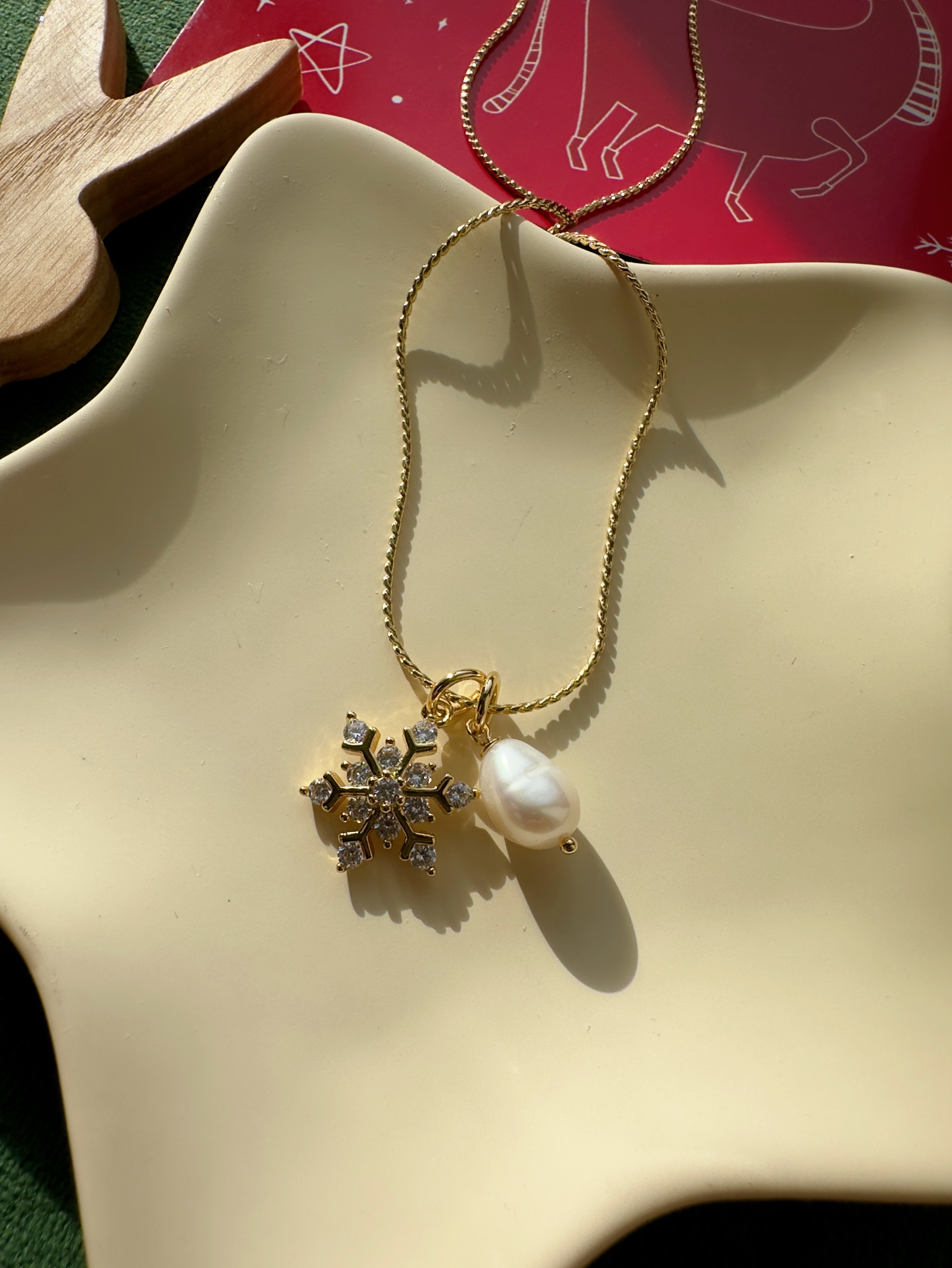 Чокер из натурального жемчуга и подвески снежинки с фианитами